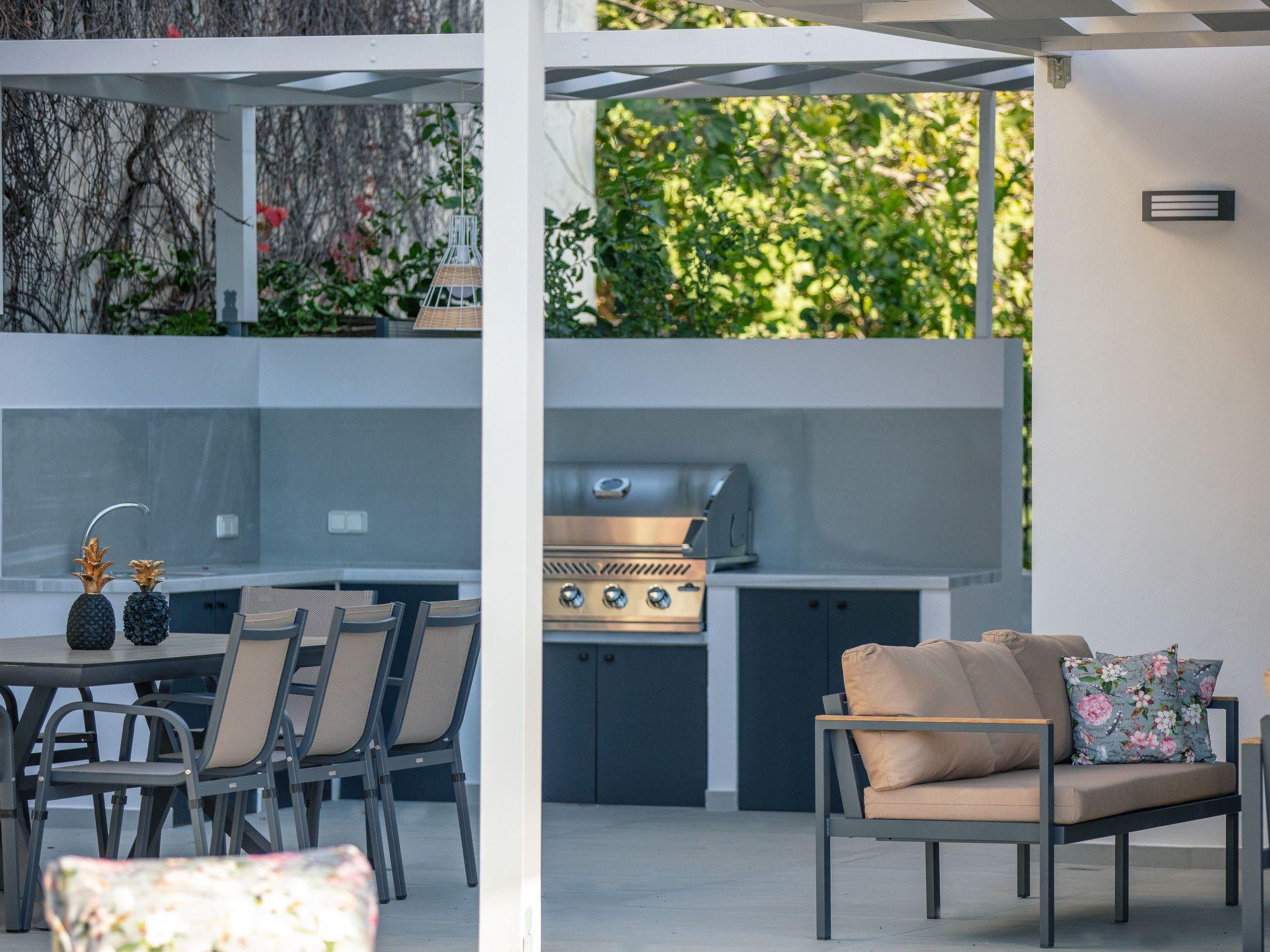 Outdoor:-First of all, all the exterior areas of the property are private and also provide full privacy-swimming pool-outdoor shower-Ping pong table- BBQ- outdoor dining table under shadows with views to the pool and the surrounding landscape- Different places to relax in a swing or under the sun along with sun beds, dining table or exterior furniture.- Queen Bee offers street parking