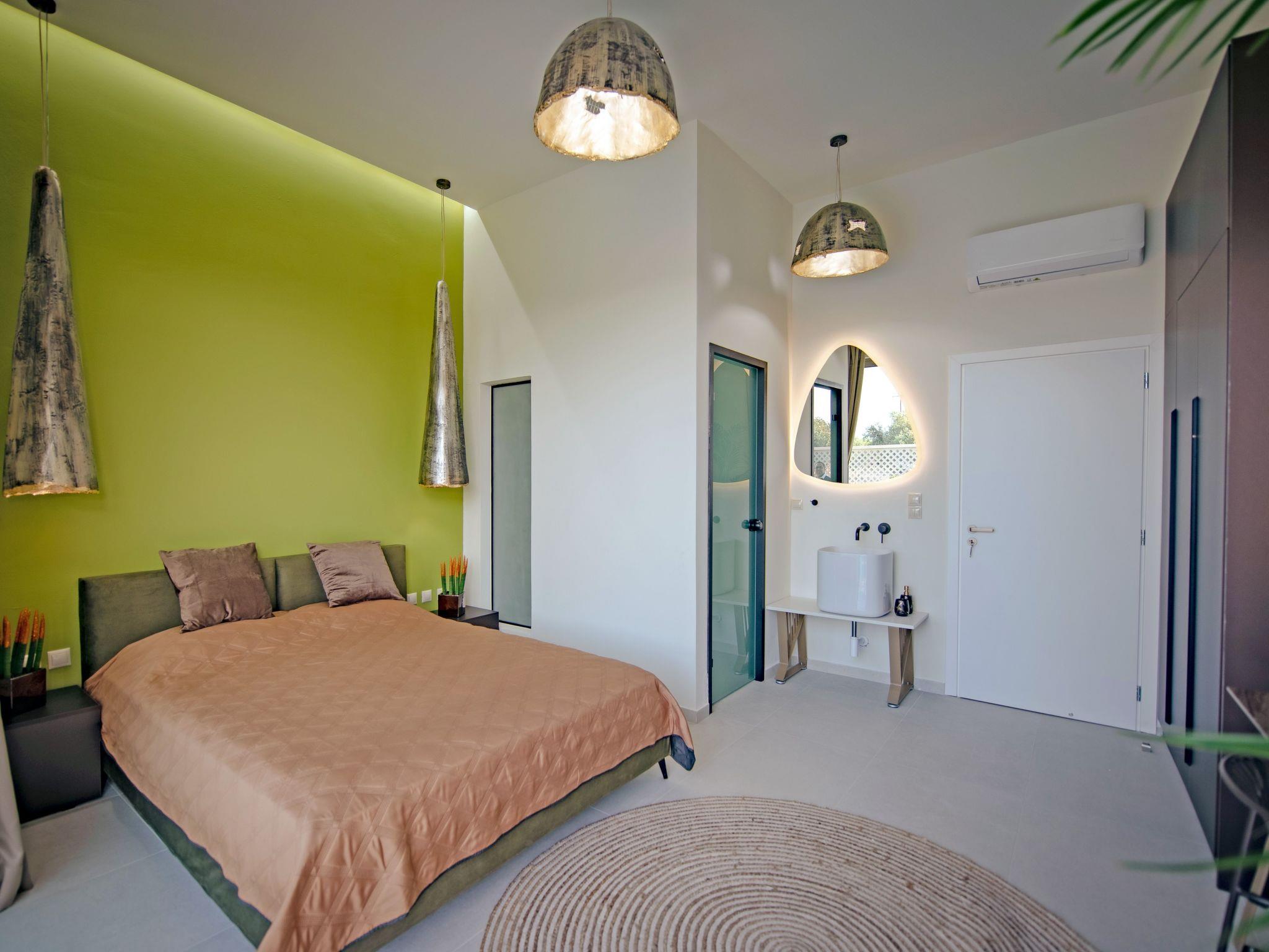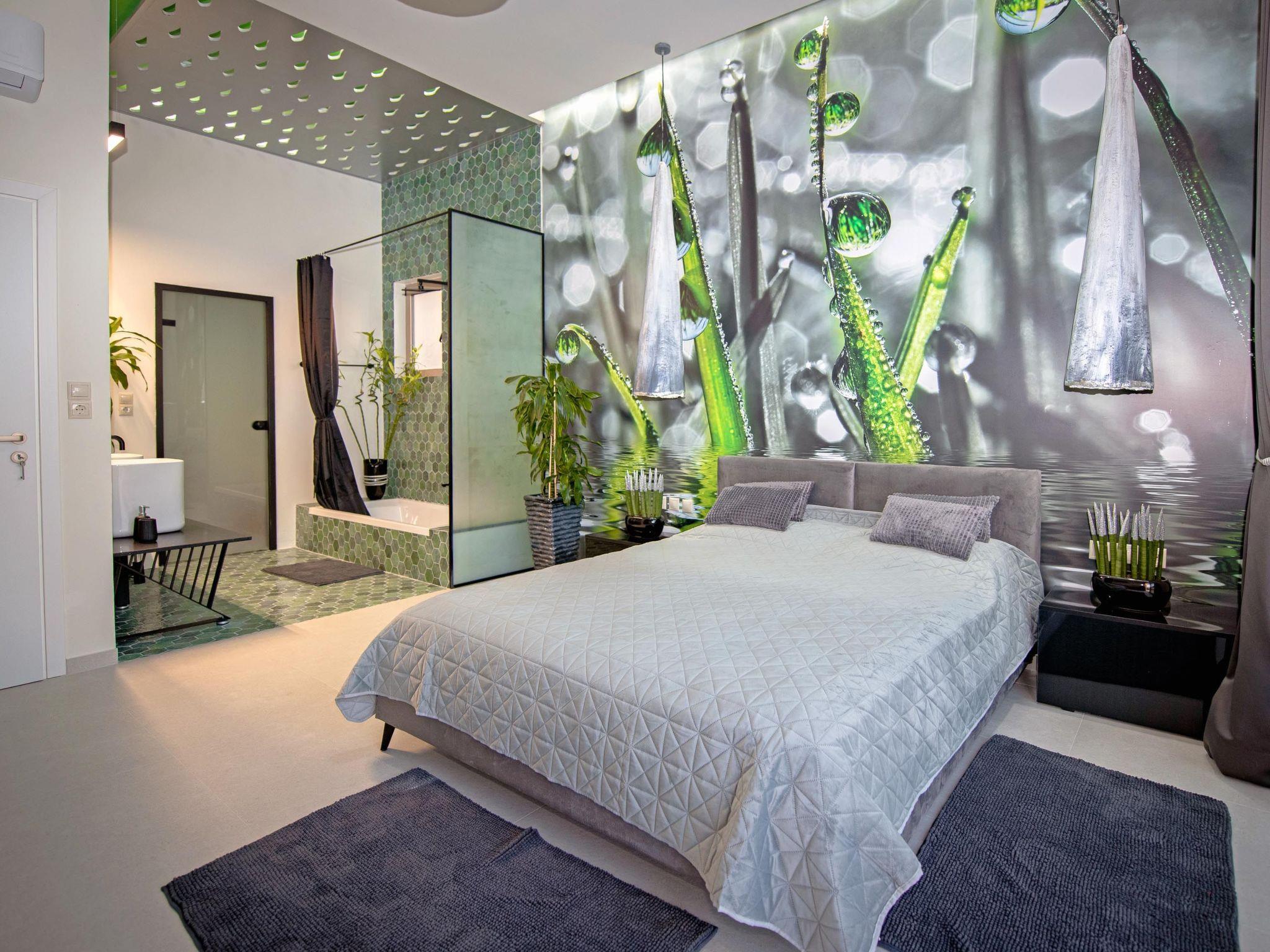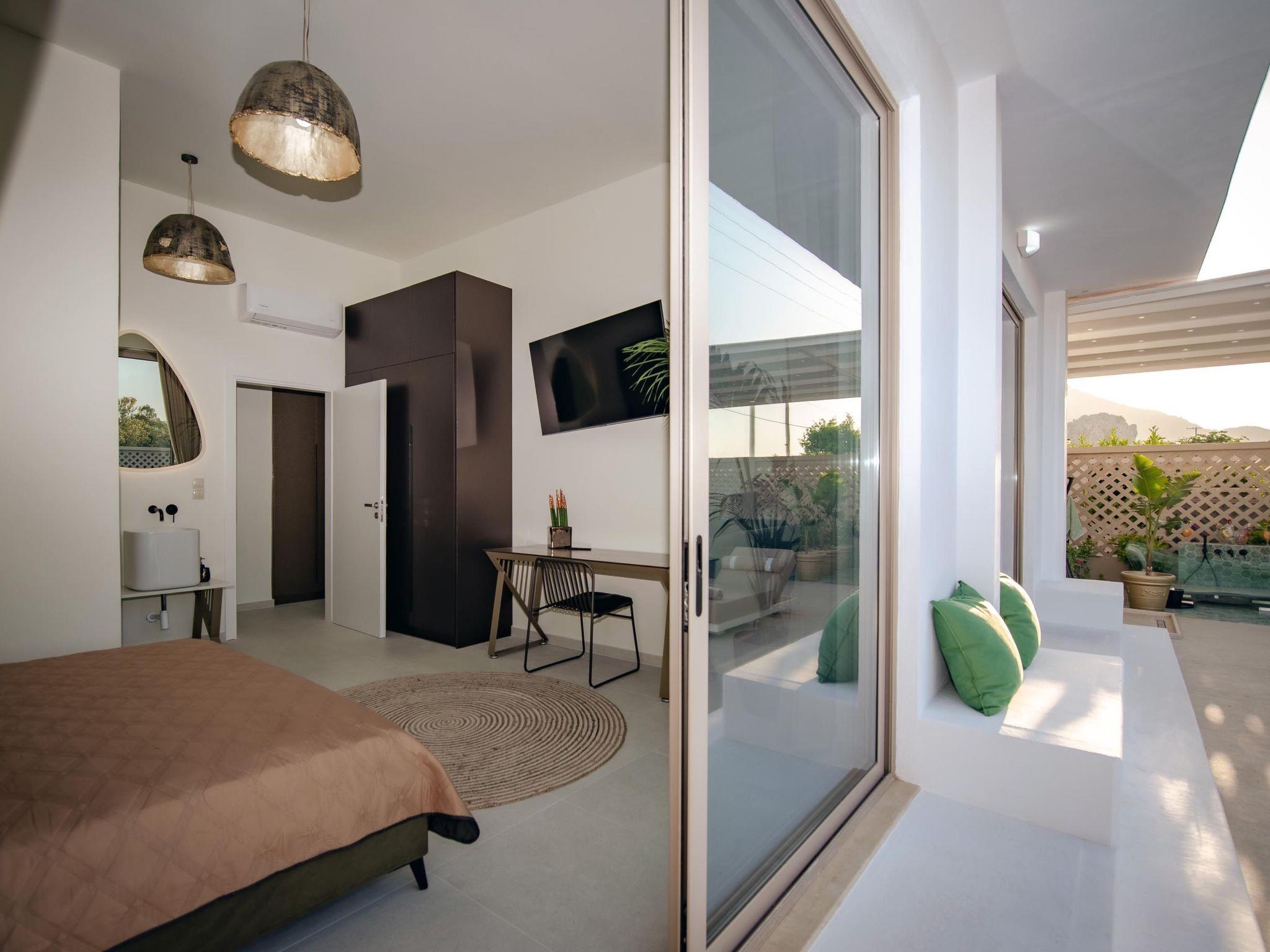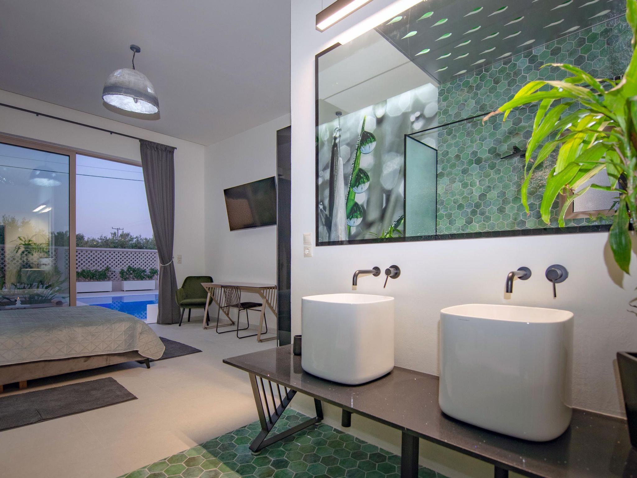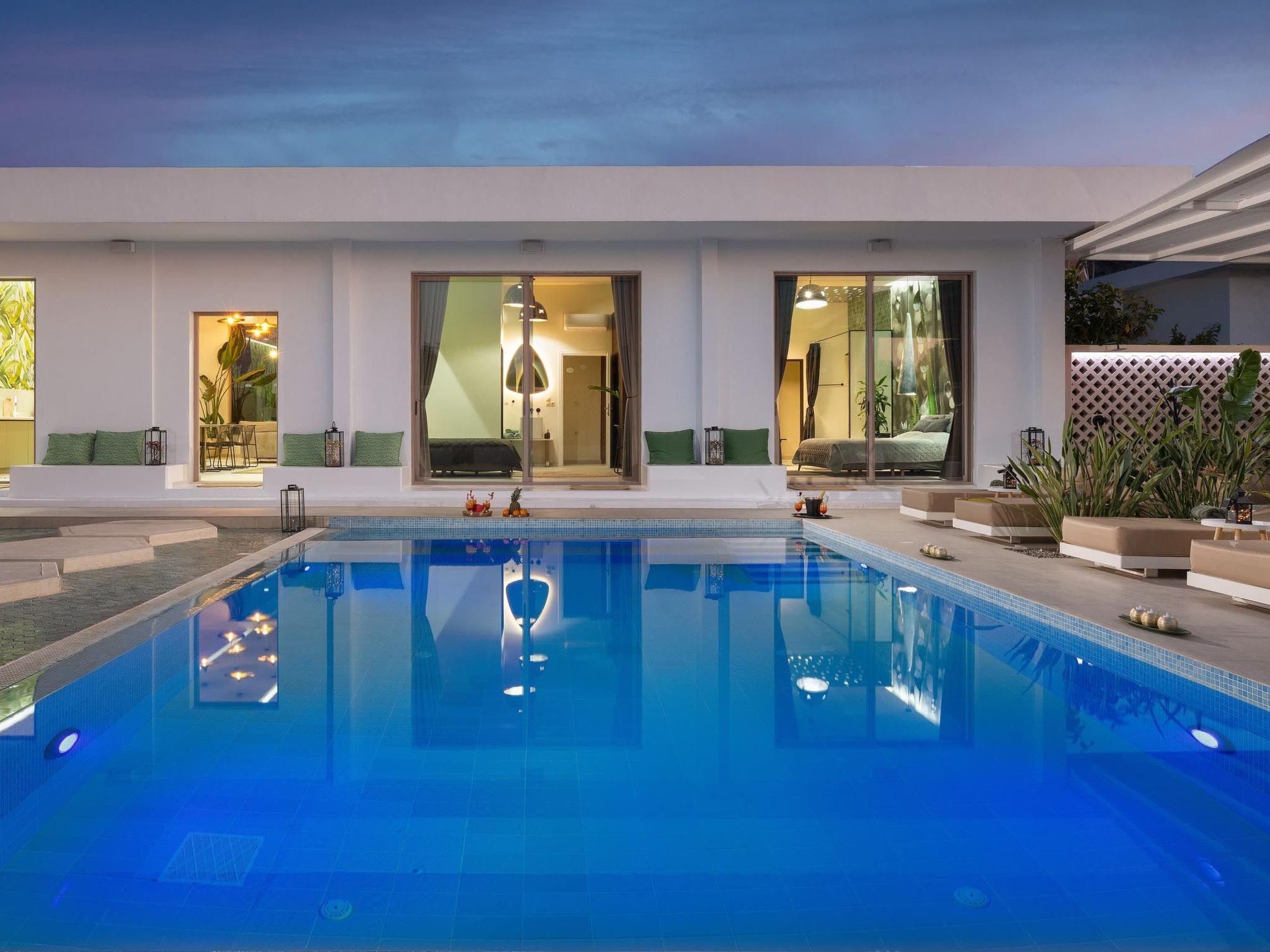 Gaia Villas , a brand new luxurious complex ,consisting of Gaia Green Villa and Gaia Blue Villa, guarantee a memorable ,relaxing and unique experience . The villa has 3 fully air- conditioned , large bedrooms with double beds and 3 en suite bathrooms , flat screen 55 " smart TV s as well as big windows which facilitate the connection with the natural surroundings. If, however, work awaits you do not worry ! There are work spaces and Wi-Fi available throughout the premises .The ample living room constitutes a truly relaxing space evidence of the owner's attention to every detail in design ...The kitchen is fully equipped to accommodate your culinary habits as well as your experiments with local products and recipes. The property' s outdoor space is highlight on its own merit. You will enjoy your time at the private big overflow swimming pool with hydromassage as the desk is equipped with sun beds and pergola. For your ultimate relaxation there is a outdoor bathtub with hot water. Outdoor seating are also include a beautiful veranda with BBQ and an outdoor dining table..