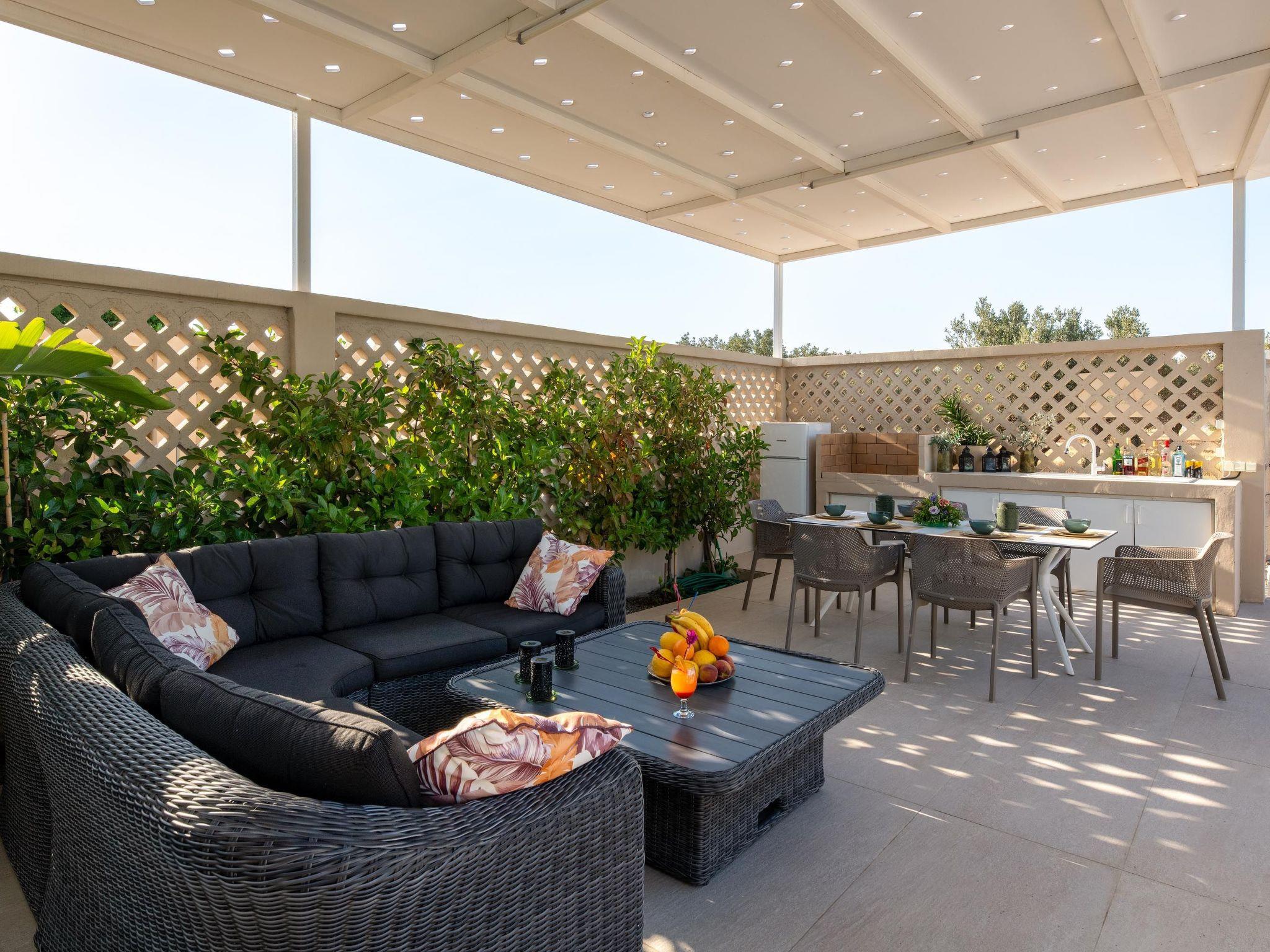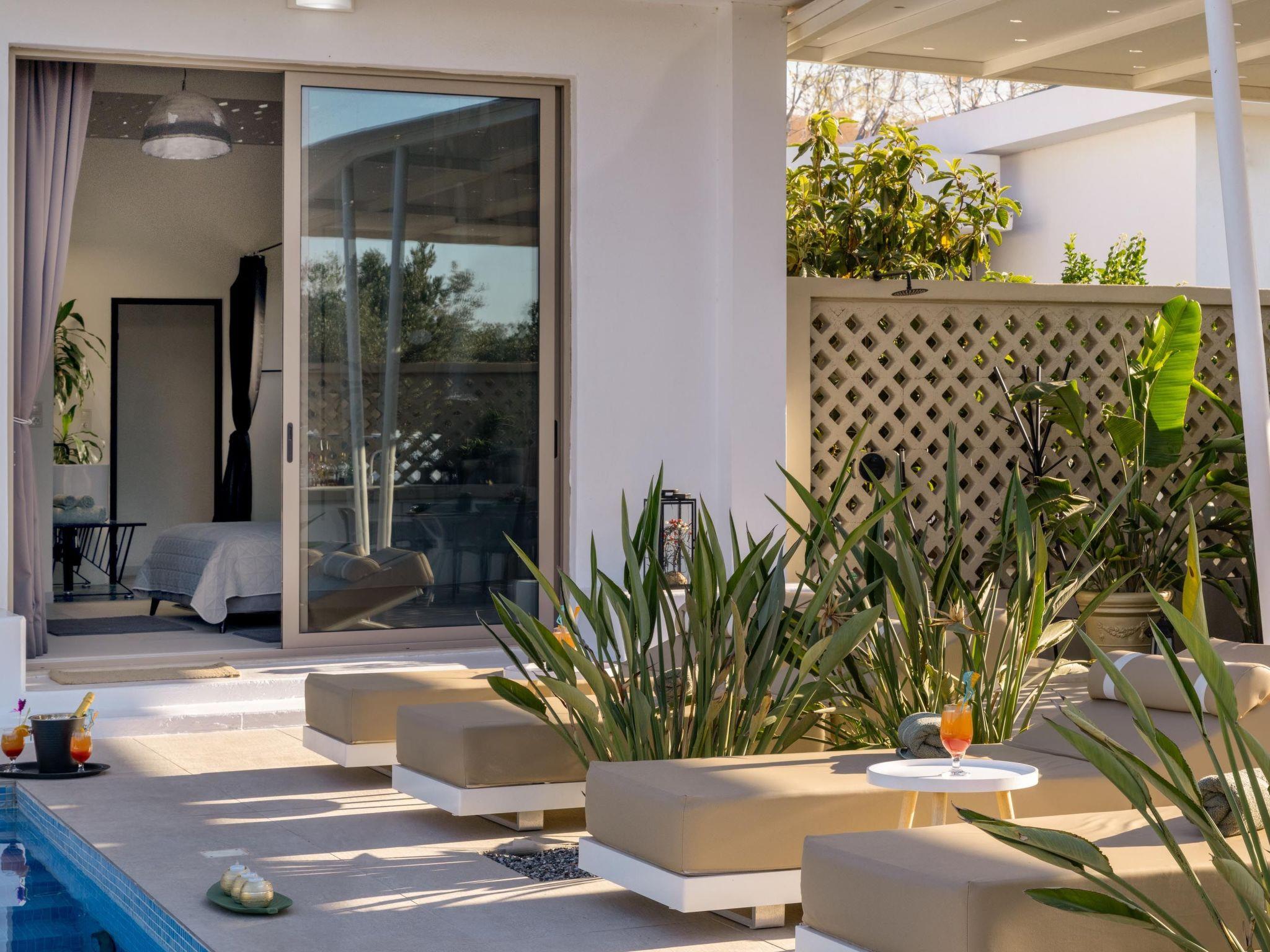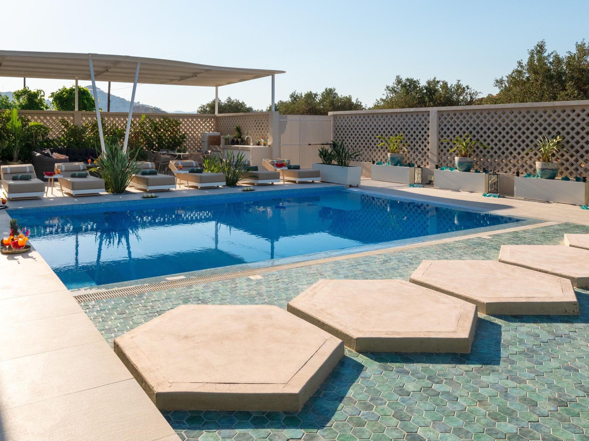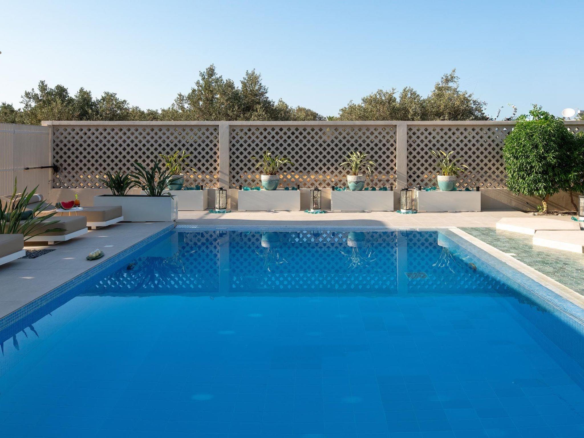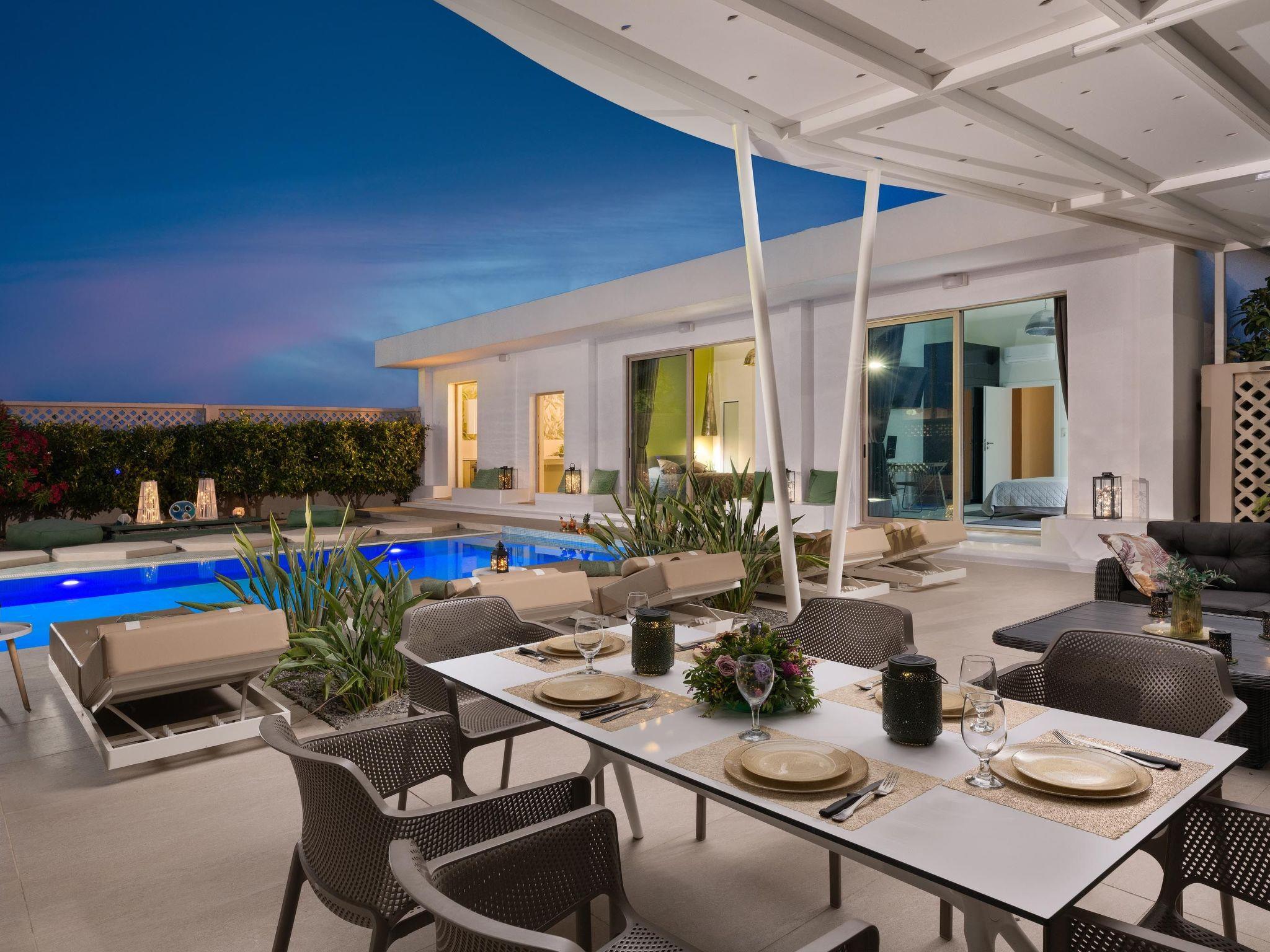 Gaia Villas , a brand new luxurious complex ,consisting of Gaia Green Villa and Gaia Blue Villa, guarantee a memorable ,relaxing and unique experience . The villa has 3 fully air- conditioned , large bedrooms with double beds and 3 en suite bathrooms , flat screen 55 " smart TV s as well as big windows which facilitate the connection with the natural surroundings. If, however, work awaits you do not worry ! There are work spaces and Wi-Fi available throughout the premises .The ample living room constitutes a truly relaxing space evidence of the owner's attention to every detail in design ...The kitchen is fully equipped to accommodate your culinary habits as well as your experiments with local products and recipes. The property' s outdoor space is highlight on its own merit. You will enjoy your time at the private big overflow swimming pool with hydromassage as the desk is equipped with sun beds and pergola. For your ultimate relaxation there is a outdoor bathtub with hot water. Outdoor seating are also include a beautiful veranda with BBQ and an outdoor dining table..