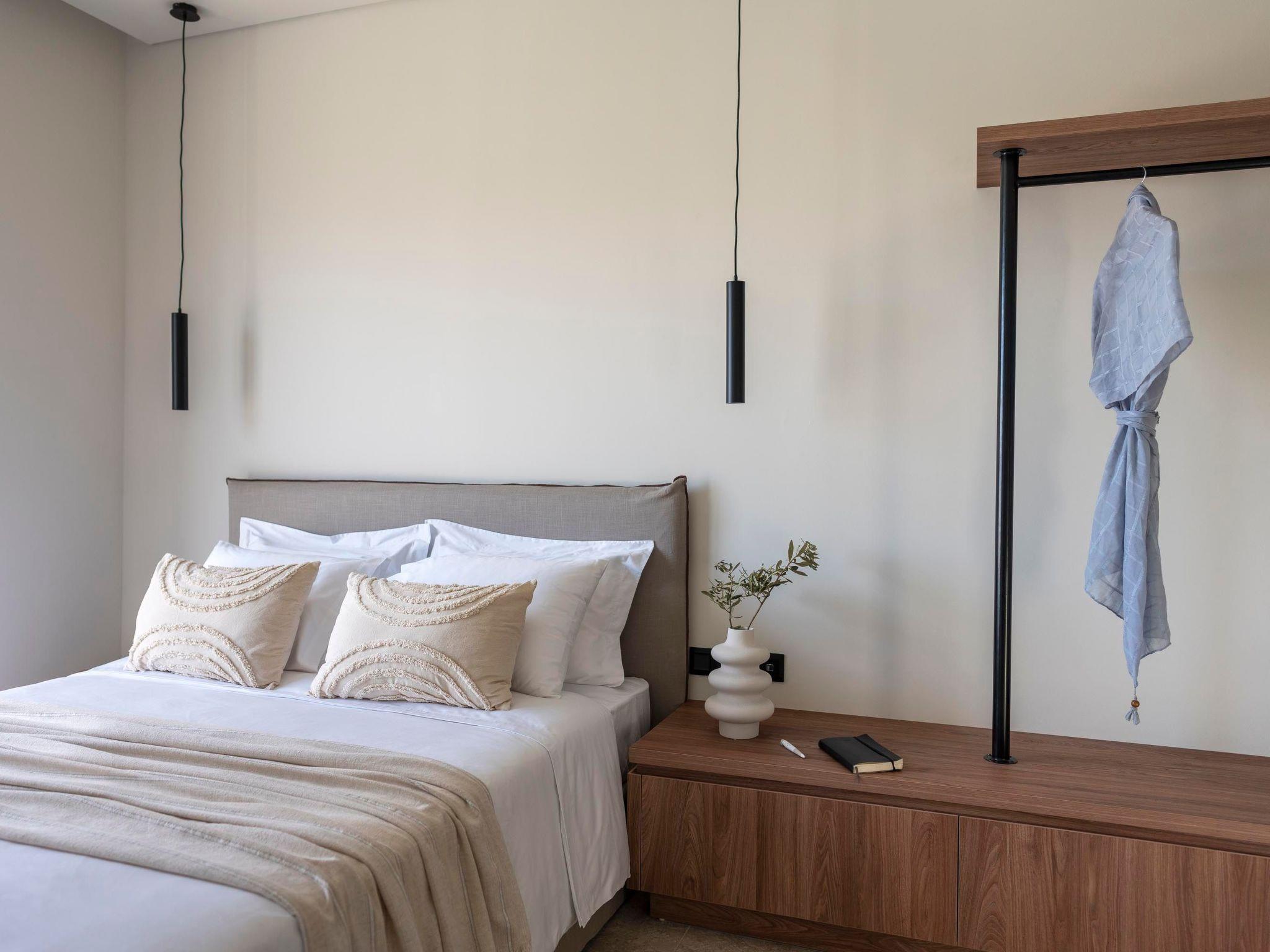 Massari Hills Luxury Living are 15 fantastic brand-new properties designed in unique minimal architecture with unique warm-colored details. They are located in Massari, only a 5-minute drive from Charaki beach. All of the modern villas provide you with all comforts, private swimming pools and patios in a unique design. There is an outdoor sharing gym and each villa offers a BBQ installation. Each property accommodates up to 8 guests.