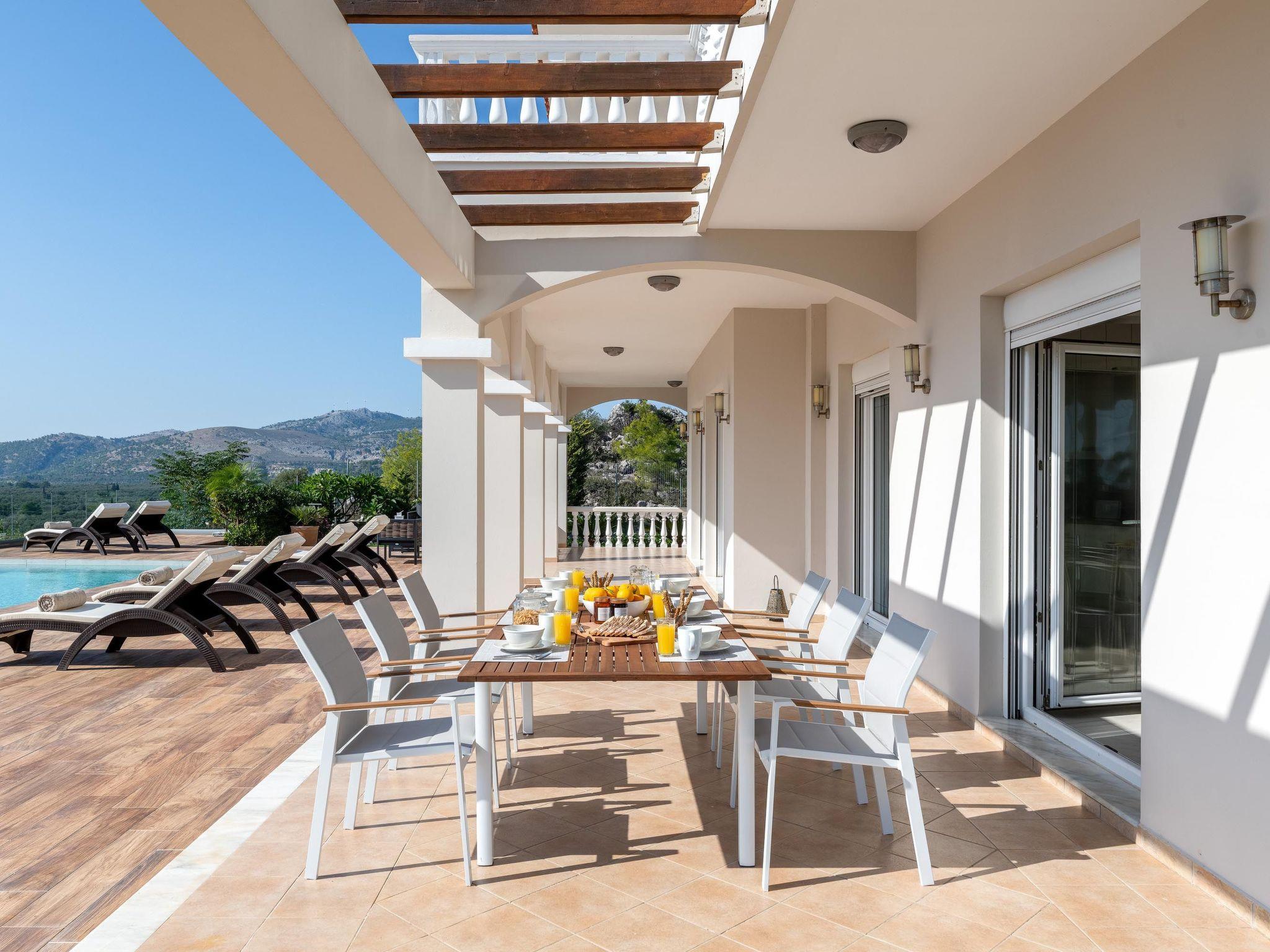 Kamos Villa is designed for your ultimate pleasure. It offers a private swimming pool surrounded by a great view and is just a short drive away from Archaggelos village, and less than 8-minute drive from Stegna beach. The Villa is perfect for up to 10 people and is well designed to offer you a complete relaxation and memorable holidays in Rhodes.