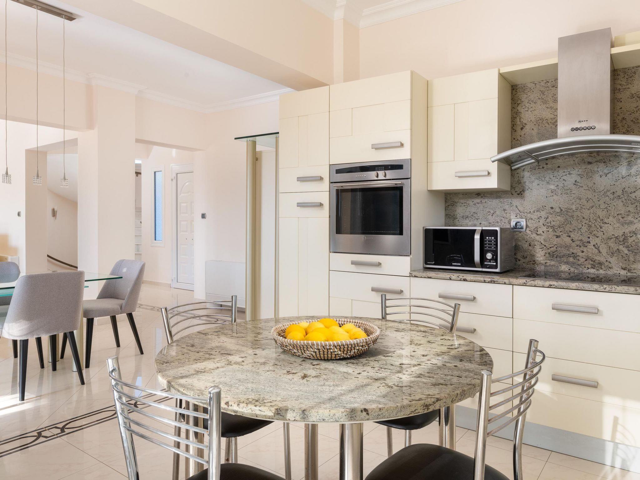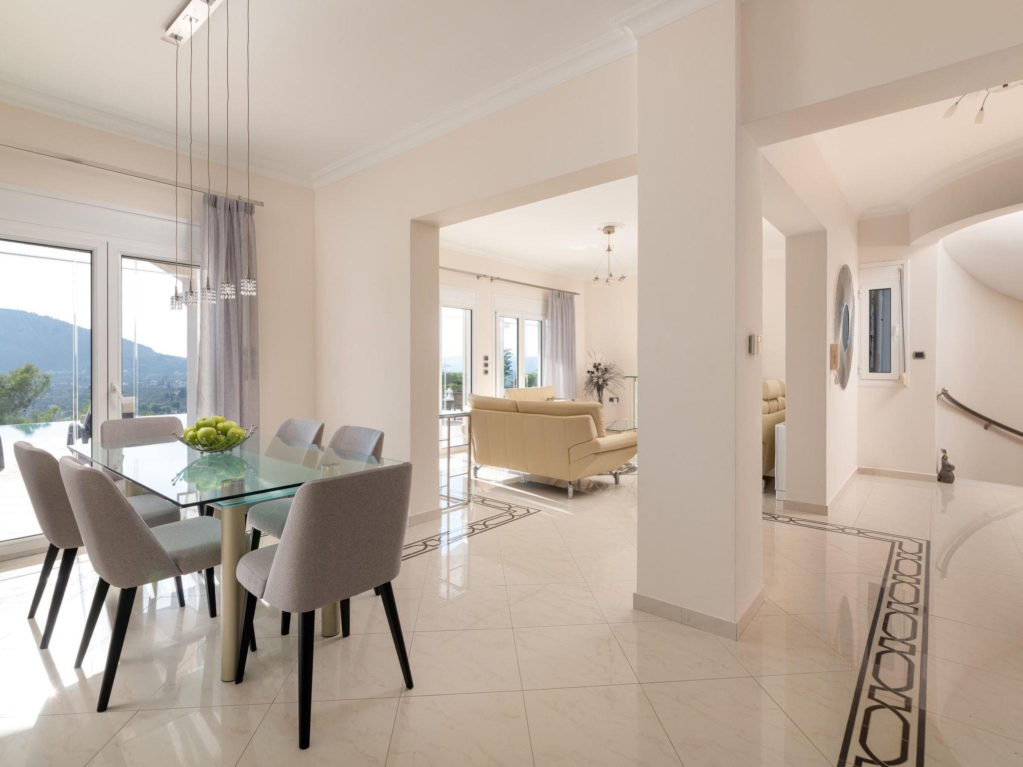 Kamos Villa has 5 air-conditioned bedrooms decorated in a sophisticated design. All of the bedrooms are spacious and offer double beds. There’s a fully equipped kitchen, suitable for any meal preparation. There’s a seating area and a comfy living room where you can sit and relax. There are 2 bathrooms, both with a bathtub for your ultimate relaxation and comfort. Guests will have free Wi-Fi access throughout the property and a smart TV. Outdoors, there’s the magnificent private swimming pool surrounded by the sunbeds and a beautiful view. Also, guests will have the opportunity to use the BBQ facilities accompanied from the seating area. Of course, the beach is found within less than 8 minutes so you can spend quality time there with your loved ones. Holidays in Villa Kamos will be an unforgettable experience with memories that will last forever.