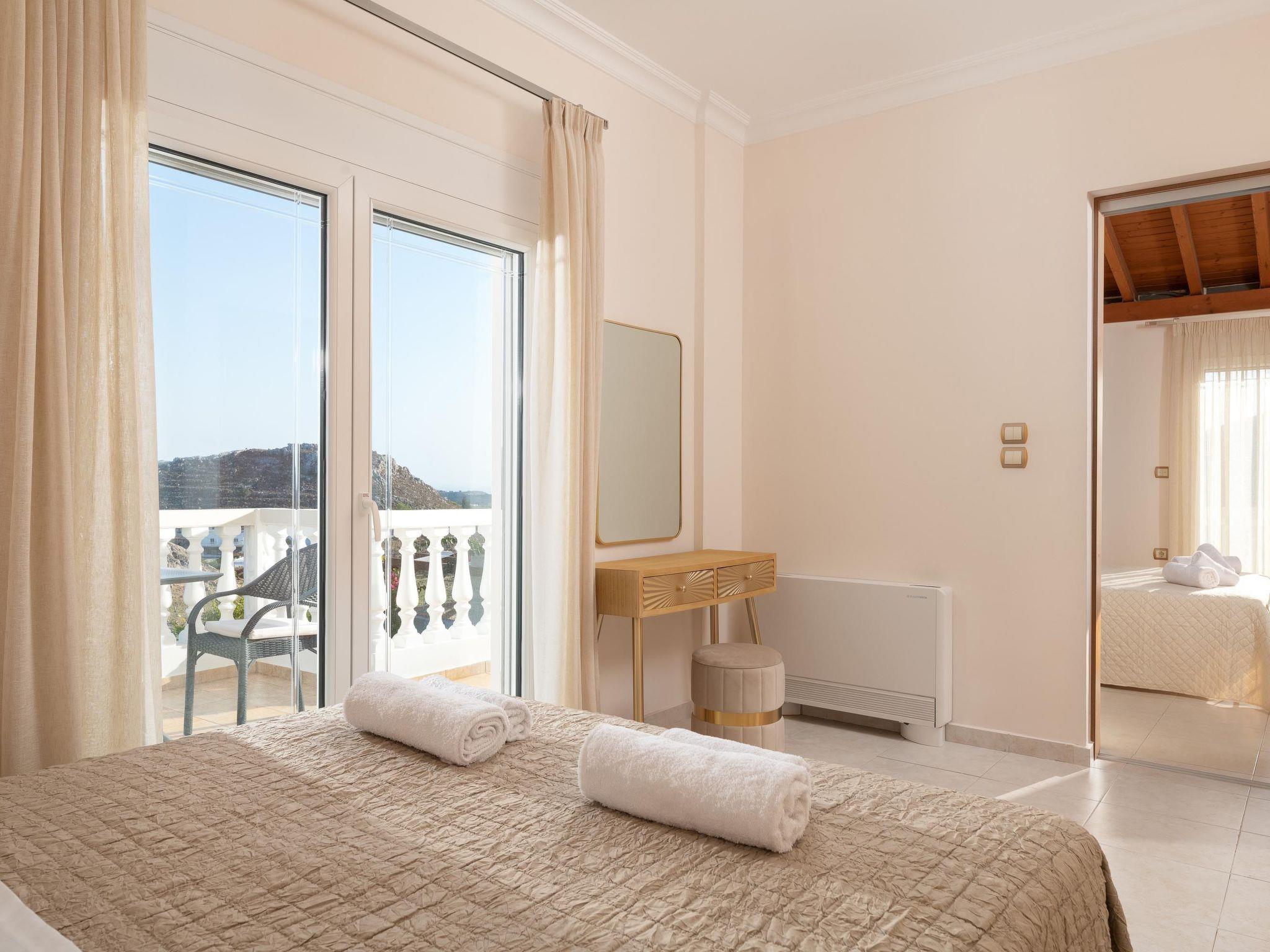 The villa is situated within walking distance from Archaggelos center, a well-developed area with many conveniences available such as shops, restaurants, cafes, pharmacies and car rentals. The nearest exquisite beach is Stegna, in a distance of only a 10-minute drive away from the villa. Nearby you will also find Charaki beach, in a short distance of only an 8-minute drive, with its’ quiet atmosphere and clear waters. Also, you should not miss visiting Tsambika beach, one of the most beautiful beaches on the island in a distance of only 10 minutes, with its golden sand and steep water. You should not miss seeing the Old Town, a UNESCO World Heritage, in a distance of about a 45-minute drive away from the villa. The island’s airport is found in the distance of a 40-minute drive. The villa is also just a 20-minute drive away from a south part of the island, Lindos. Lindos Acropolis is the most impressive archaeological site of Rhodes and has the most idyllic beaches.