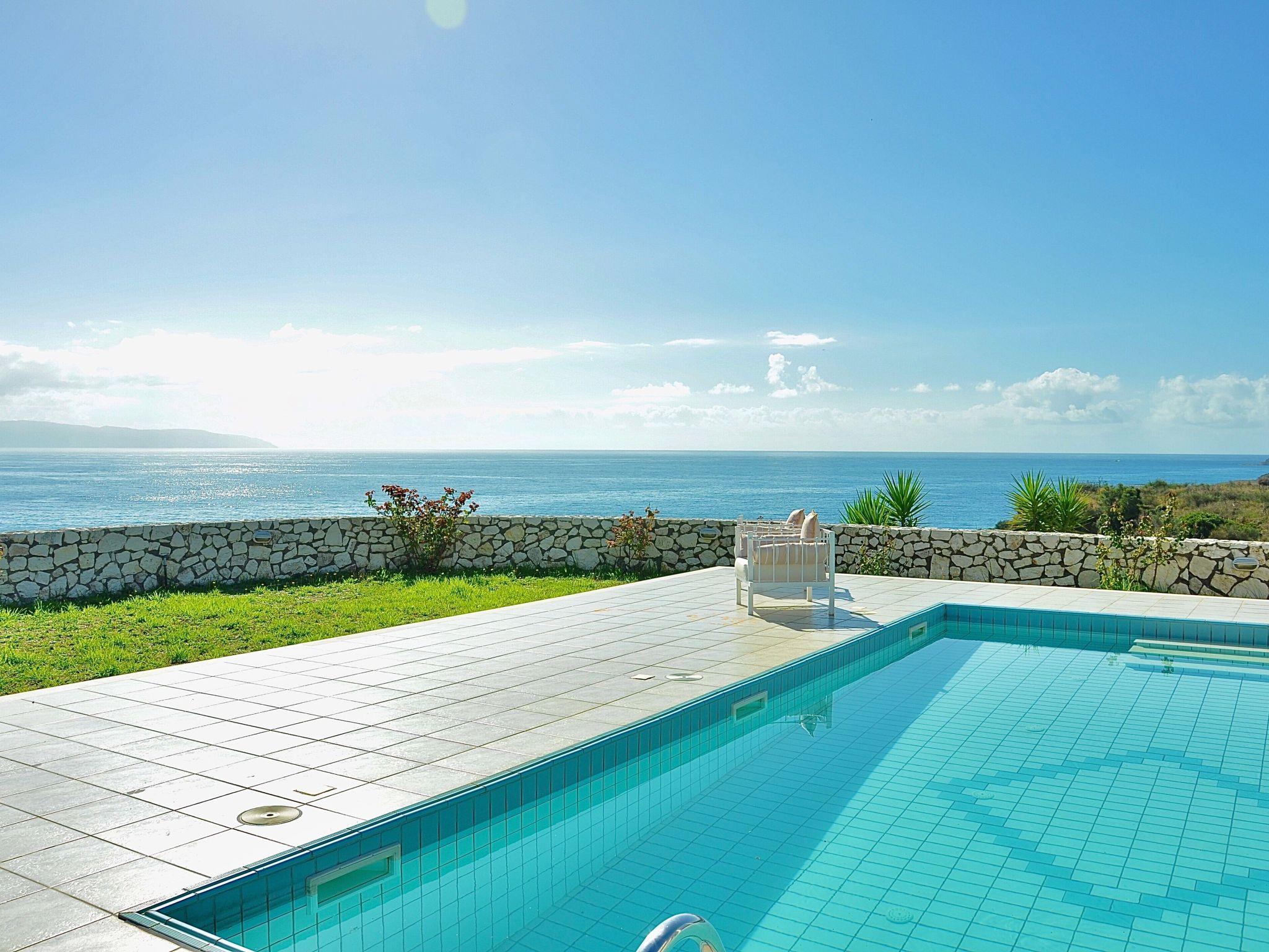 Seafront Villa located in a unique property,front of the Sea,with amazing Seaviews and fully privacy.Consists of two floors, on the ground floor located the fully equipped kitchen with oven / hobs, microwave, kettle, coffee maker, refrigerator / freezer, dishwasher, washing machine, also located the living room, SateliteTV,AC, balcony door who drives to swimming pool area,Bathroom with washbasin, bath tub,toilet.On the first floor located bedroom with Double bed,closet, A/C,balcony door who drives to the balcony, as well as bedroom with Two single beds,wardrobe, A/C,balcony door who drives to the balcony.Bathroom with washbasin,bath tub,toilet.
