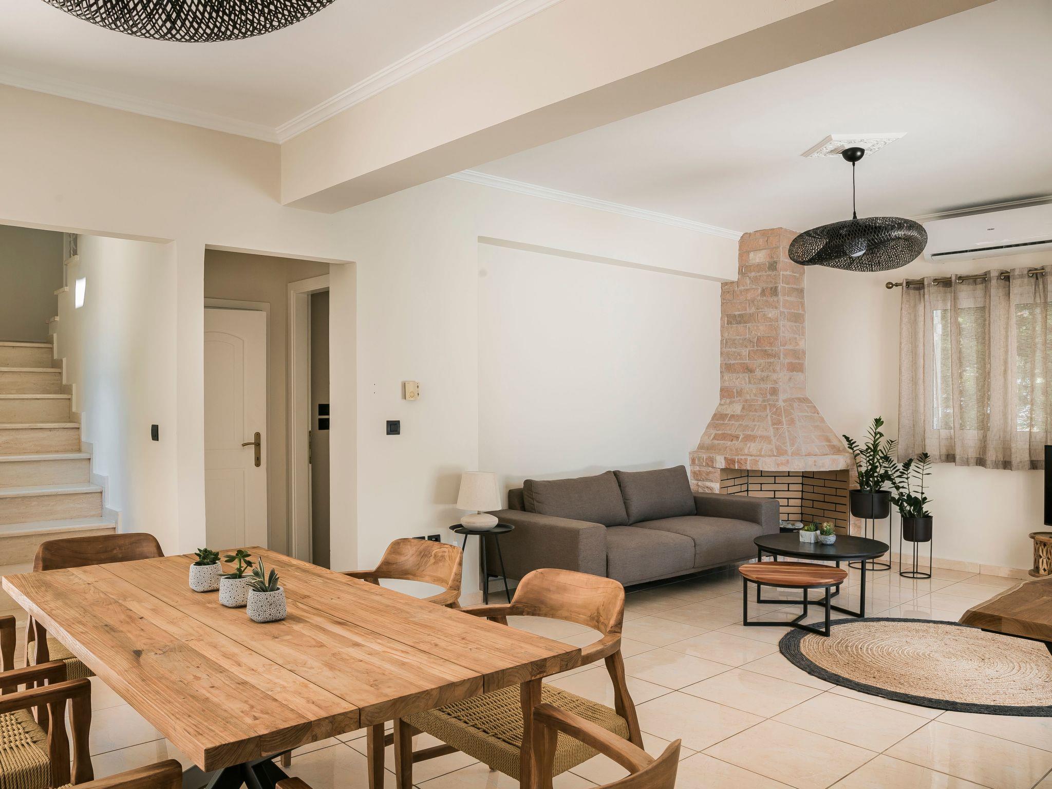 Villa Thalassa located in a unique location,offering amazing Seaviews and privacy, decorated in Boho style.Consists of two floors, on the ground floor located the fully equipped kitchen with oven / hobs, microwave, kettle, coffee maker, refrigerator / freezer, dishwasher, washing machine, also located the living room, cable TV,AC, balcony door who drives to swimming pool area, there is also a guest w/c ,as well as a bedroom with Double King size bed (1.60m),wardrobe, A / C, ensuite bathroom with washbasin,toilet,shower.On the first floor located bedroom with Double King size bed (1.60m), closet, A/C,ensuite bathroom with washbasin,shower,toilet. balcony door who drives to the balcony, as well as bedroom with Double King size bed (1.60m). ), wardrobe, A/C,ensuite bathroom with washbasin,shower, toilet,balcony door who drives to the balcony.