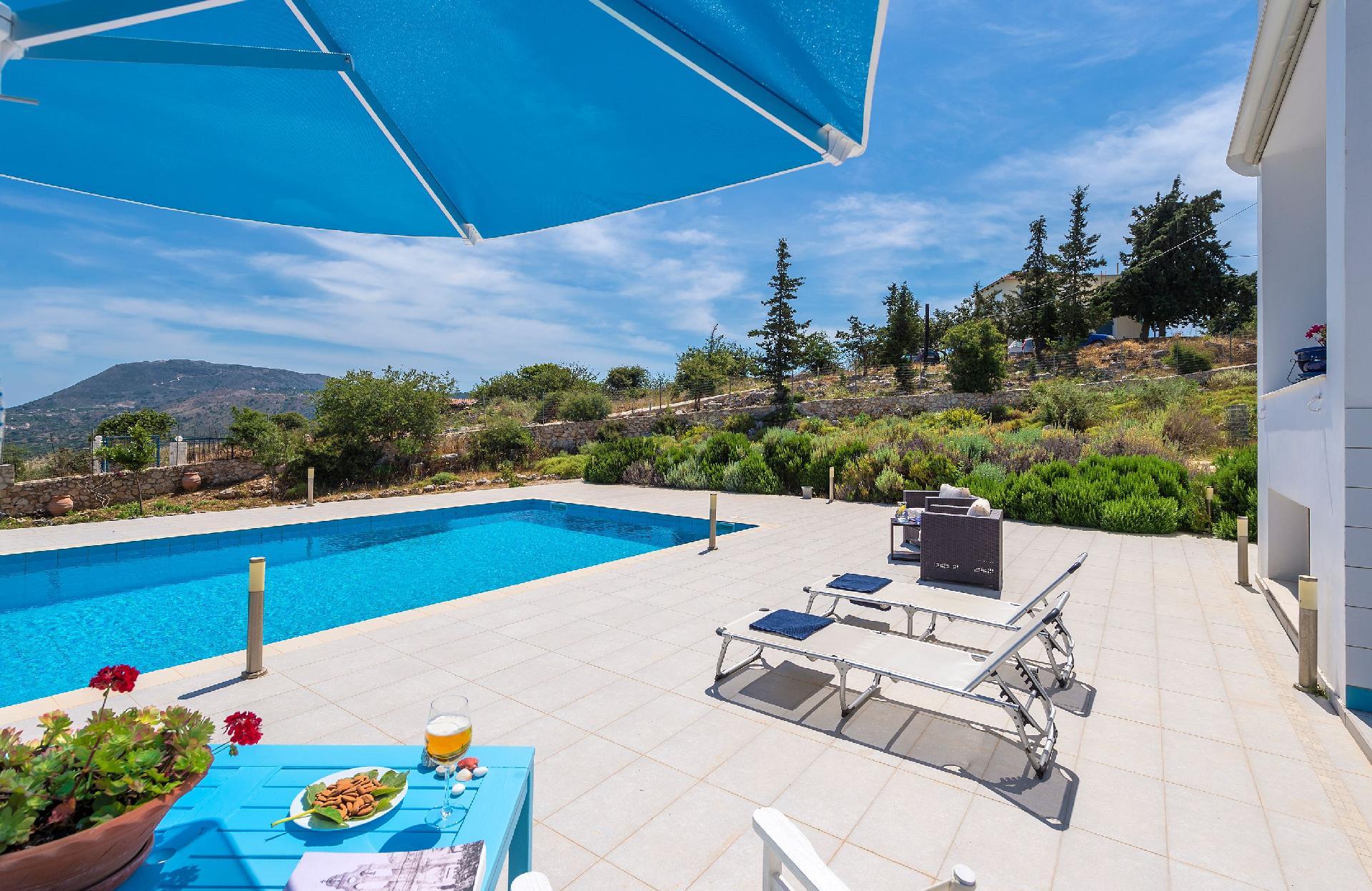 The most distinctive features of the villa are its views: mountains, sea, and the ambiance of the surrounding countryside with its herbs, carob, cypress, and olive trees. The Villa is well-designed, well-equipped and comfortable. The Villa is reached by a fully asphalted 4-meter-wide road and is 800 meters, from the main road. Its location allows you to visit all areas of Crete efficiently.