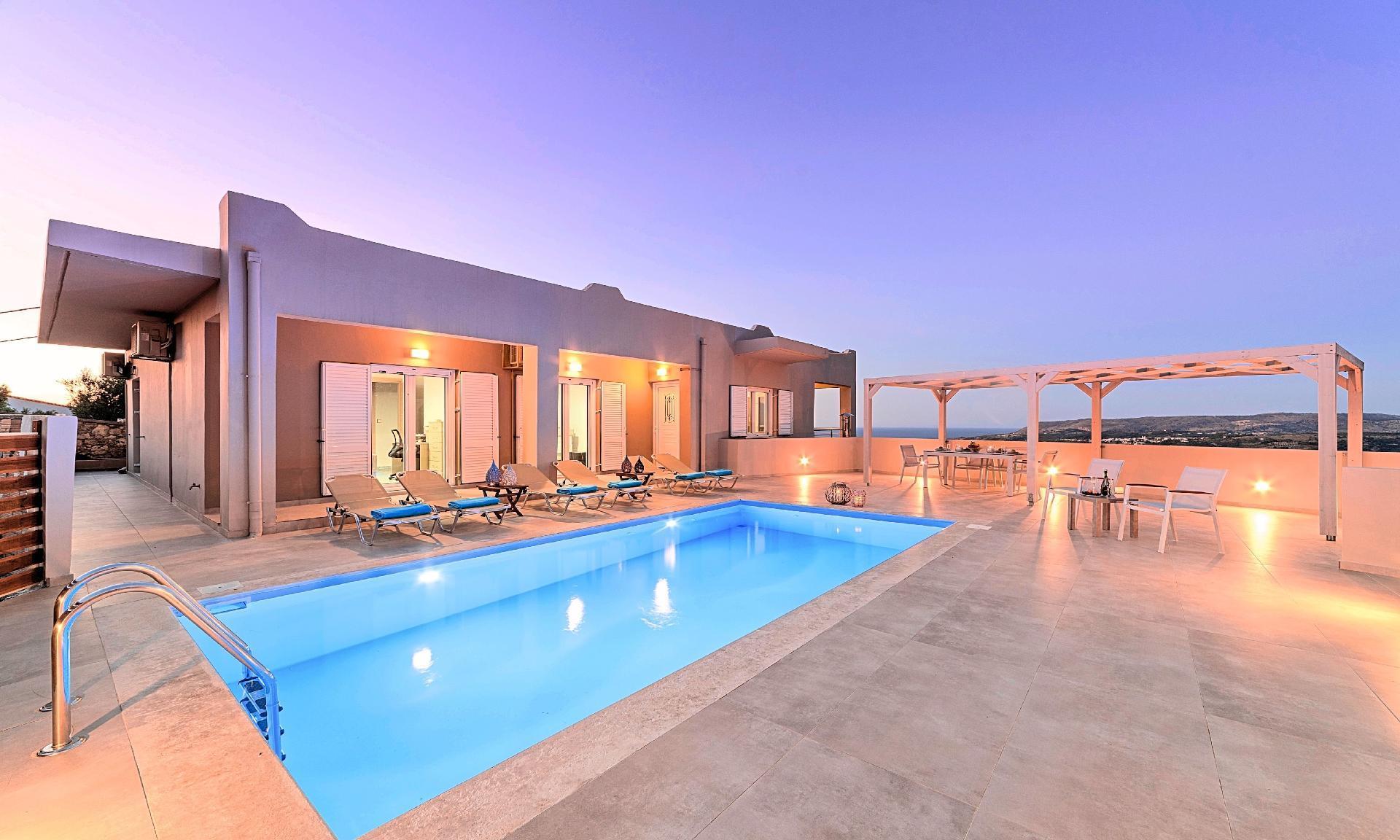 Villa Di Giorgio located in one of the most picturesque traditional Cretan Villages, Kournas, Chania, Crete.A recent renovation gave a fresh look and a relaxing atmosphere where the house architecture blends in harmony with the surrounding nature and the beautiful village. The house is minutes’ drive from the only natural lake of the island and 2,5 km from the famous Kournas sandy beach.Our veranda is ideal for breakfast or lunch while enjoying the magnificent view of the Cretan Sea. You can relax at the private swimming pool, surrounded by a colorful flourishing nature, laying in your sunbed with a refreshing drink or snack.Villa di Giorgio offer’s everything that is required to make your stay in Crete an unforgettable experience.The management and the staff extend you a very warm welcome believing that your stay with us will be pleasurable and unforgettable.The outdoor pool is heated and can reach 6 to 8 degrees more that the 24 h average air temperature with maximum value of 29°CShort descriptionOther : Non-smoking houseShort description 1Number of kitchens : 1SurroundingNearby sports facilities : Diving, Mountain climbing, TennisRental Facilities : car rentalGarden and outdoorGarden facilities : GrillOn-site leisure facilities : Outdoor swimming pool exclusive use, Swimming pool