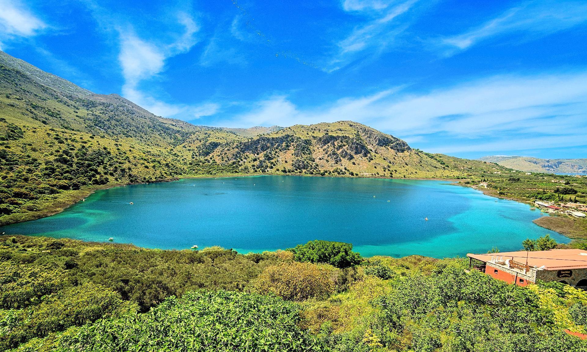 Kournas is a pretty traditional village 8 km from Georgioupoli and about 4 km from Lake Kournas. If you are visiting Lake Kournas it is worth driving 15 minutes further along the narrow uphill road to Kournas. While the lake is 'touristy', Kournas village is completely unaffected by tourism and takes visitors on a journey back in time, as do many villages in the interior of Crete (these words were written in 2009, I hope I won’t need to change them in future…) agapinakis taverna in kournasThe old houses, the village square, the pottery workshop opposite the large kafeneio and Agapinakis's taverna "Kali Kardia", with its wonderful salads and delicious meat, are the first things you will notice in the village of Kournas. The village of Kournas has 500 inhabitants and lies at an altitude of 200 metres in the foothills of Mount Dafnomadara (1680 m). Kournas prospered from the 16th century onwards and is linked to many battles for freedom from the Turks. It was the seat of the Revolutionary Government in the Rising of 1866 and the seat of the Cretan General Assembly in 1897. The village of Kournas lacks particular facilities for tourists, but nearby Georgioupoli offers everything you might need. In the village of Kournas is the church of Agios Georgios, to which leads a road to the right of the square. It was built in Byzantine times, with architectural features added later during the Venetian period. The church is locked and you will not be able to see inside unless you find someone in the neighbourhood to give you the key, but it’s worth a try.