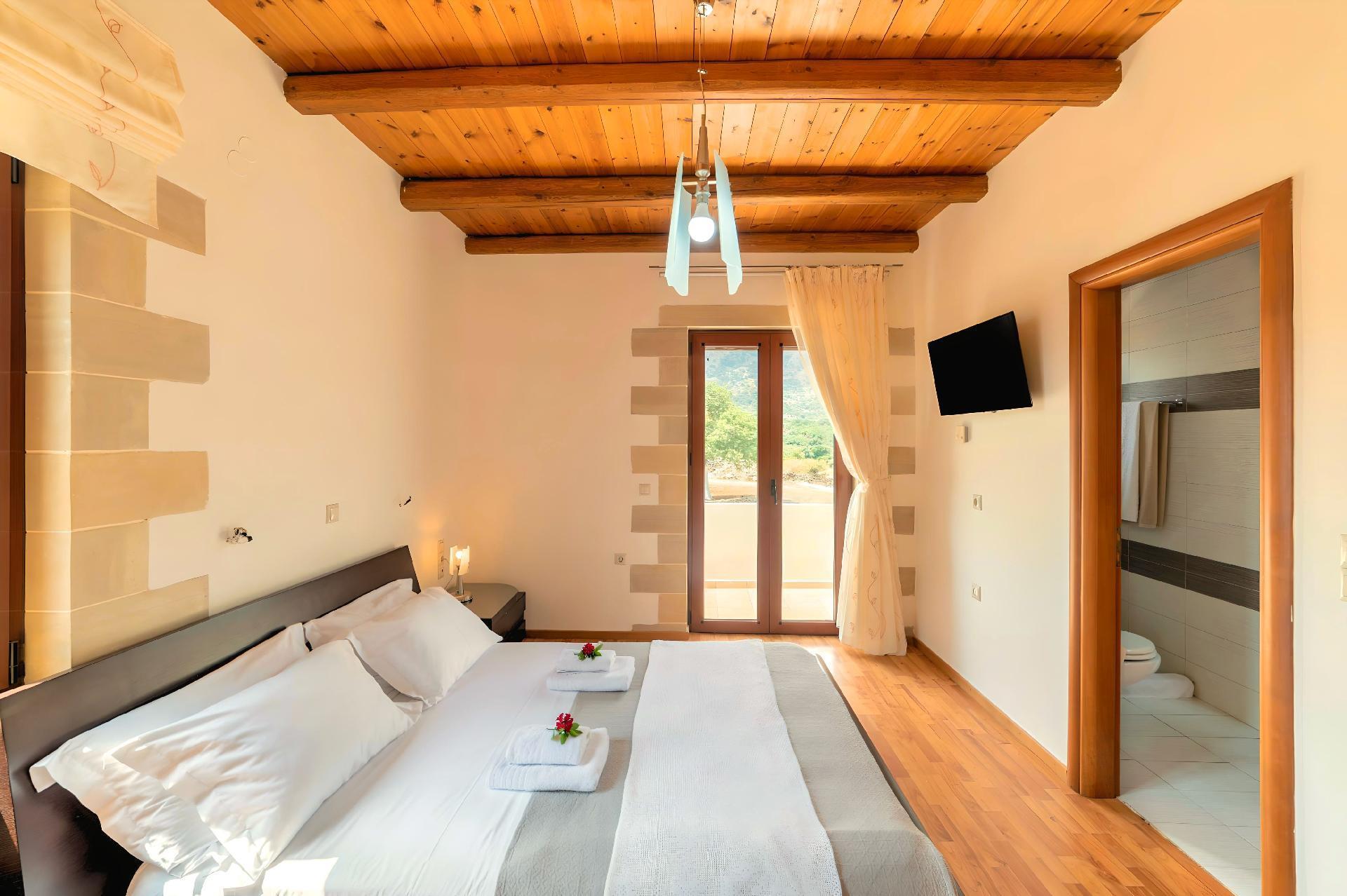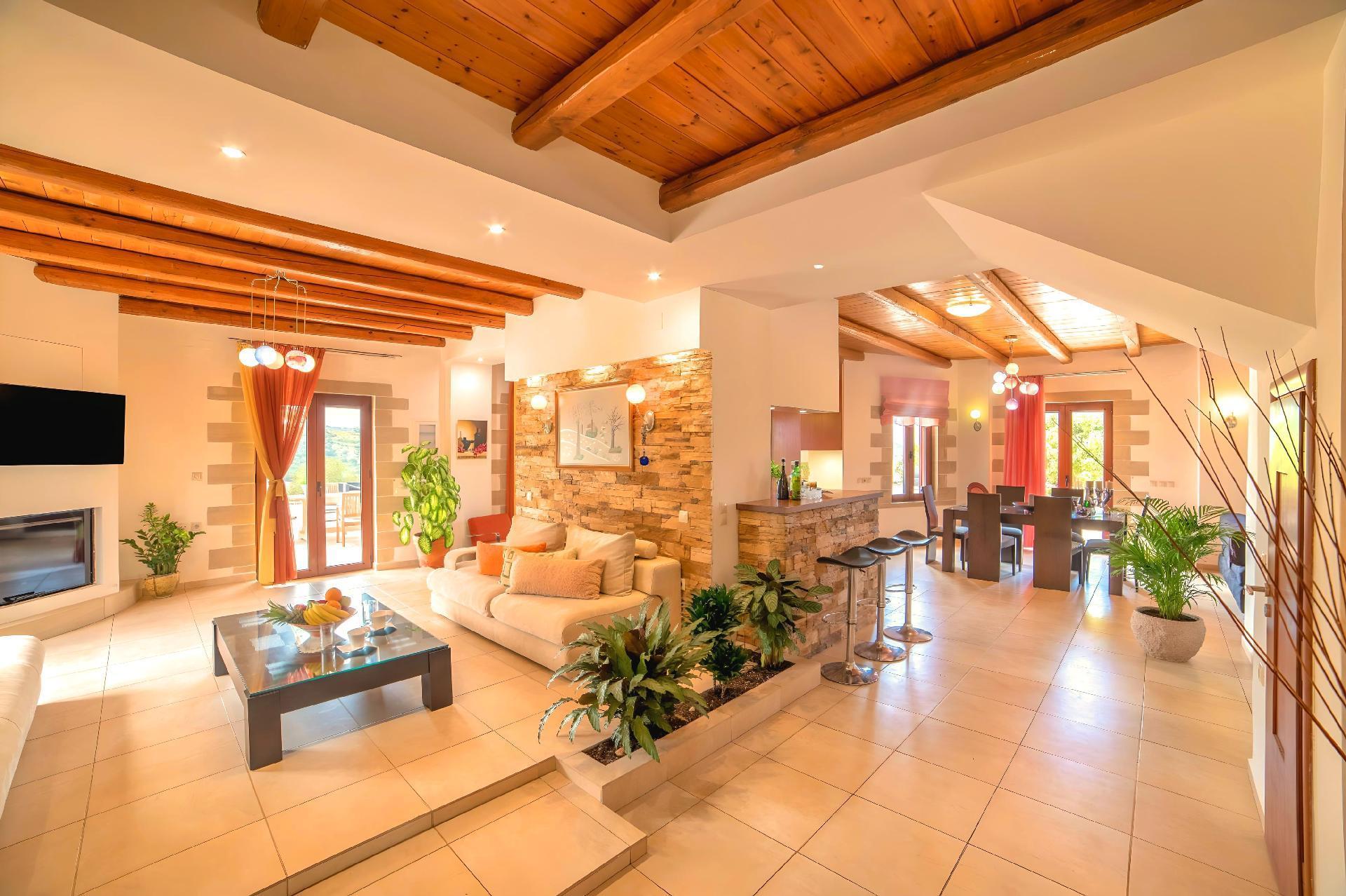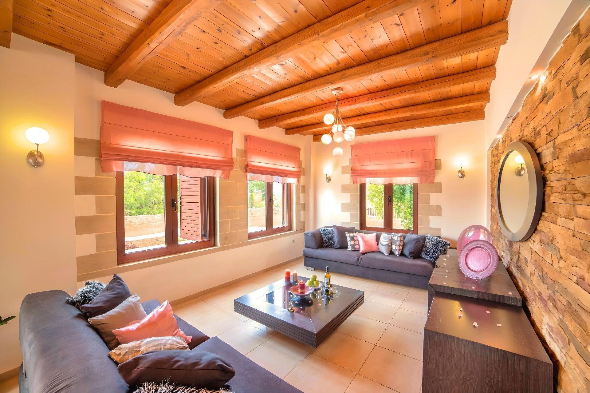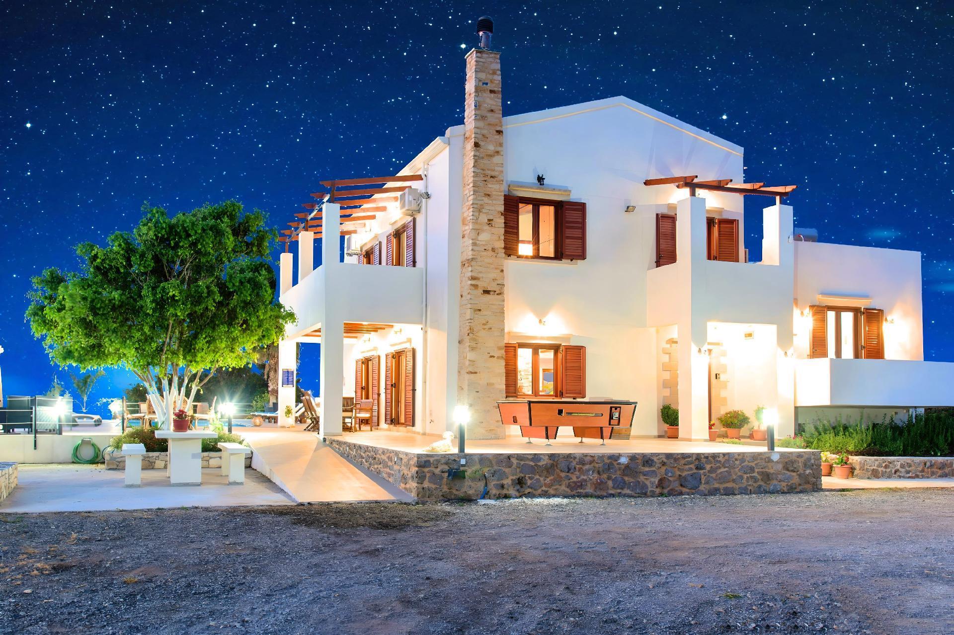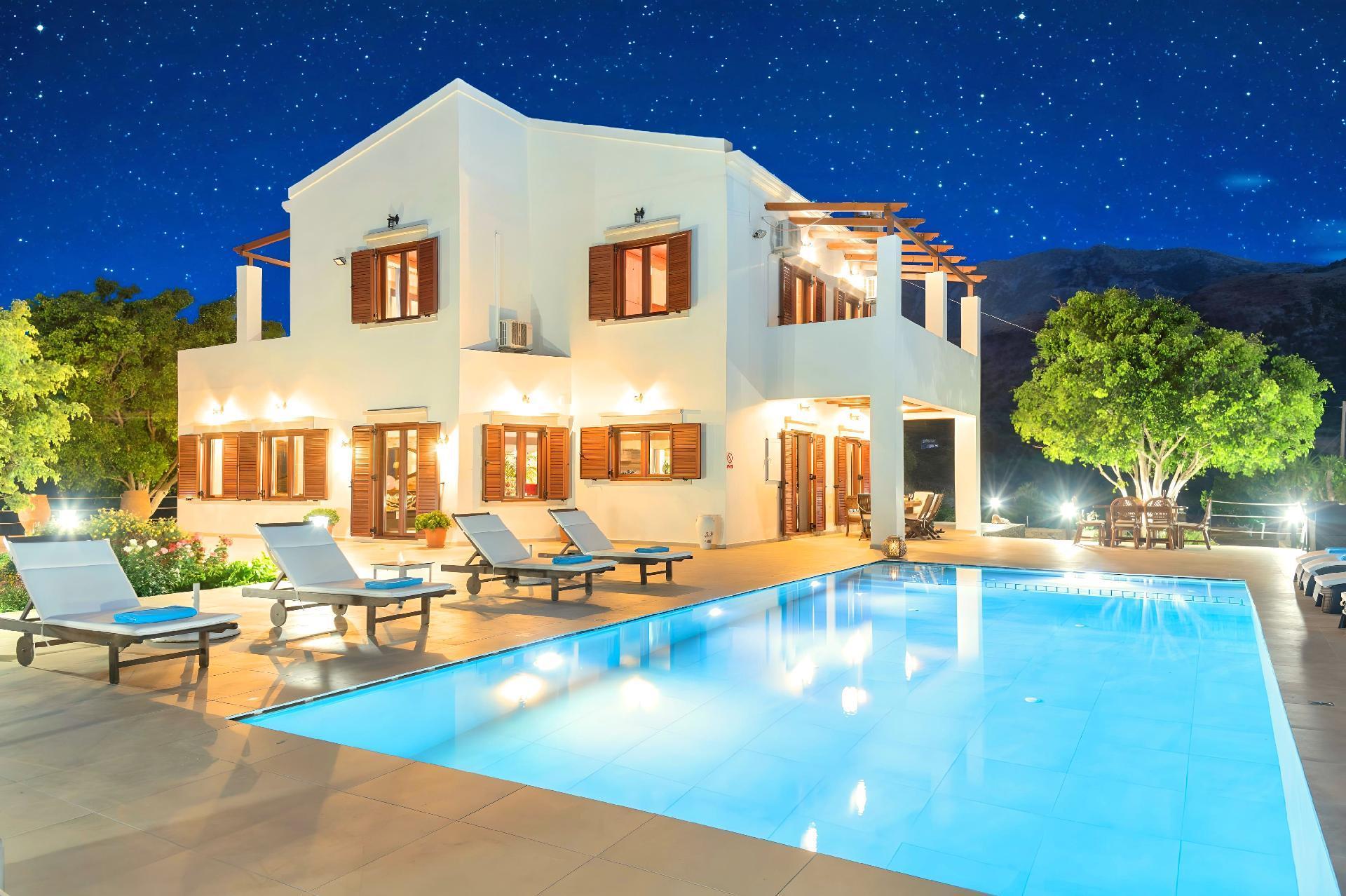 Nuzzled in a gorgeous hill, above the sun kissed beach of Georgioupolis in Crete, Cretan Dream Villa captures the essence of relaxing living only few minutes away from the shimmering sea. Built amphitheatrically with direct sea view, this elegant Villa evokes the island’s Mediterranean spirit and cosmopolitan charm in its elegant environs while ensuring a holiday beyond comparison. Surrender to the temptations of refinement at one of the most enchanting Cretan Villas and take in the splendid panoramic views to the emerald Cretan Sea. Find your peace and quiet and unwind in a haven of bliss and tranquility. Hide away in the calm of summer and elevate your senses at one of the most remarkable Villa with private pools. Cretan Dream Villa can accommodate up to 17 guests ( 13 in the bedrooms) and 4 more at the sofas in the living room).