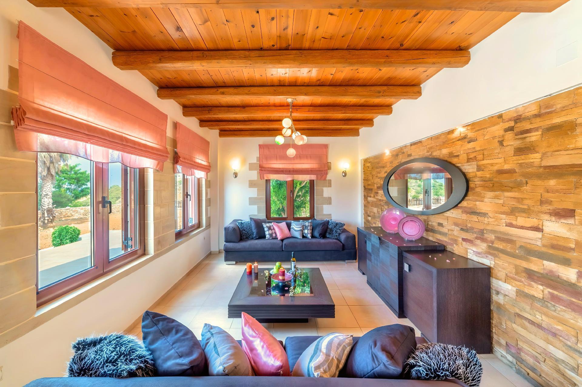 Built amphitheatrically with direct sea view, this elegant Villa evokes the island’s Mediterranean spirit and cosmopolitan charm in its elegant environs while ensuring a holiday beyond comparison. Surrender to the temptations of refinement at one of the most enchanting Cretan Villas and take in the splendid panoramic views to the emerald Cretan Sea. Find your peace and quiet and unwind in a haven of bliss and tranquility.