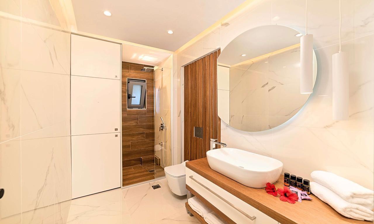 Mistral Suite is an extraordinary three-bedroom luxurious apartment, ideal for a unique relaxing holiday experience.At the beautiful area of Apokoronas, in the village of Mathes, overlooking olive groves, vineyards and the endless blue of the Cretan Sea.Live an ultimate journey during your stay, live an experience that fuses Cretan chariness with all the comforts of a luxury boutique hotel Suite.Blending seamlessly with its luscious verdant surroundings, has been designed and built as an environmentally friendly home, offering a totally authentic Greek hospitality experience.All in a single gorgeous location a few hundred meters from the largest sandy beach of Crete and the only natural lake of Crete, Kournas.Unwind in the infinity pool surrounded by the large sunbath area.Enjoy a drink at the outdoors sitting area and leave your eyes to explore the endless blue of the sea and the sky.Slipping into your room, will be like stepping into a stylish hotel room, with all the necessary amenities, all complemented by refined style furniture.An oasis of glorious island serenity awaits you at Mistral Suite, so start planning your escape today.Perfect for families or group of friends.Mistral Suite is a detached apartment of two independent apartment building, owned by the same family. With private entrance, private parking, private large garden area with private use of an infinity swimming pool.The outdoor pool is heated and can reach 6 to 8 degrees more that the 24 h average air temperature with maximum value of 29°CShort descriptionOther : Non-smoking houseShort description 1Number of kitchens : 1SurroundingNearby sports facilities : Diving, Mountain climbing, Tennis, Water skiingRental Facilities : car rentalSurrounding 1Location description : Georgioupoli is a popular seaside resort located 38km east of Chania and 21km west of Rethymnon. It is a small coastal town, situated in a lush valley filled with rivers and springs. Locals, apart from tourism, deal with beekeeping and agriculture. The river Almiros crosses the town. Before the town, there is the Almiros marsh, where very important animal species are sheltered. One landmark of the village is the road and the square with the numerous eucalyptus and cypress trees. The square is full of restaurants, cafes and tourist shops. At the exit of Almyros, you will meet the picturesque harbor of the area. But the town's highlight is the picturesque chapel of St Nicholas, that is built on the end of the small pier. The church from far looks like floating on the sea surface.The area of Georgioupolis is inhabited at least since the Minoan times. A Minoan tomb has been found on the hill Kastelos. Georgioupolis is located in the site of ancient Amfimalla, which was the port city of Lappa (currently Argiroupoli). Indeed, several devotional findings have been excavated.During the Byzantine period, St. John Xenos founded the Monastery of St. George in Dramia. During the Venetian Era, this fertile region was very important for the invaders, who built a fort. It was later destroyed by the Turks, who built a new one by using the materials of the old one. Unfortunately, the fort is now damaged.During the 19th century a big part of the marshland area was dried, in order to save space for new cultivations. Many new residents were then attracted. This created a fairly large settlement, which was named Almyroupoli (i.e. Almiros town), named after the local river. However, the name changed very soon to Georgioupolis, in honor of Prince George, who gave assistance to locals for the of Crete with Greece/Garden and outdoorGarden facilities : Garden furniture provided, Grill, Summer houseOn-site leisure facilities : Outdoor swimming pool exclusive use, Swimming pool, Whirlpool