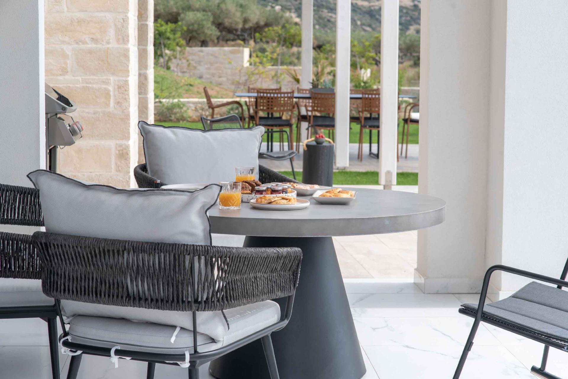 The spacious outdoor area offers panoramic sea views to the early sunrises, offering them beautiful sunsets too. Enjoy the sun and a good book under the sun! Last but not least for lovers of cocktails and drinks you can enjoy one right next to the dining area where you can relax and have some fun moments with your loved ones. Don’t forget that a secure parking area is provided outside the villa.
