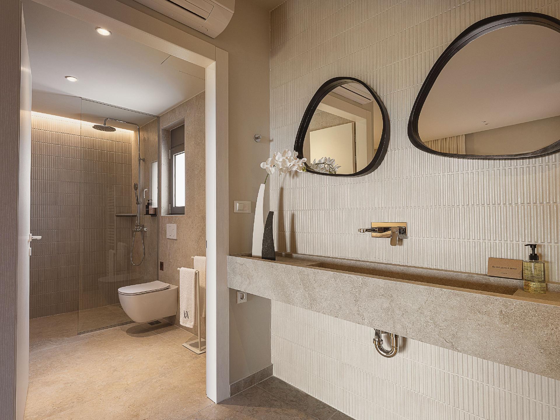 On the upper floor you will find the rest of the four bedrooms with classy surroundings, that make a grand and welcoming atmosphere, all of them have a unique character that underlines the effort. Three of them are equipped with an ensuite bathroom with shower but all of them have individually controlled A/C. Each floor has a communal bathroom suitable for all the guests.
