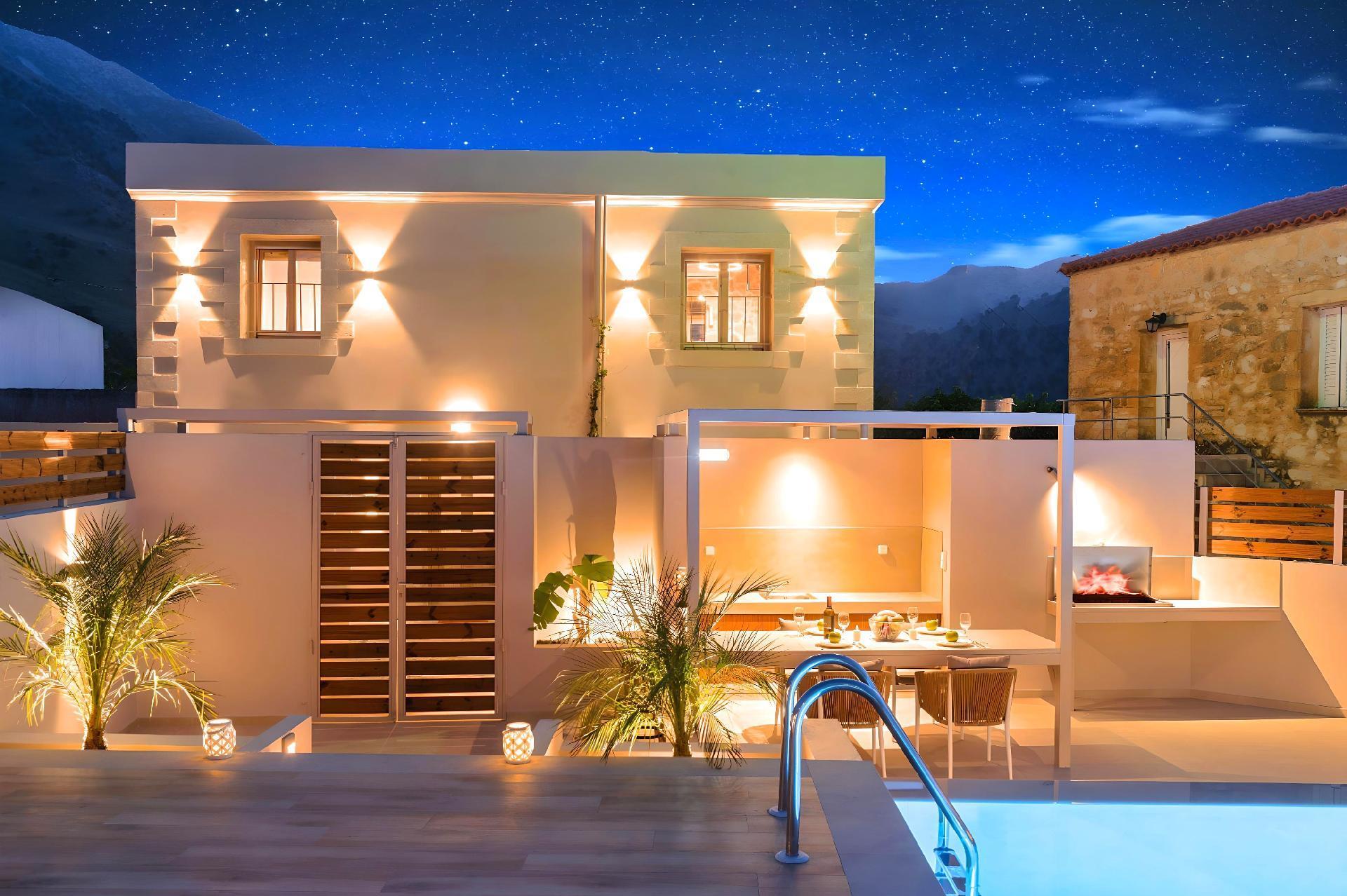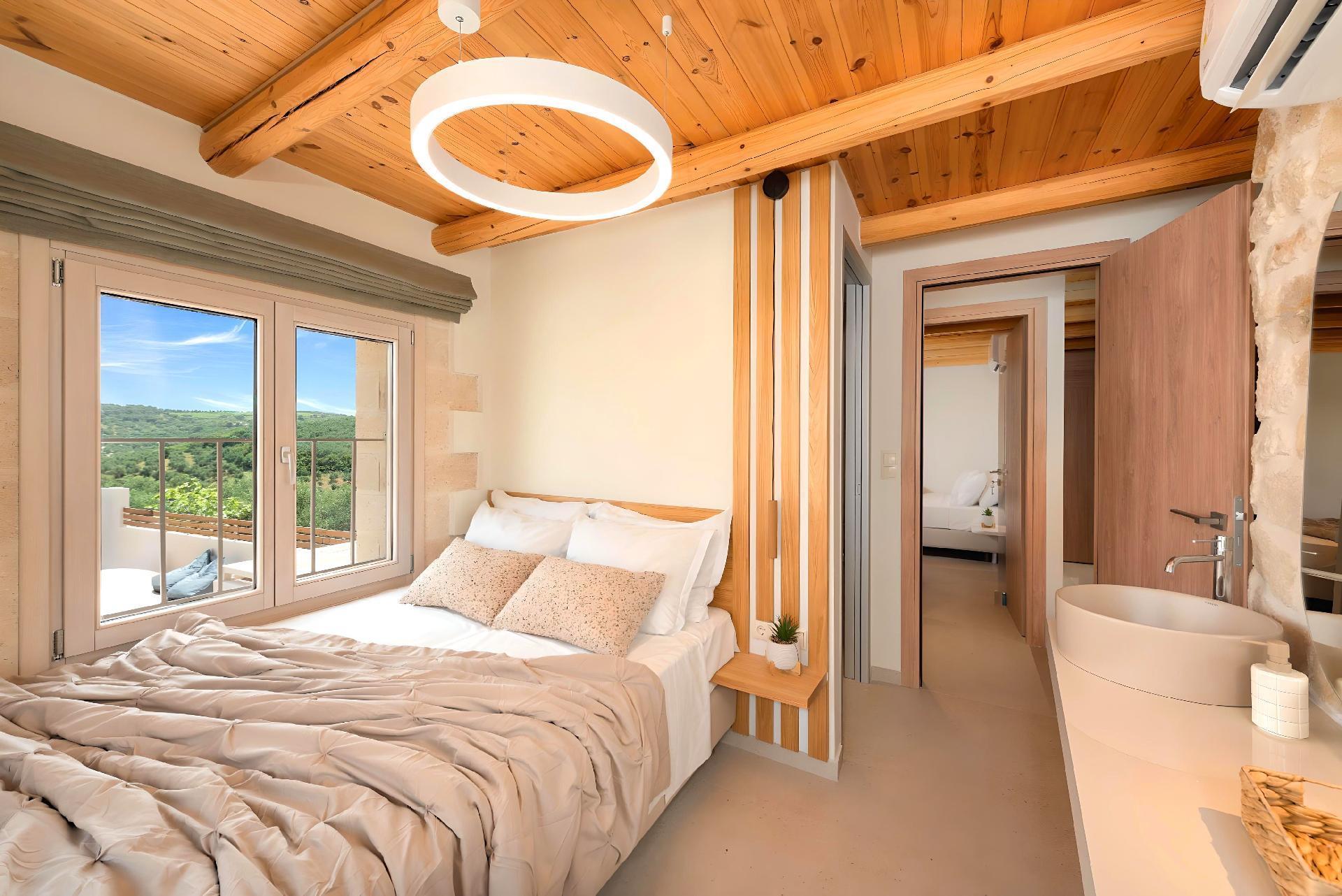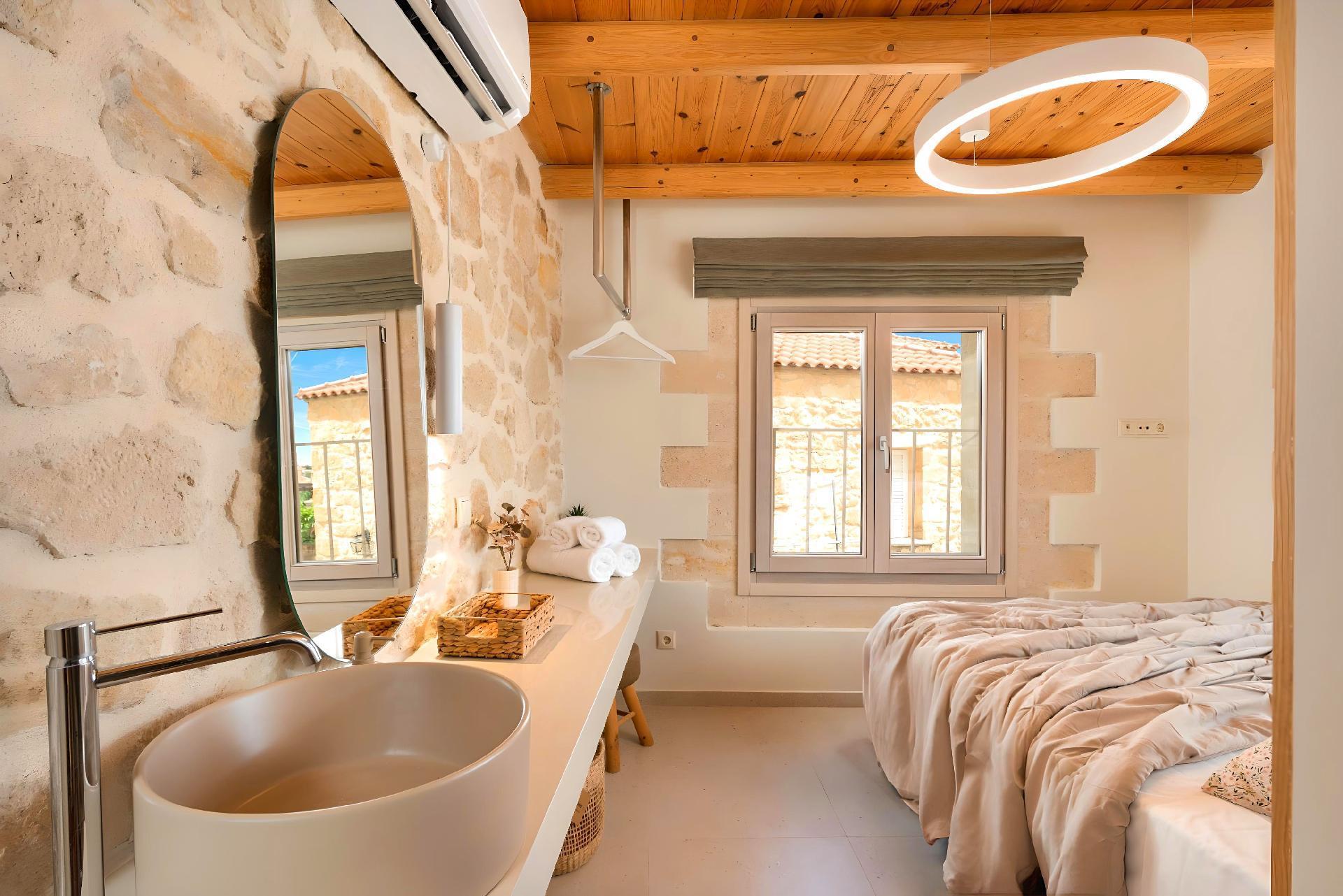 This autonomous two-storey stone house is designed to be your private retreat on Crete Island. The villa spans two floors, connected by an interior staircase.