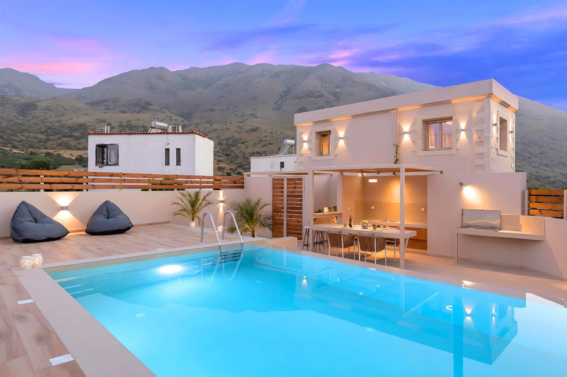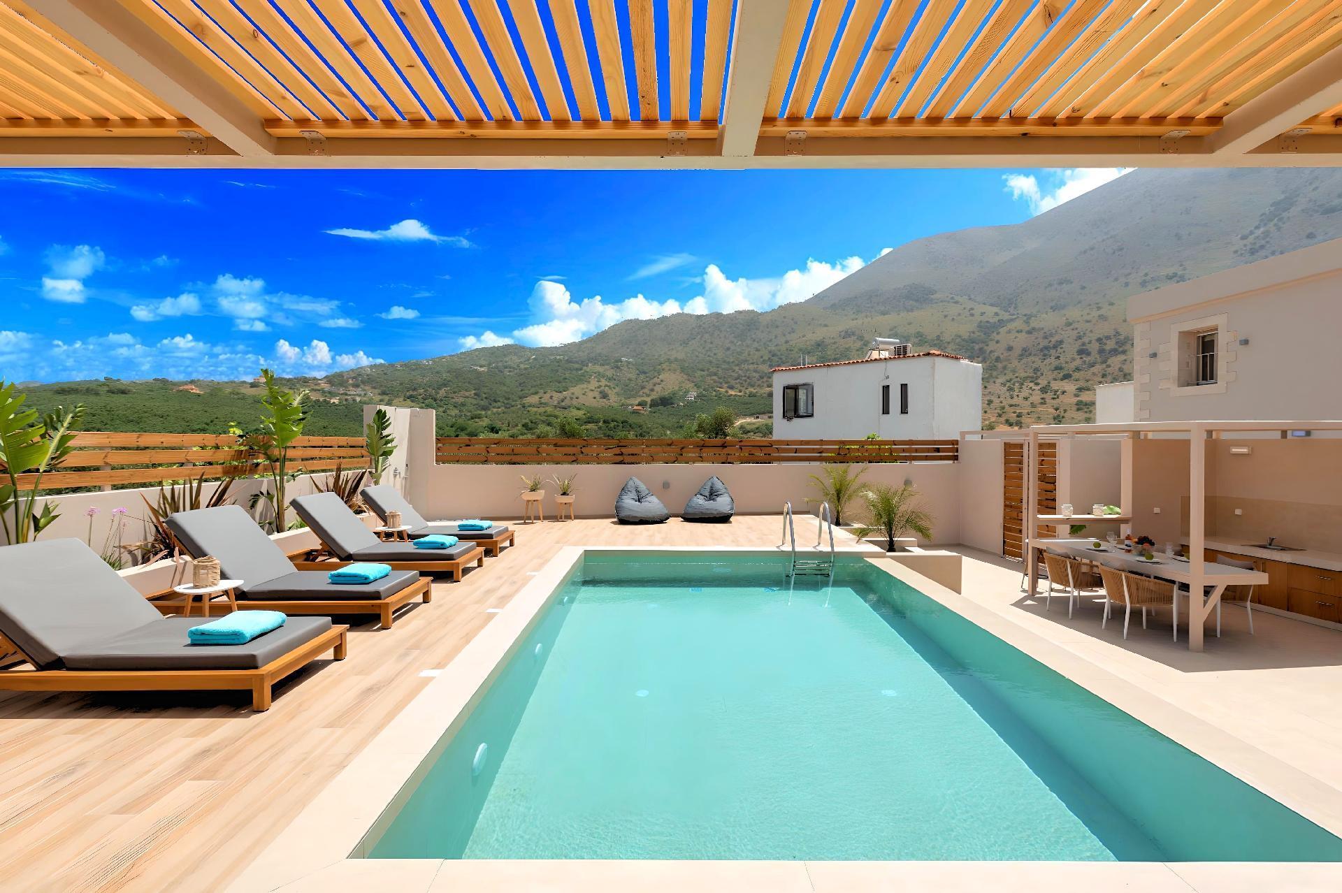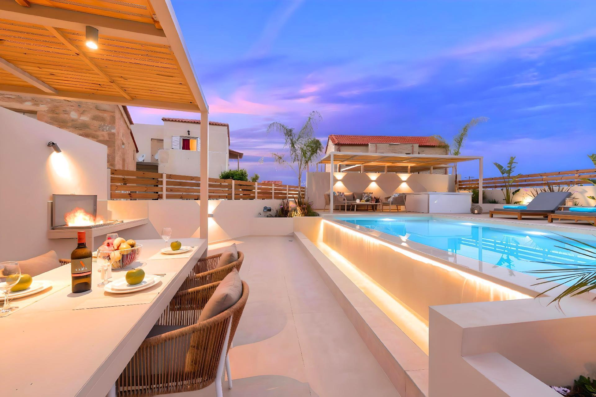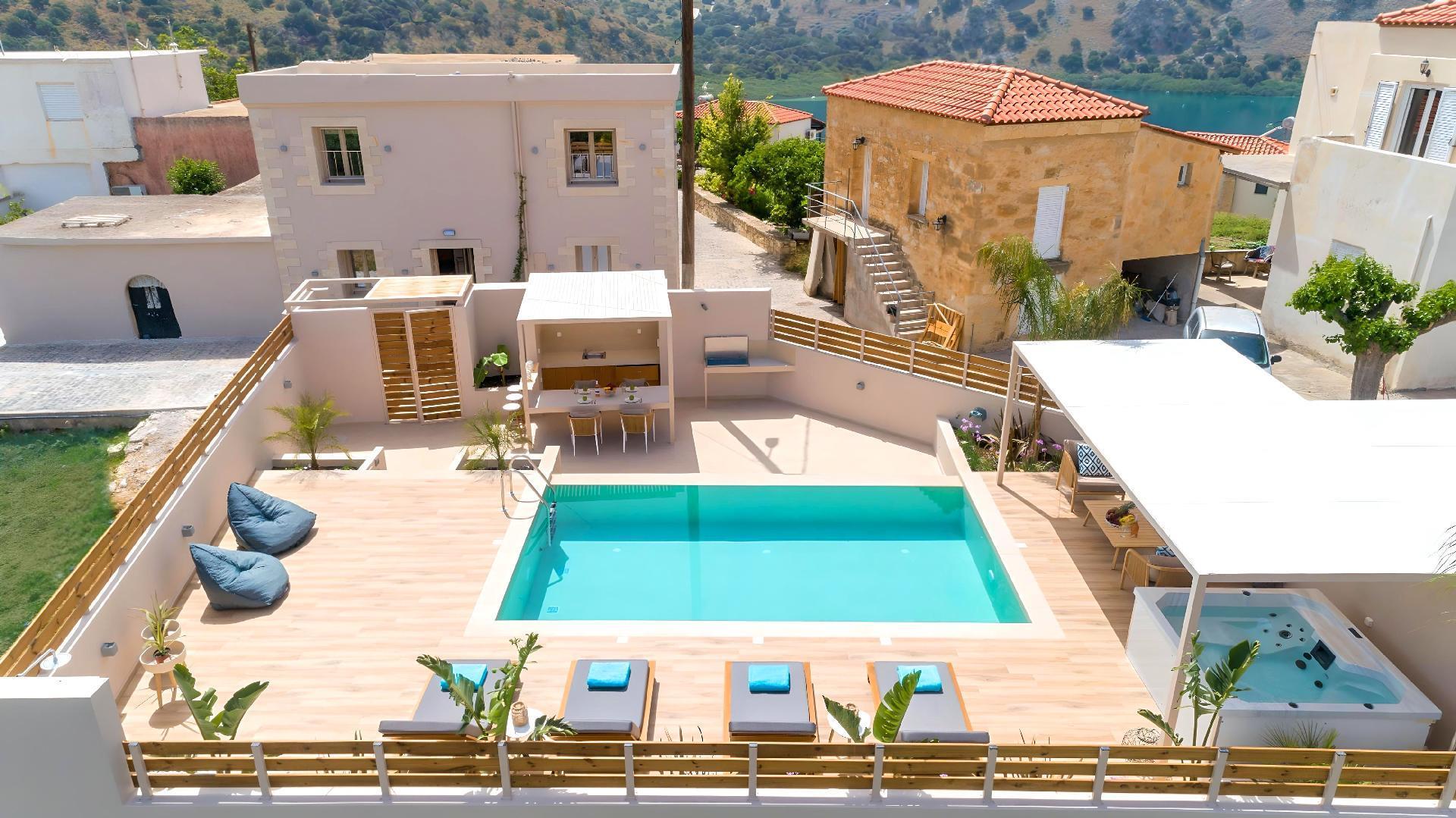 This autonomous two-storey stone house is designed to be your private retreat on Crete Island. The villa spans two floors, connected by an interior staircase.