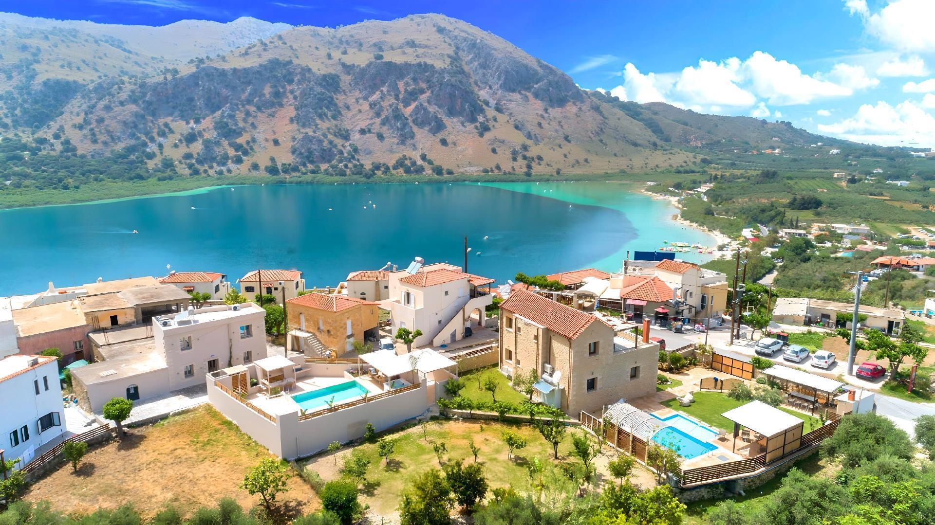 Hidden Gem Villa boasts a privileged location in a unique natural landscape with an unforgettable panoramic view of the serene Cretan olive groves. Additionally, it is just a minute's drive from Kournas Lake, the only natural lake on Crete Island. This precious setting is just a 5-minute drive from almost everything you might need.
