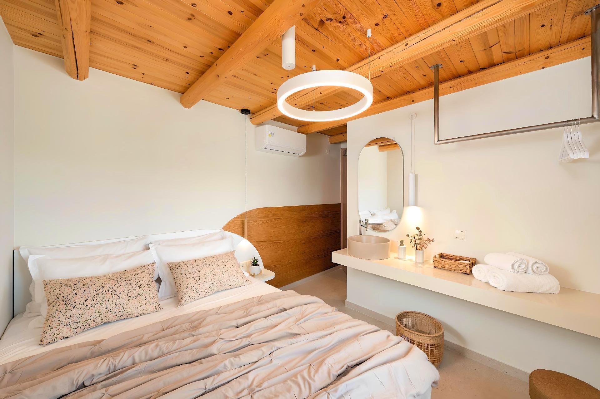 Wood dominates the ceilings, and the lighting creates an idyllic atmosphere. The large beds offer a comfortable sleeping experience, covered with top-quality linens.