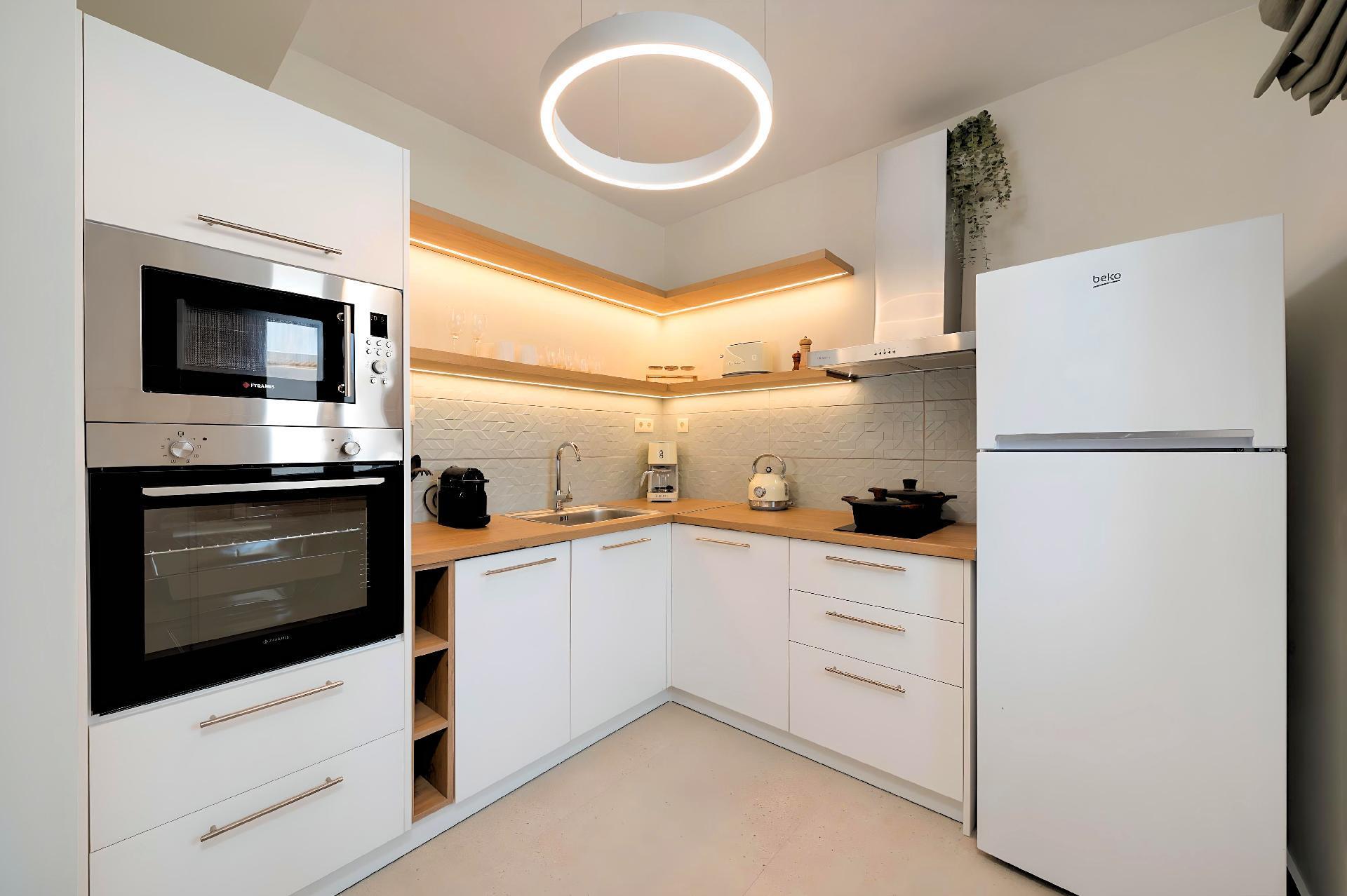 Kitchen: Coffee capsule machine; Dishwasher; Electric stove; Fridge; Microwave; Oven; Toaster; Water boiler