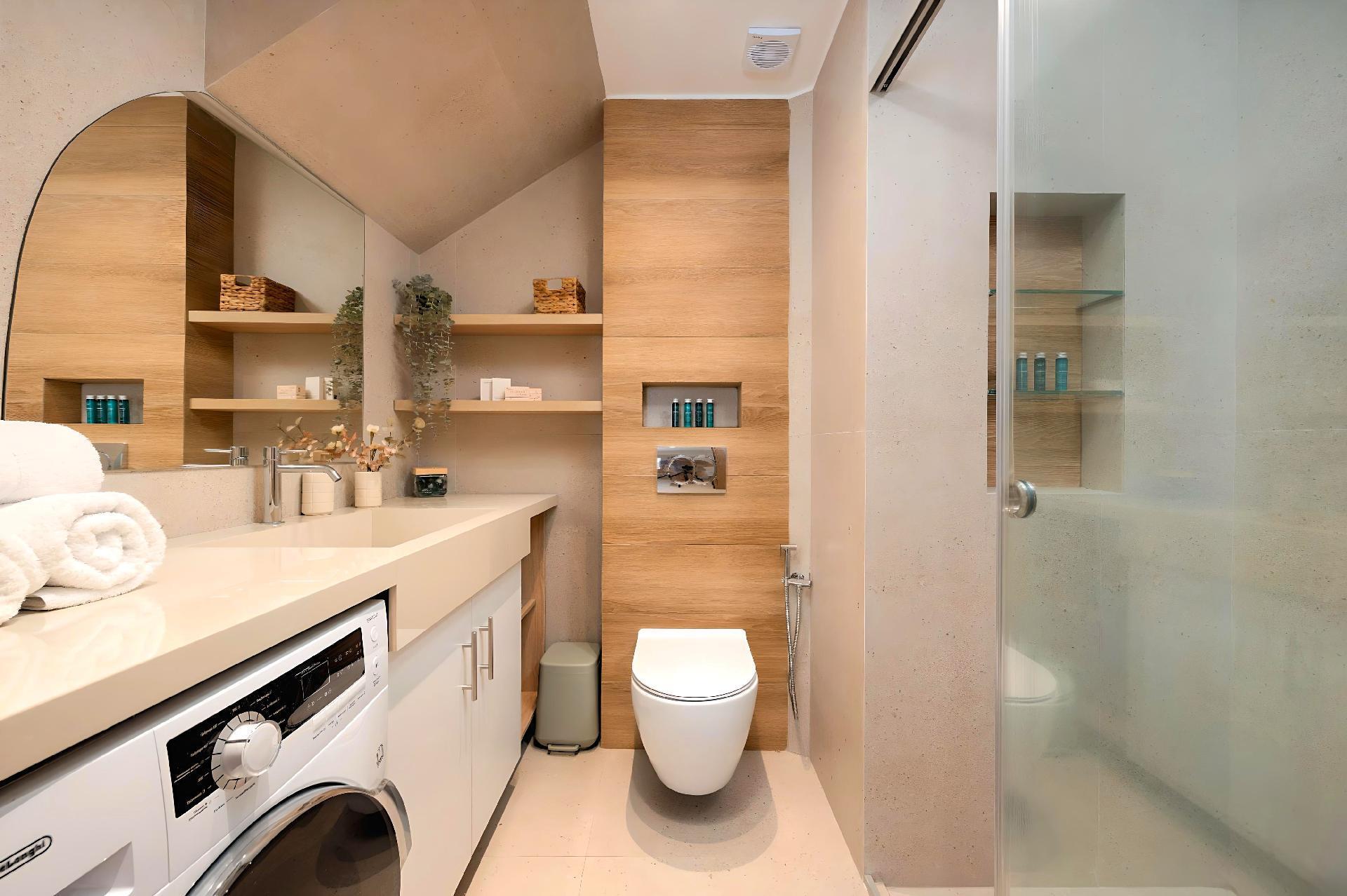 The villa features two bedrooms, each with a comfortable queen-size bed and an en suite bathroom with a rejuvenating shower.