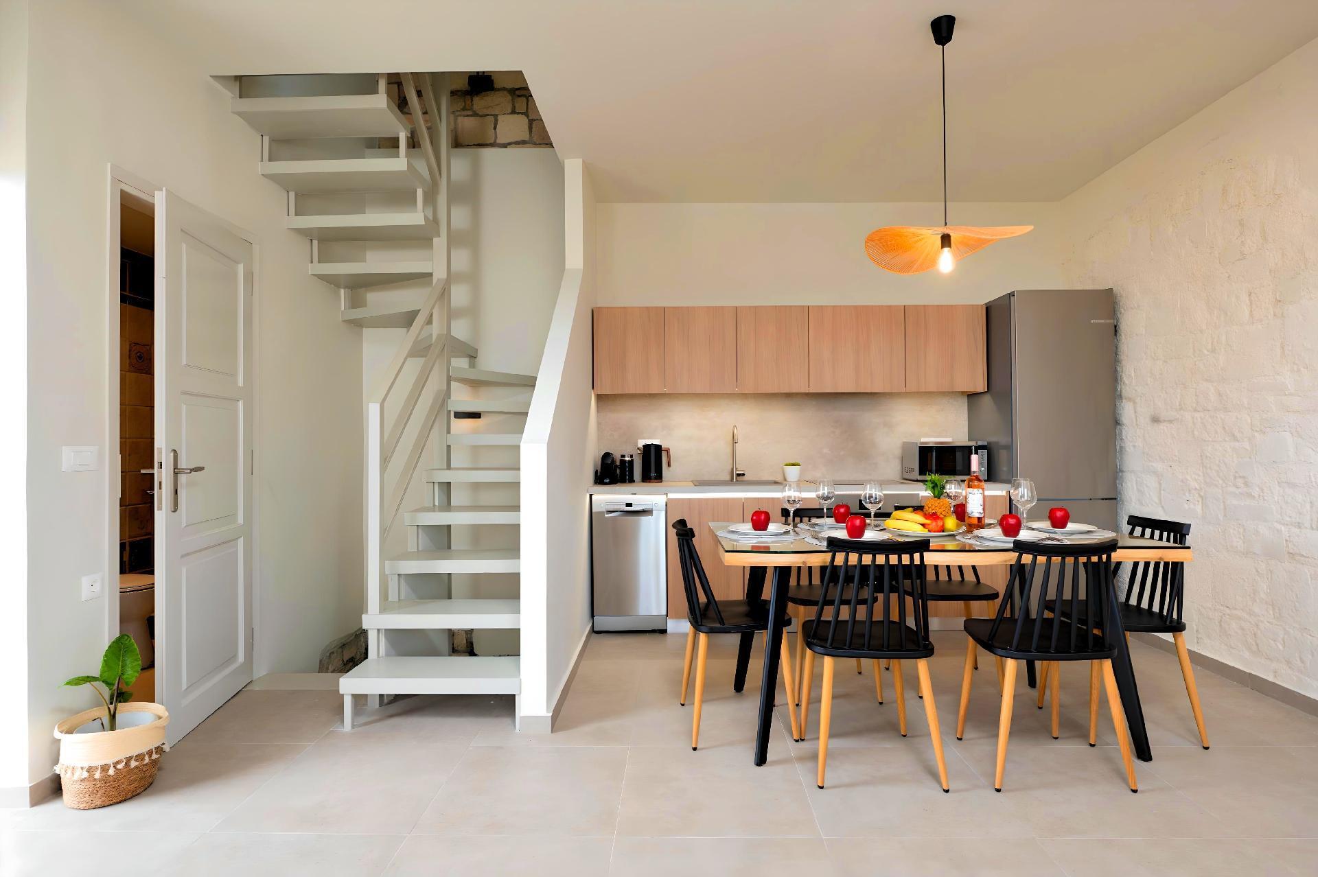 Inside, Soluna Villa lavishes its guests with a thoughtfully designed interior that caters to every need and preference. The house is fully equipped with air conditioning throughout, ensuring a cool and comfortable environment for all. Convenience is provided by the inclusion of a washing machine and a clothes dryer for exclusive use within the property, making it easy to take care of laundry needs during your stay. The kitchen is well-appointed with modern appliances, including an espresso coffee pot, a dishwasher, and an electric kettle—perfect for self-catering and indulgent home-cooked meals.