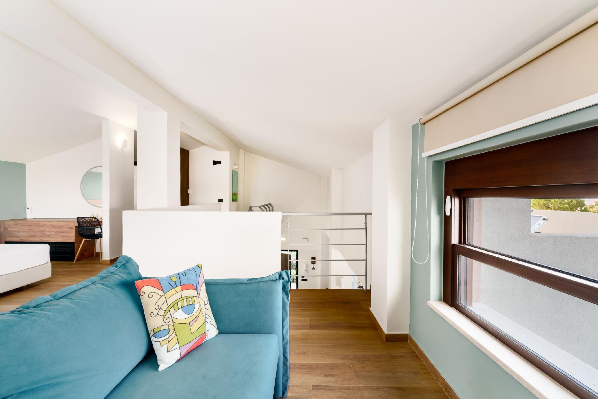 The villa also features a loft area with an open-plan bedroom, where guests can enjoy the flexibility of twin beds and a cozy sofa that can be converted into two additional single beds upon request (for an extra charge). This level includes a bathroom with a bathtub, providing a perfect spot for relaxation after a day of exploration.