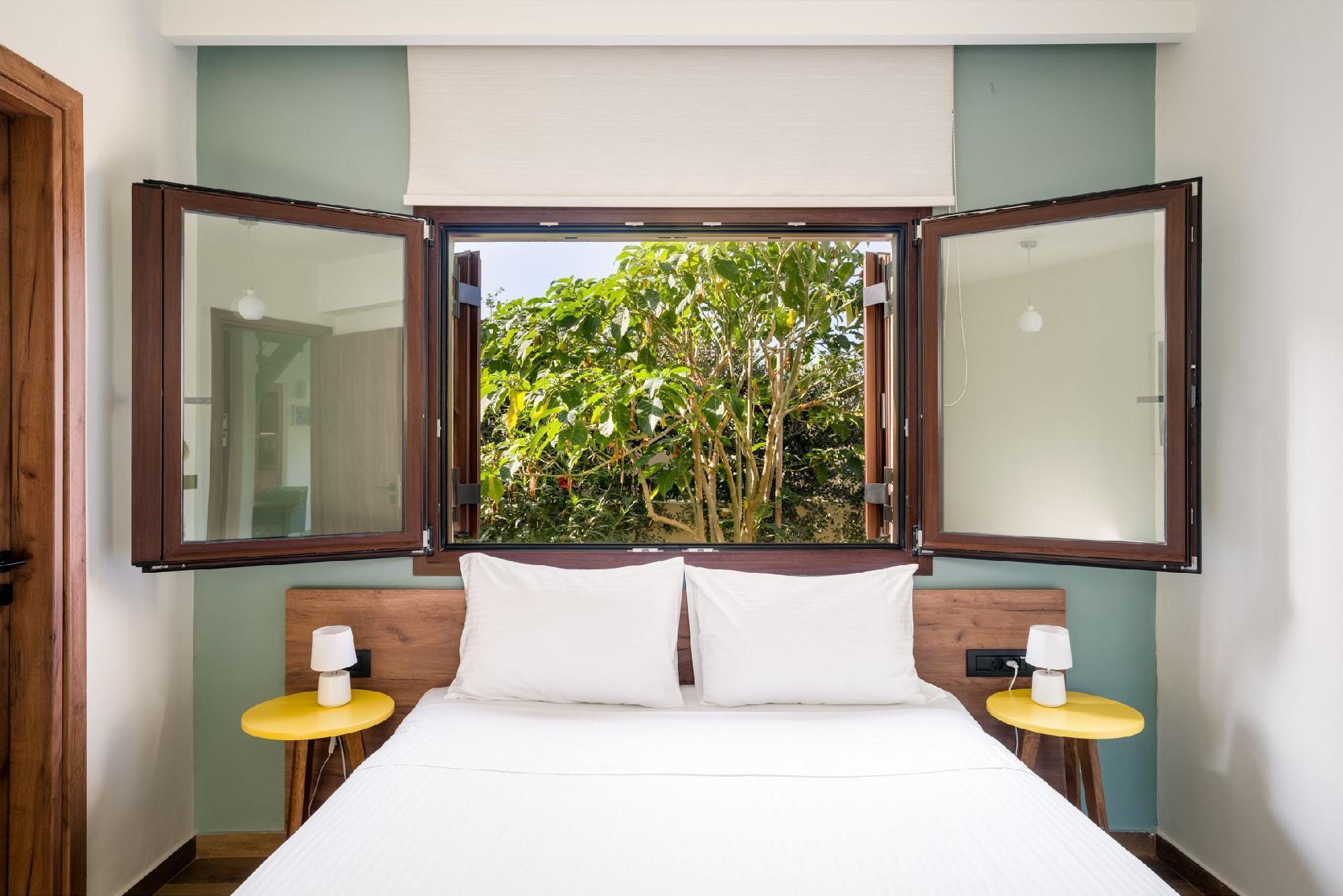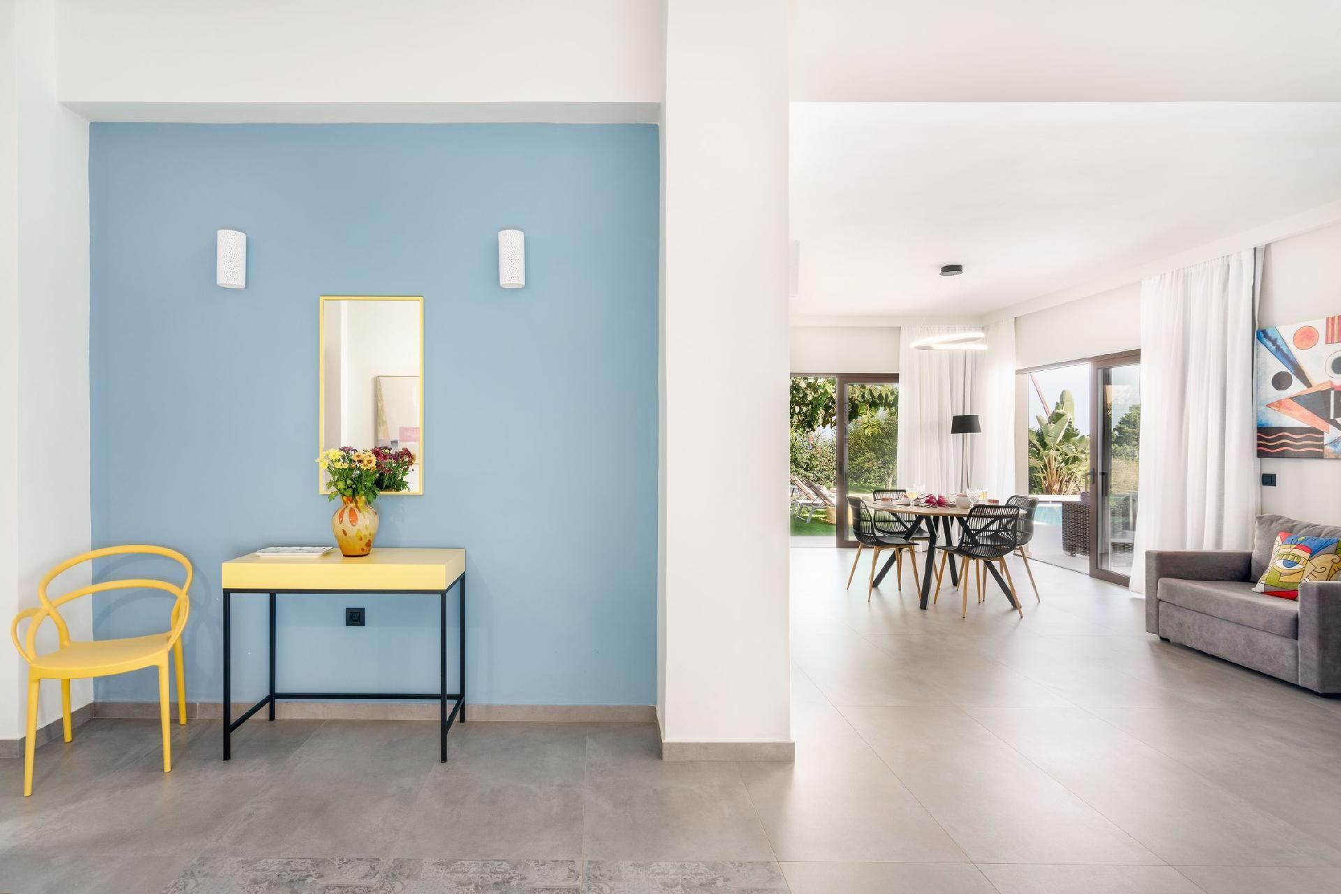 Villa Fos is part of the Olympia Villas Complex, which includes three villas: Villa Anthos (1 bedroom, 2 guests), Villa Alya (4 bedrooms, 9 guests), and Villa Fos (3 bedrooms, 8 guests). For larger groups, multiple villas can be booked together for a seamless stay.