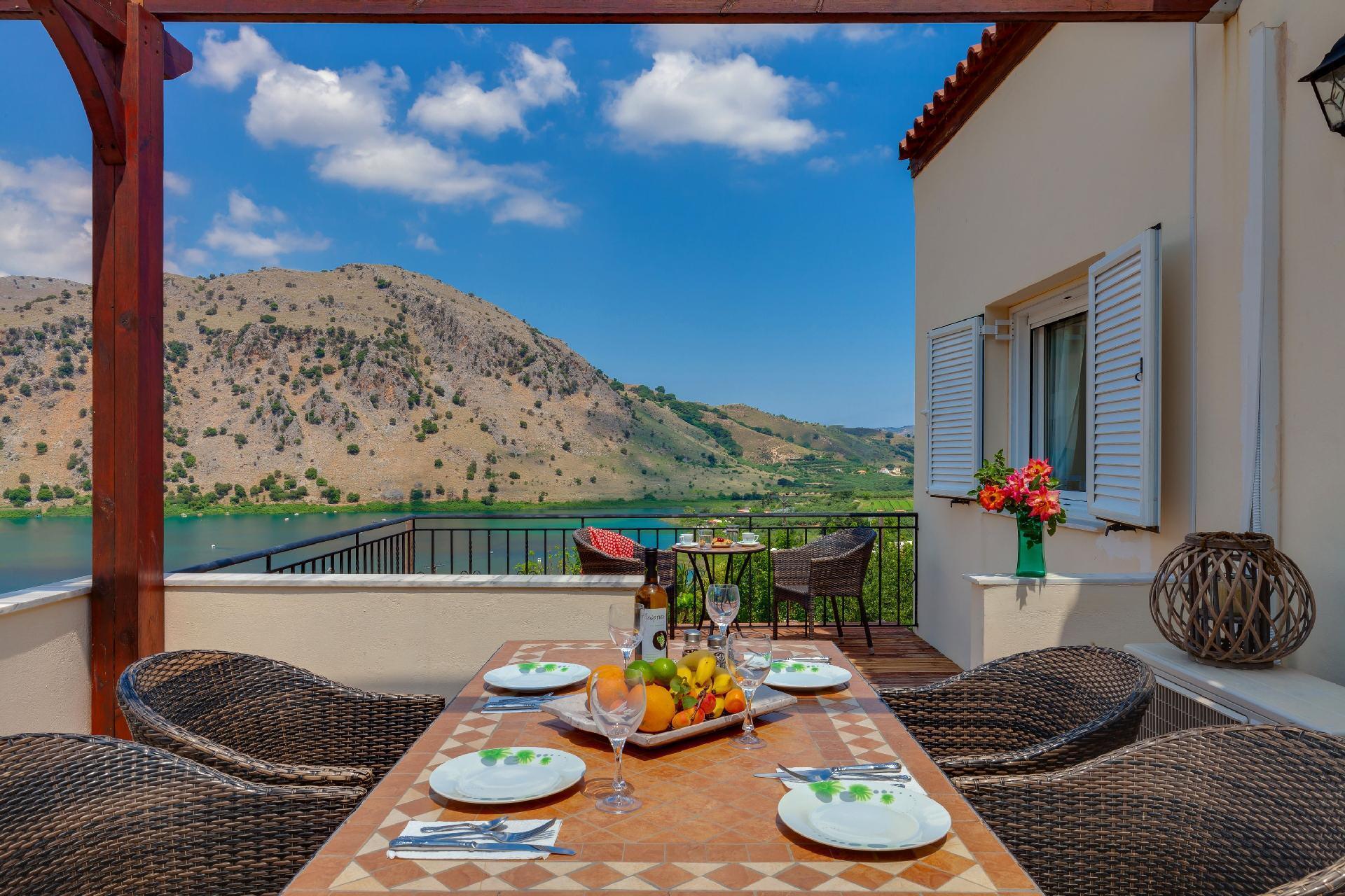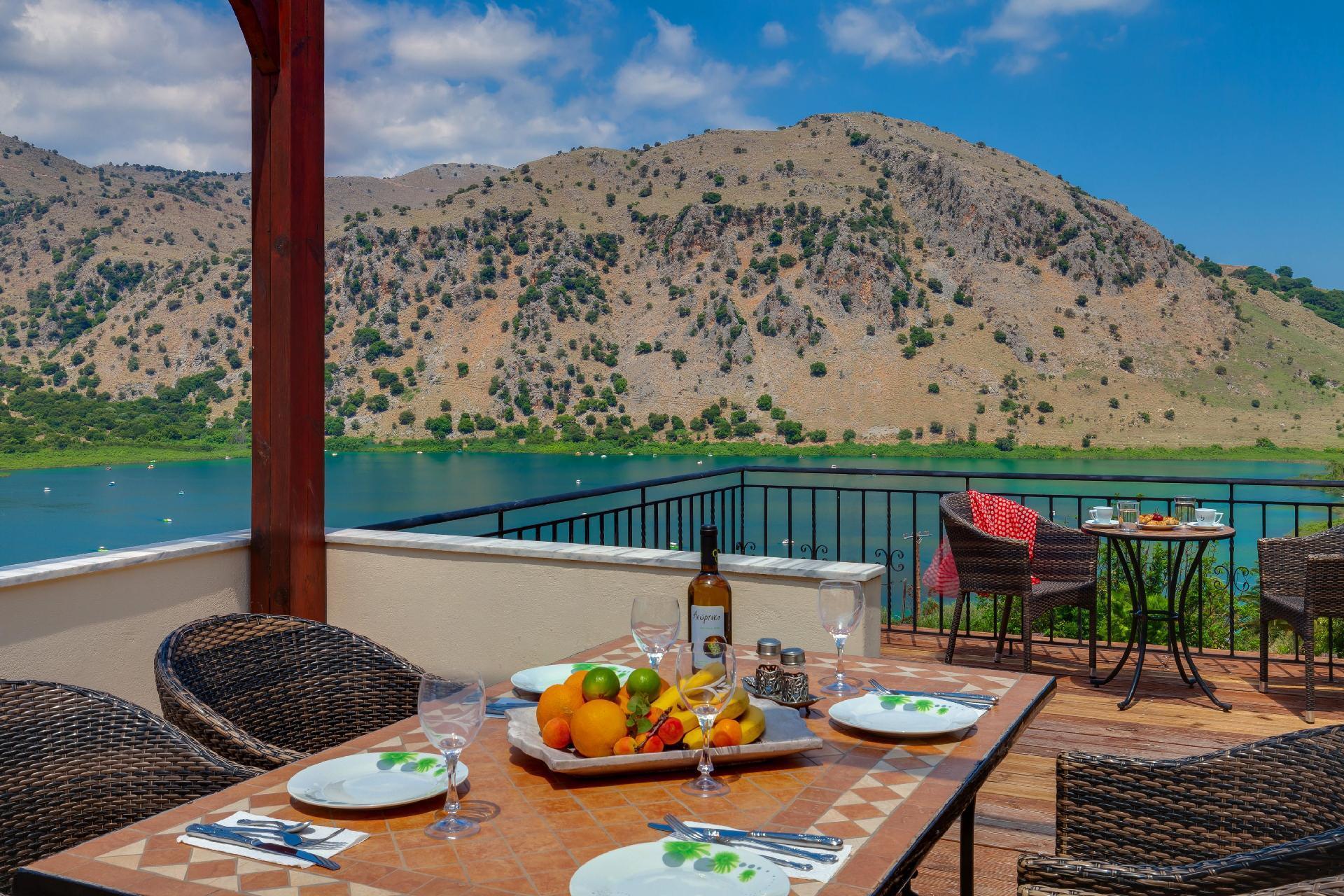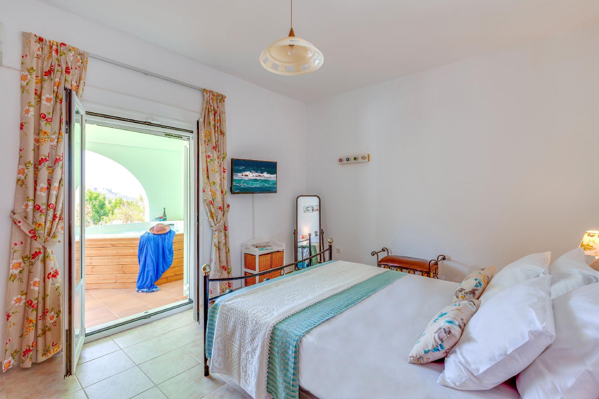 The outdoor area of Villa Kallisti-Artemis is a testament to the natural beauty that encases it, featuring a meticulously landscaped garden adorned with Mediterranean herbs, a mini pool-jacuzzi, and sun loungers & tables for the utmost relaxation. The garden’s arches and the covered veranda offer magnificent views of the lake and sea—all designed to immerse guests in an environment of serenity and natural splendor.