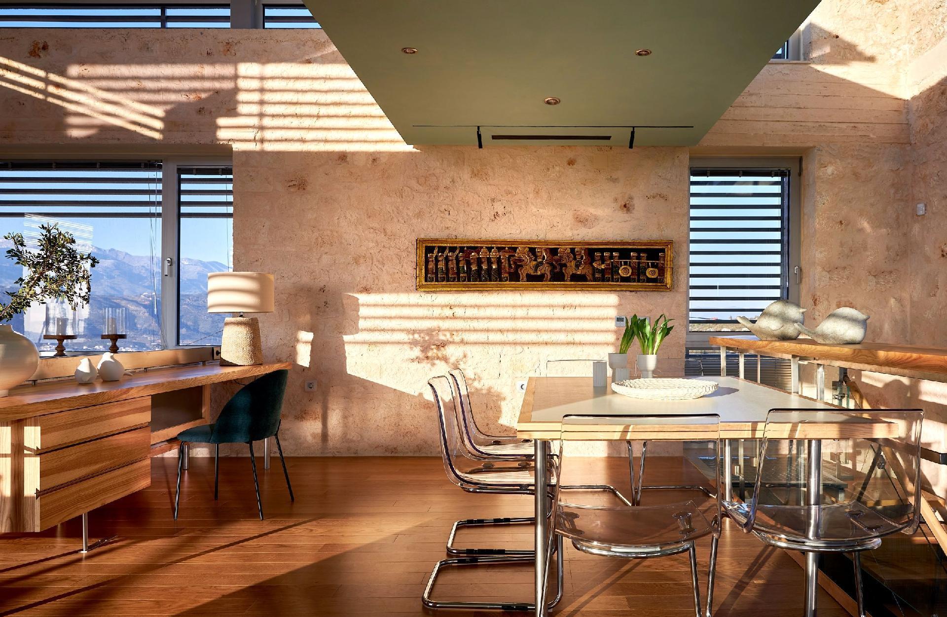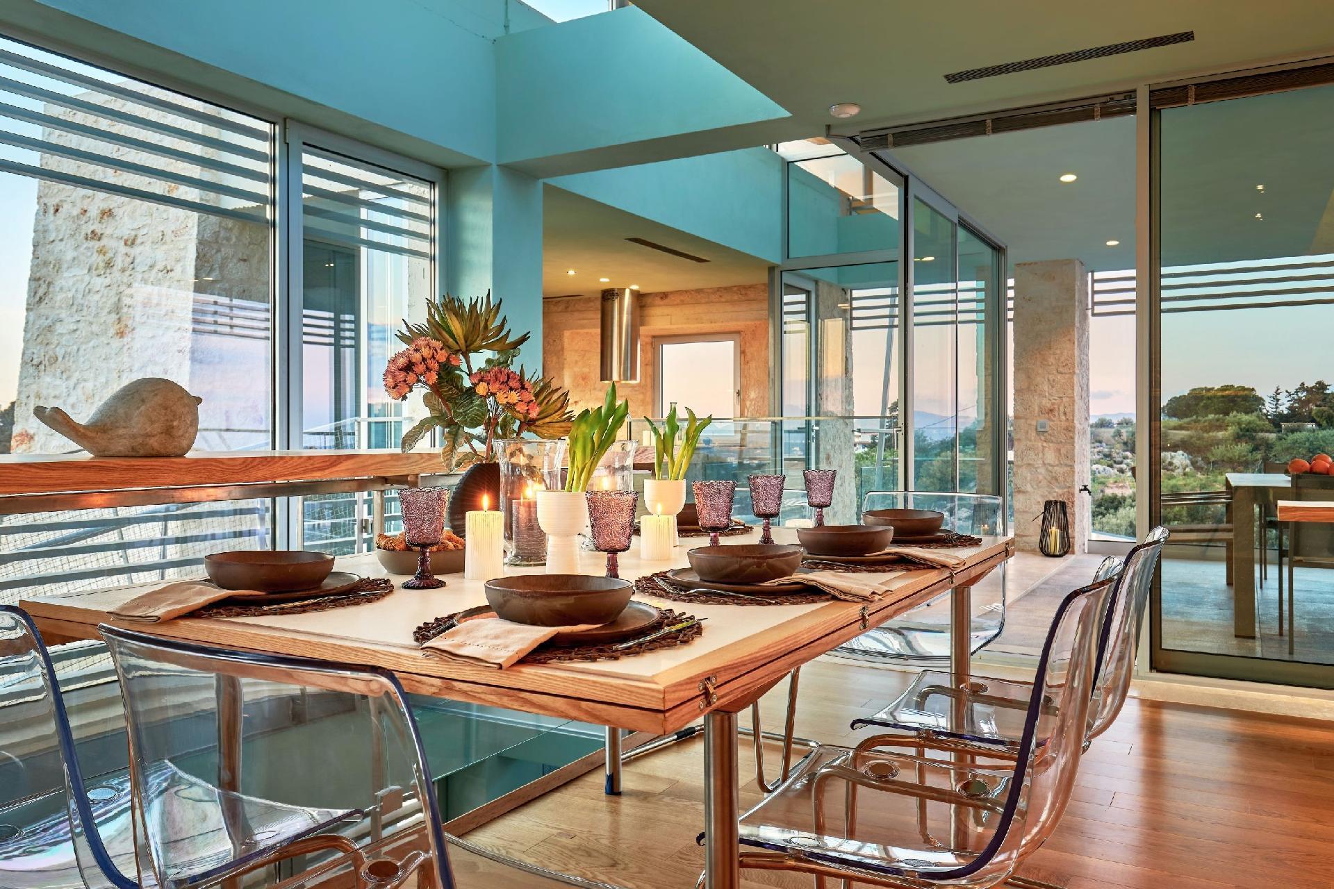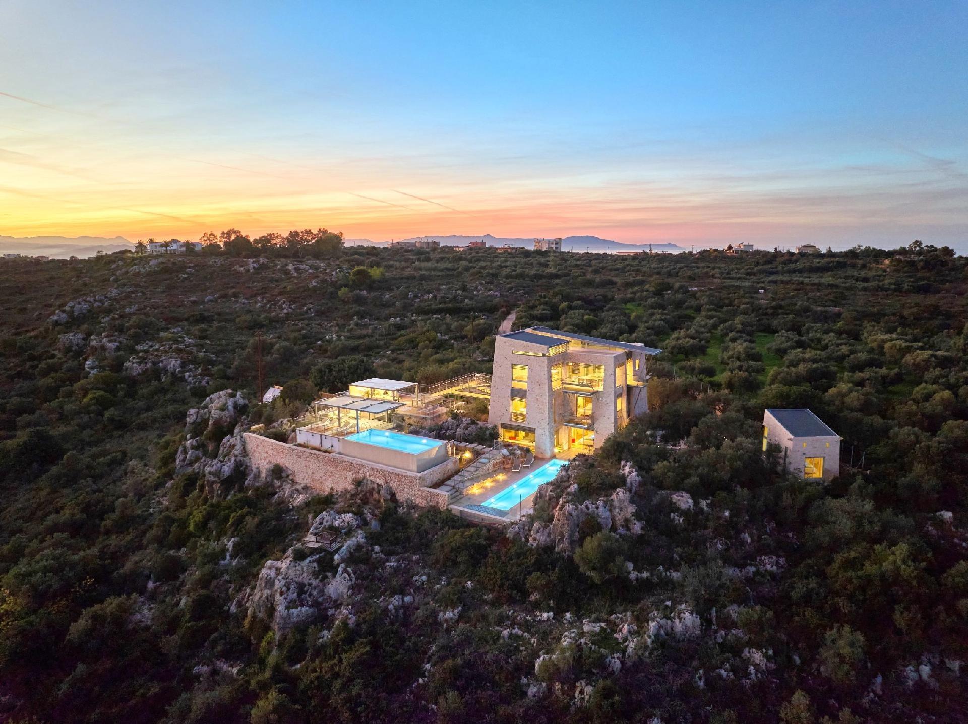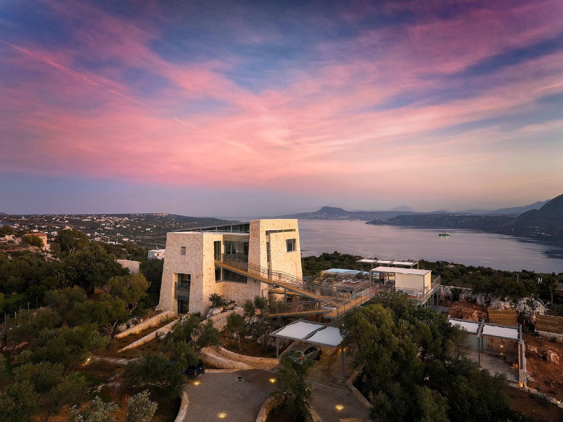 Escape to Olives and Thyme Retreat, a unique luxury villa estate set in an olive grove, with breathtaking views of Souda Bay. Designed with a blend of modern luxury and Mediterranean charm, this exclusive estate accommodates up to 12 guests, and it is perfect for large families, friends, or group retreats.