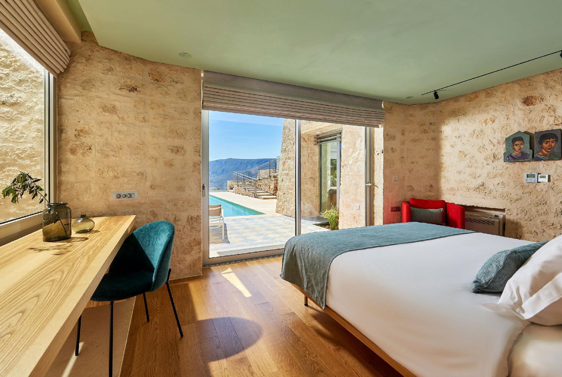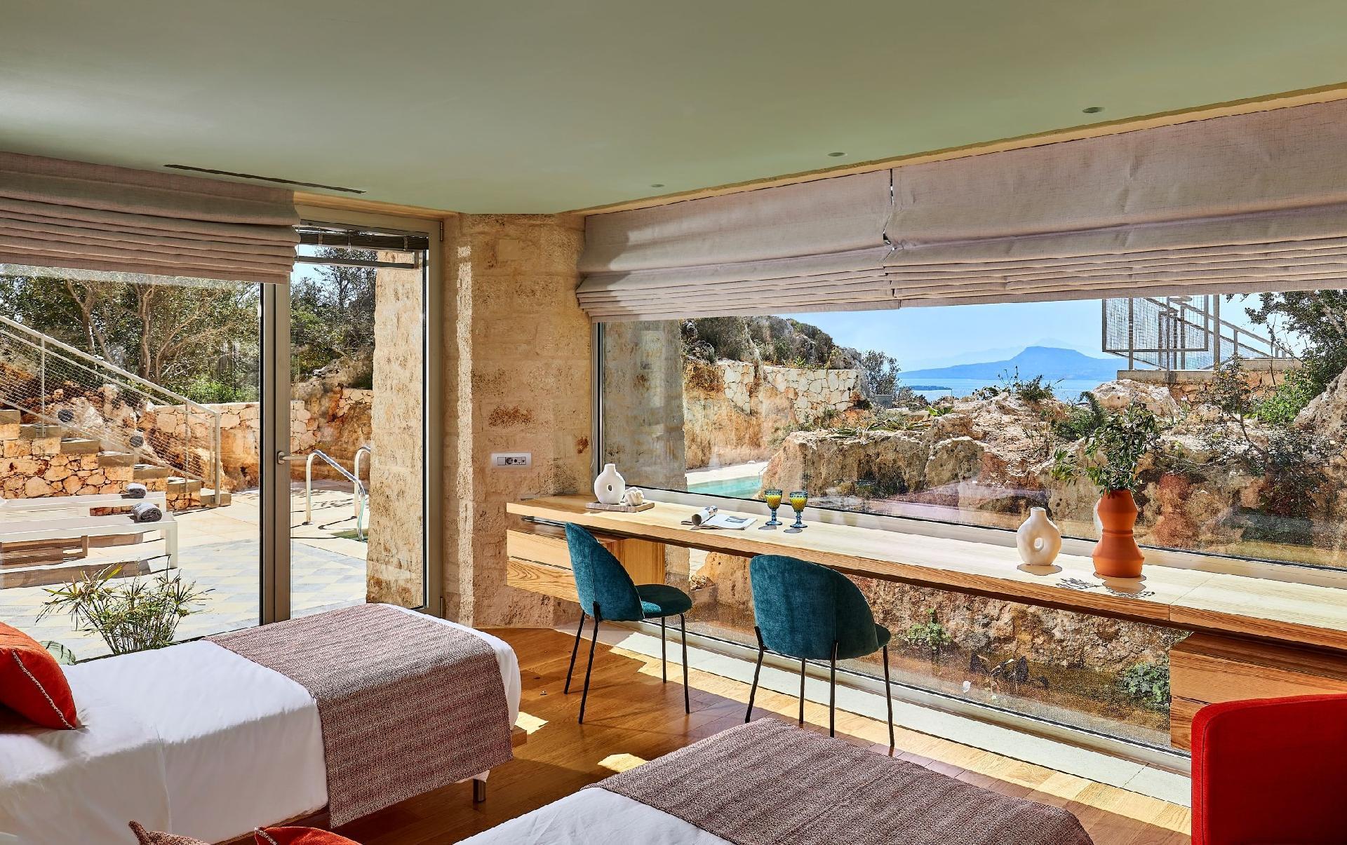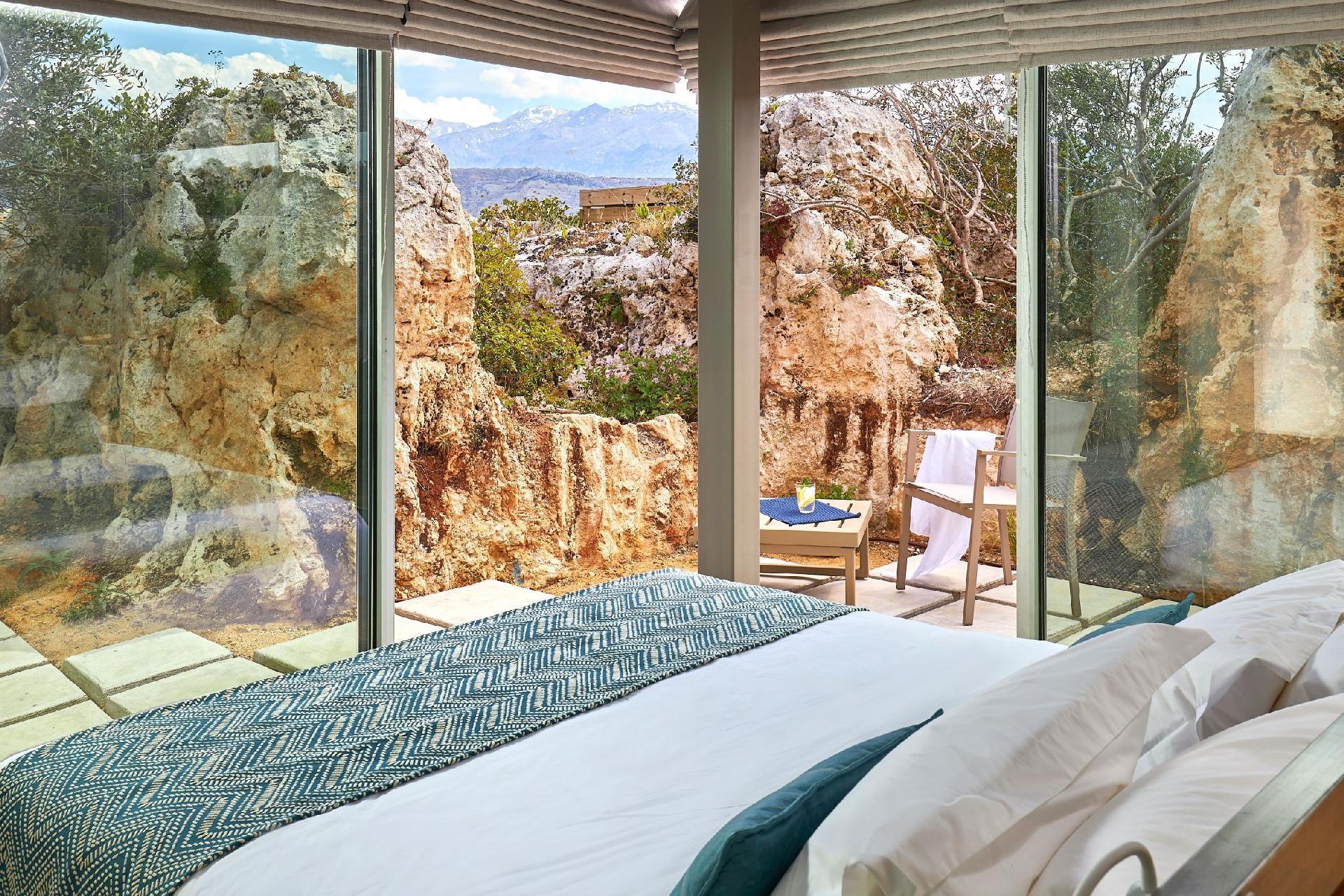 The Rock Apartment – A double bed apartment with a kitchen and living room. Carved into natural rock, featuring glass walls and total tranquillity.