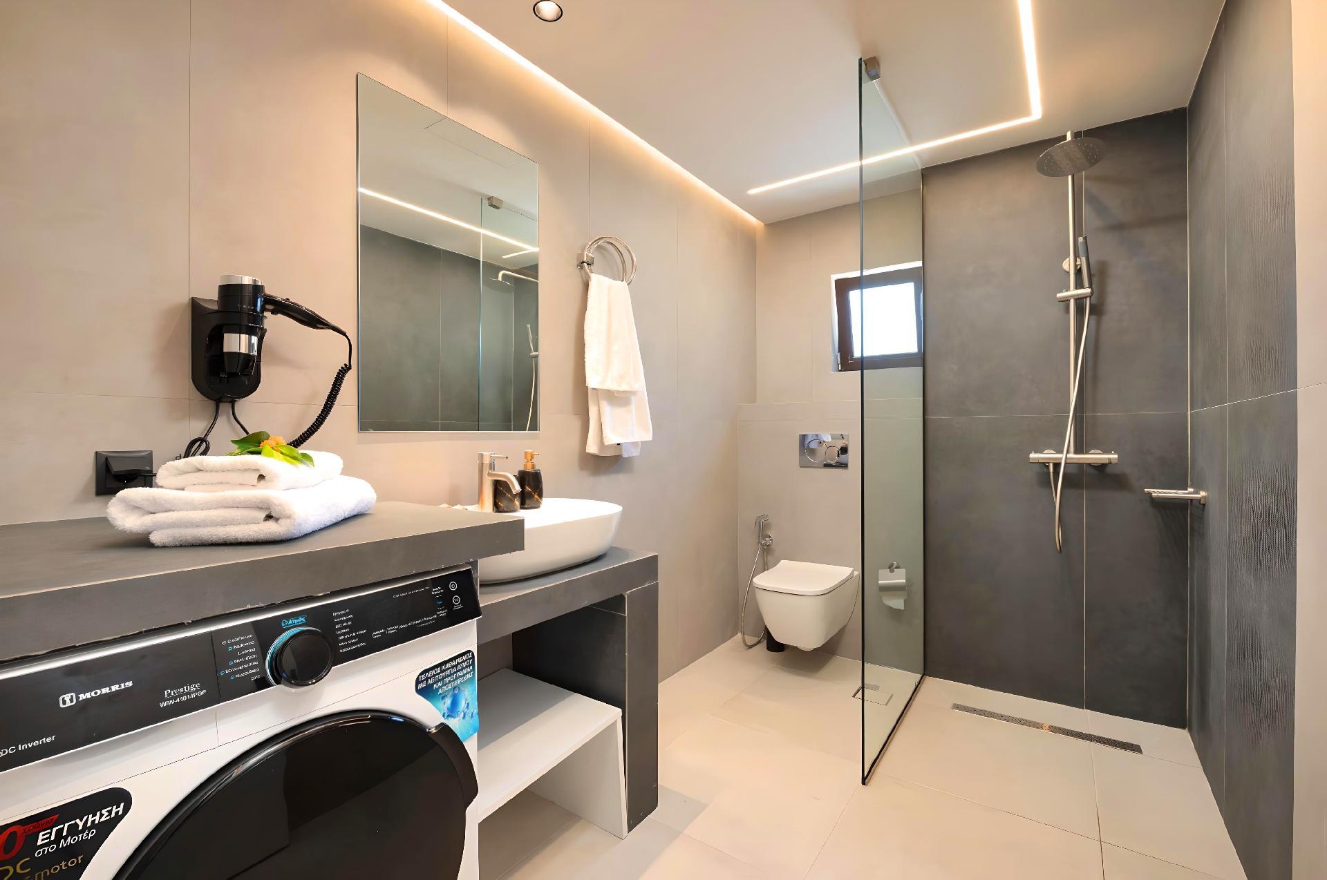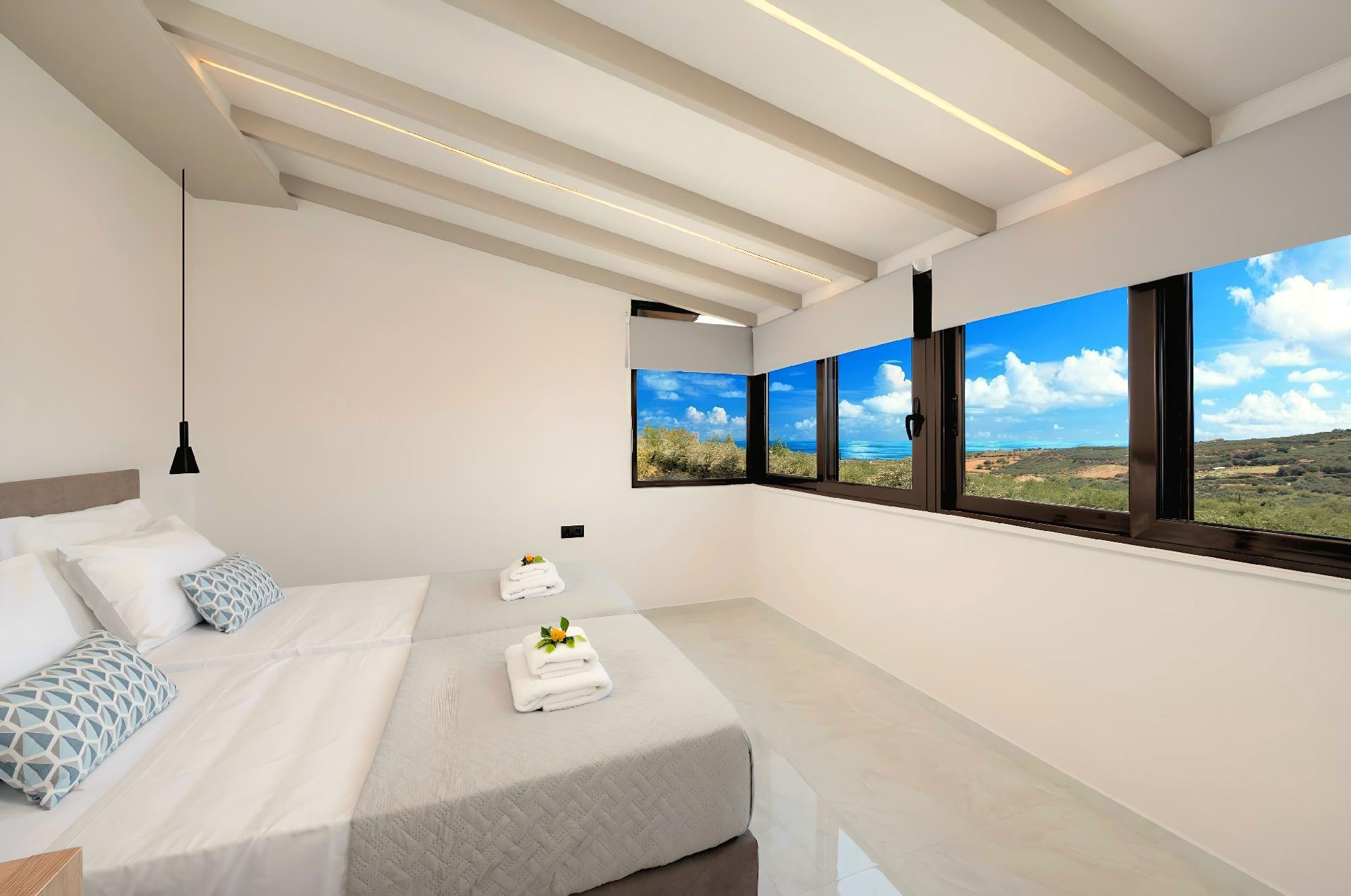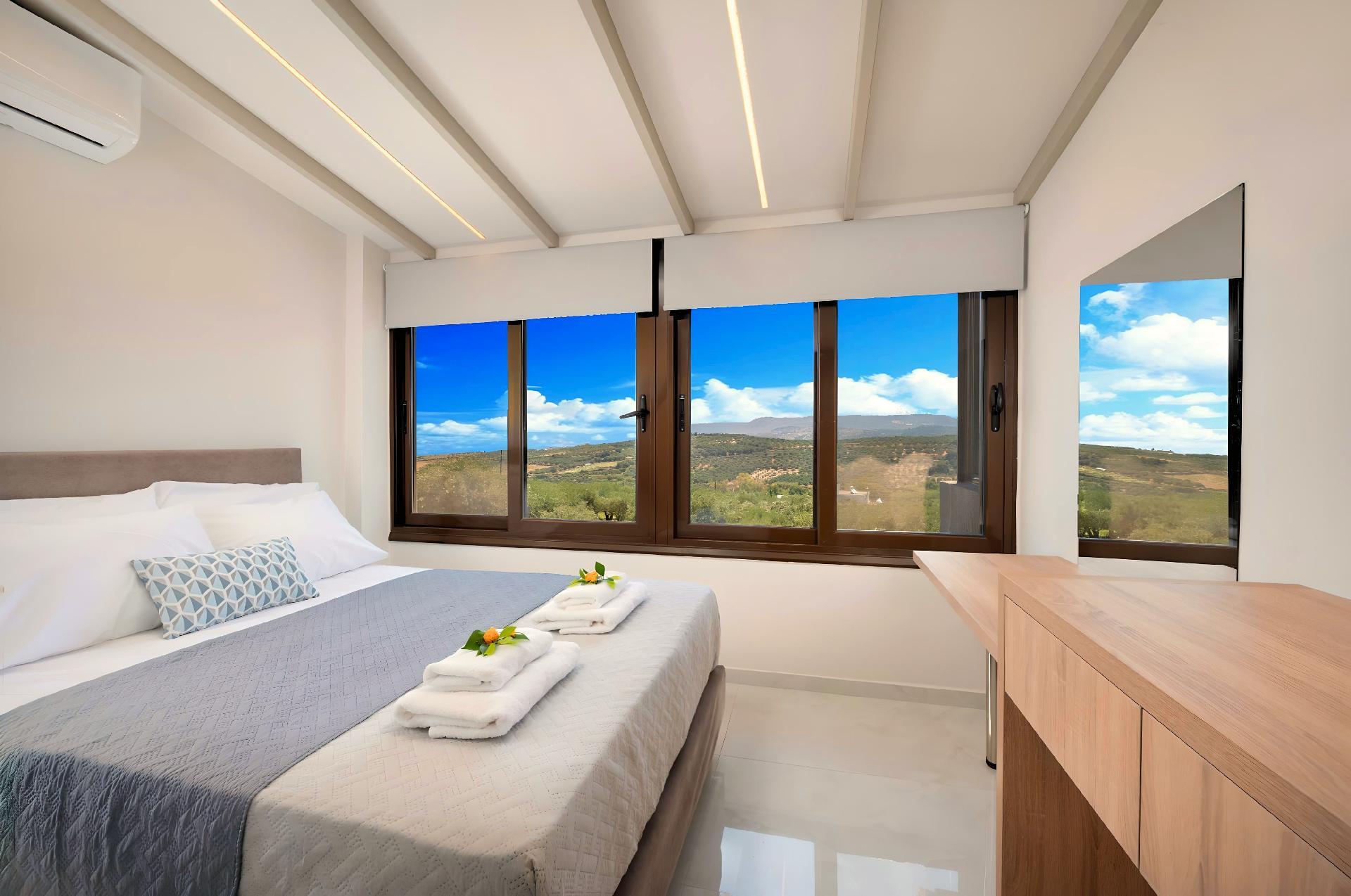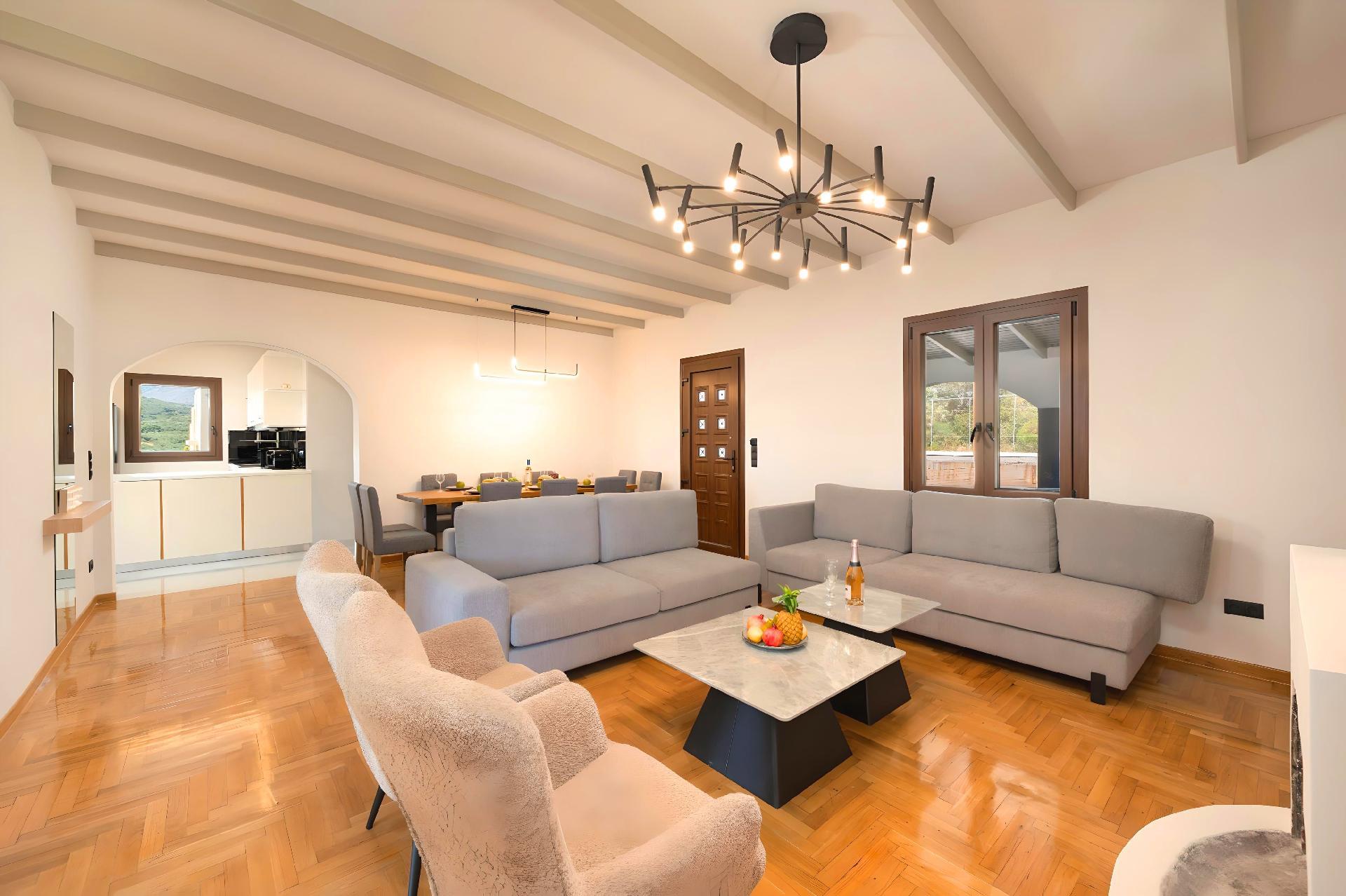 Inside, the holiday house is equipped with essential comforts to ensure a pleasant stay. It features five spacious bedrooms, tailored to provide restful nights for every guest. The house encompasses two well-appointed bathrooms, each with a shower, catering to the needs of a large group with ease. Revel in the convenience of a fully equipped kitchen, including a dishwasher, a coffee machine for capsules/pods, and an electric kettle. The living area, adorned with a smart TV, offers a cozy spot for entertainment or relaxation, complemented by air conditioning available throughout the house to keep you cool during those warm Kretan days.