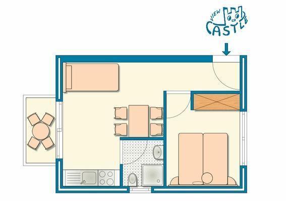 The Castle View Apartments, located just a stone's throw from the beach in the second row, offer a view of the Feraklos castle ruins and are, as we are repeatedly told, Haraki's modern central accommodation and therefore ideally suited for anyone who loves peace and relaxation, but also doesn't want to miss out on the proximity to local tavernas and bars. The Castle View Apartments are air-conditioned, have mosquito-proof windows and their separate bedrooms make them some of the most spacious accommodation in compact Haraki.