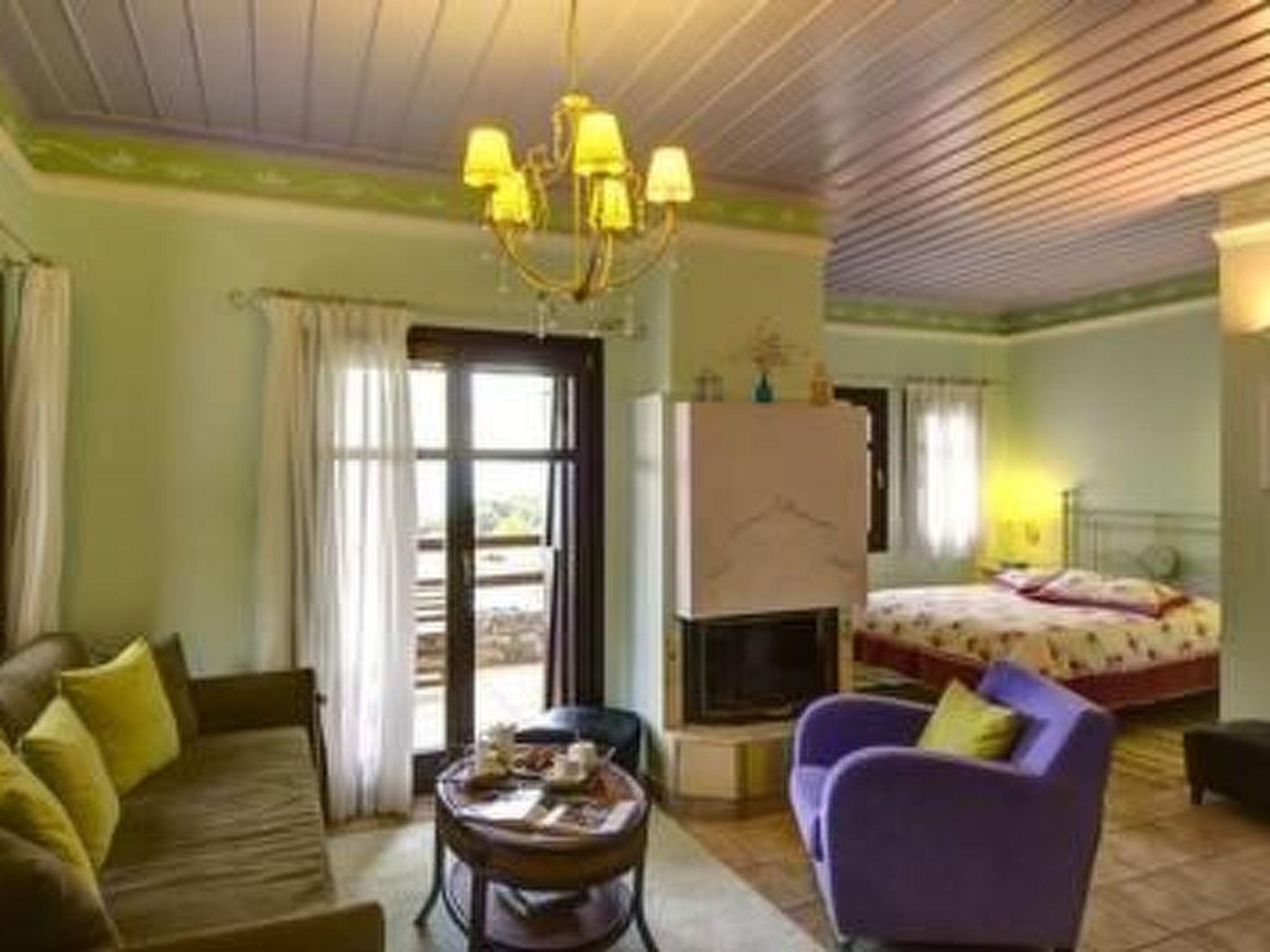 - Living area with fireplace and seating set