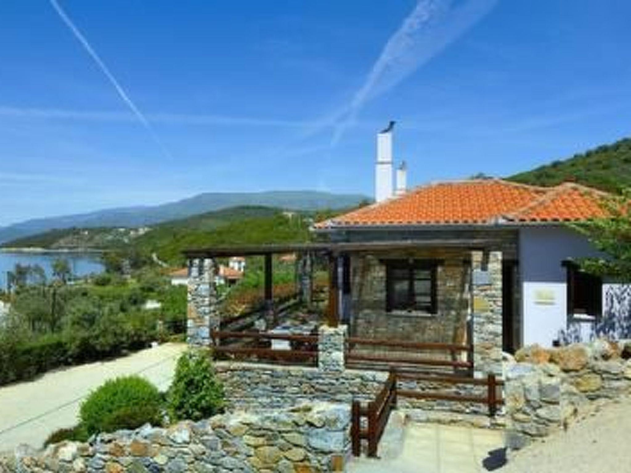 It is situated on a slope and you have a very beautiful panoramic sea view from everywhere.