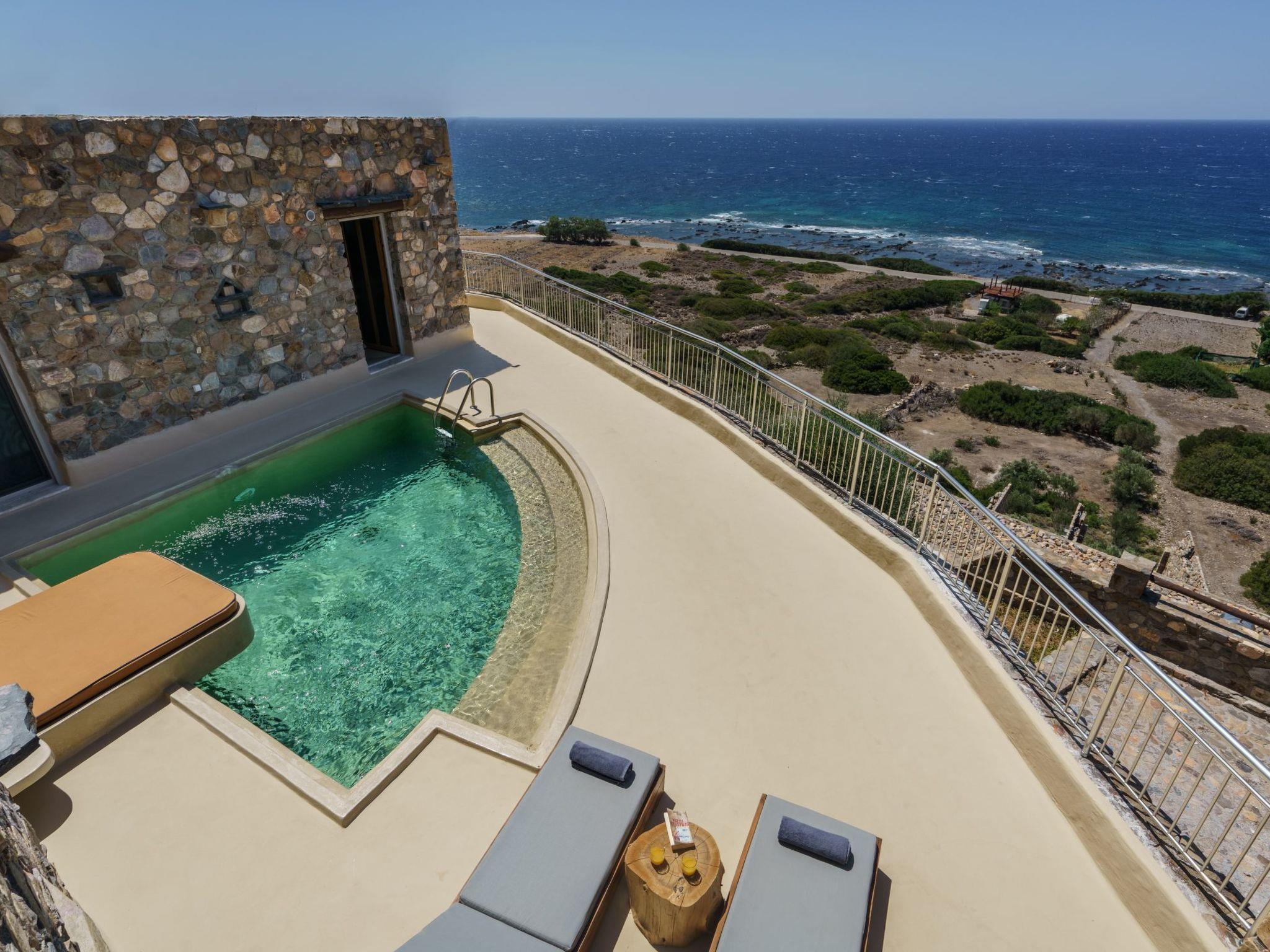 Stepping outside where a 4x2,5m pool (with a kids’ pool section) awaits, you’ll be invited to bask in the Mediterranean sunshine and enjoy refreshing dips at your leisure. With panoramic views of the sea stretching out before you, the outdoor space of our villa is the perfect spot to unwind and savor the beauty of the surroundings. There is also an electric BBQ, an outdoor kitchen and an outdoor shower for your exclusive use.