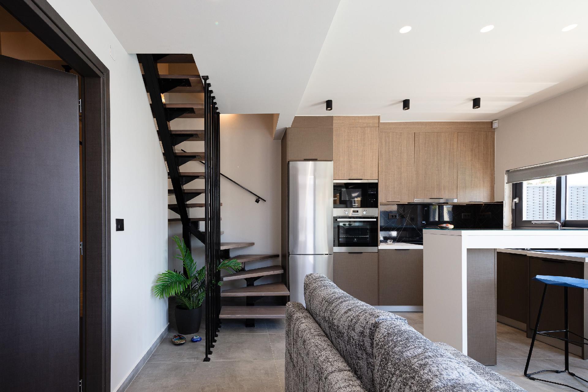 Tucked away in the vibrant heart of Chania’s touristic district, VillAgioi Villa III is a chic and modern two-level villa designed for effortless holiday living. Ideal for families or small groups, this 80 sqm retreat blends contemporary comfort with a resort-style atmosphere—just 450 meters from the beach, cafés, tavernas, and the lush Agii Apostoli municipal park. With its stylish interiors, private pool, and fully equipped outdoor kitchen, VillAgioi Villa III promises a car-free, relaxing holiday experience.