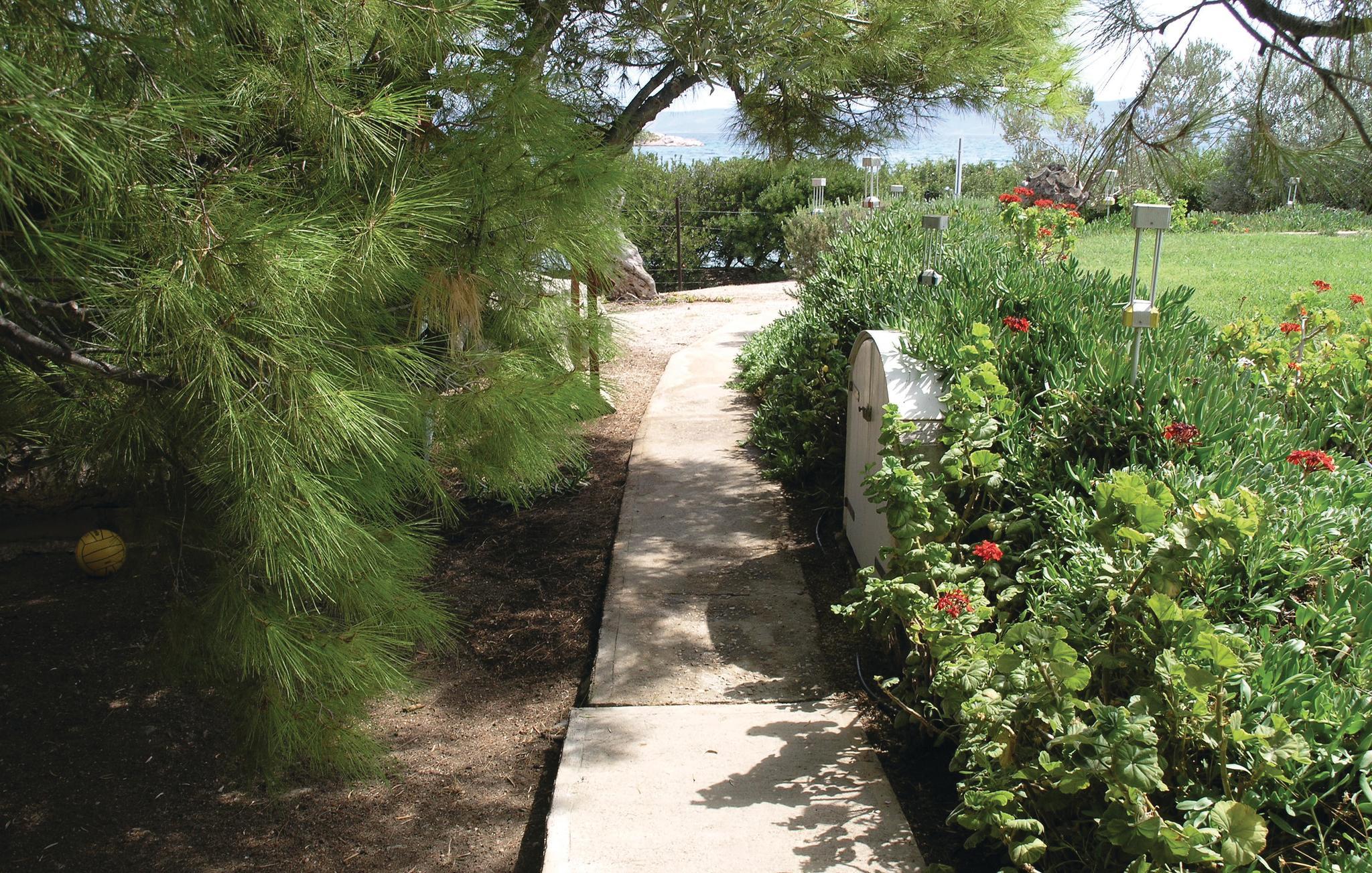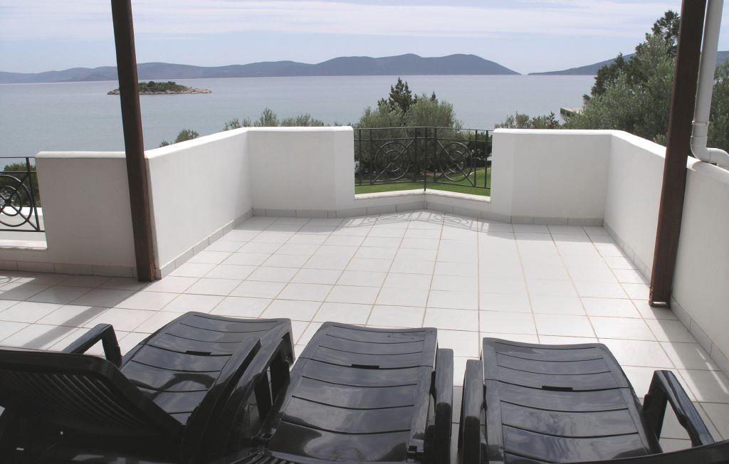 De to villaer, der huser denne samt 3 andre lejligheder, ligger lige ved havet. Villaerne er arkitektonisk smukt indrettede og byder på høj komfort. Lejligheden ligger på førstesalen med direkte adgang til egen balkon. Haven er velholdt og der er en dejlig havudsigt. Den enestående beliggenhed ved den smukke bugt byder også på privat adgang til havet. Huset er solidt og kan bruges hele året. Lejligheden har klimaanlæg (v/k). Spørg efter priserne på vinter/langtidsleje. De tre andre lejligheder er GPE108, GPE110 samt GPE111.