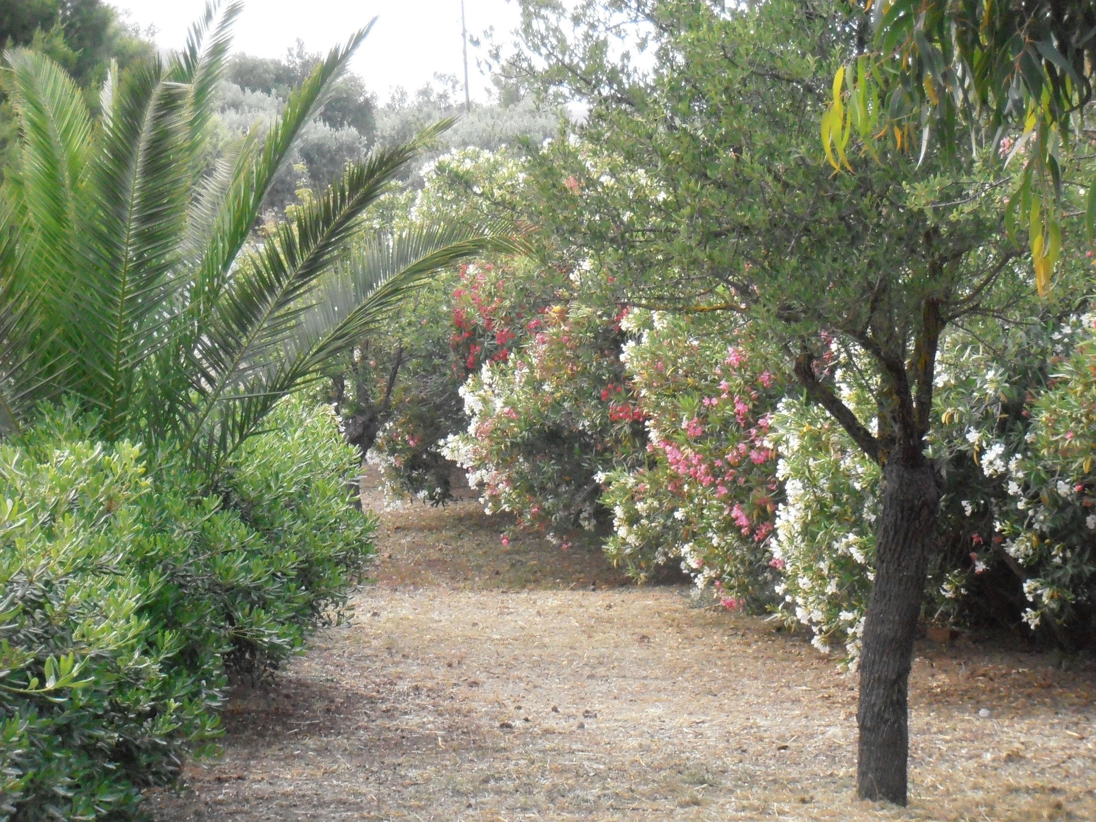 umgeben von blühenden Oleandern, Olivenbäumen, Pinien, Feigen und Rosen.