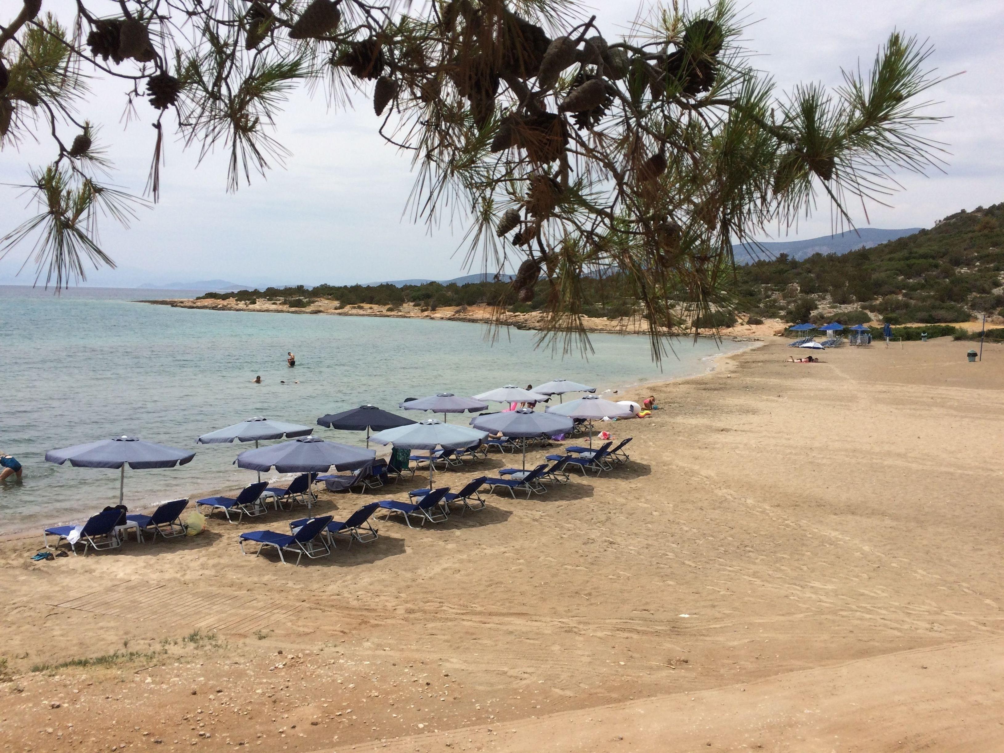 sich eine idyllisch gelegene Bucht ( Petrothalassa-Beach), die bequem zu Fuß zu erreichen ist und zum Schwimmen, Tauchen und Fischen einlädt.