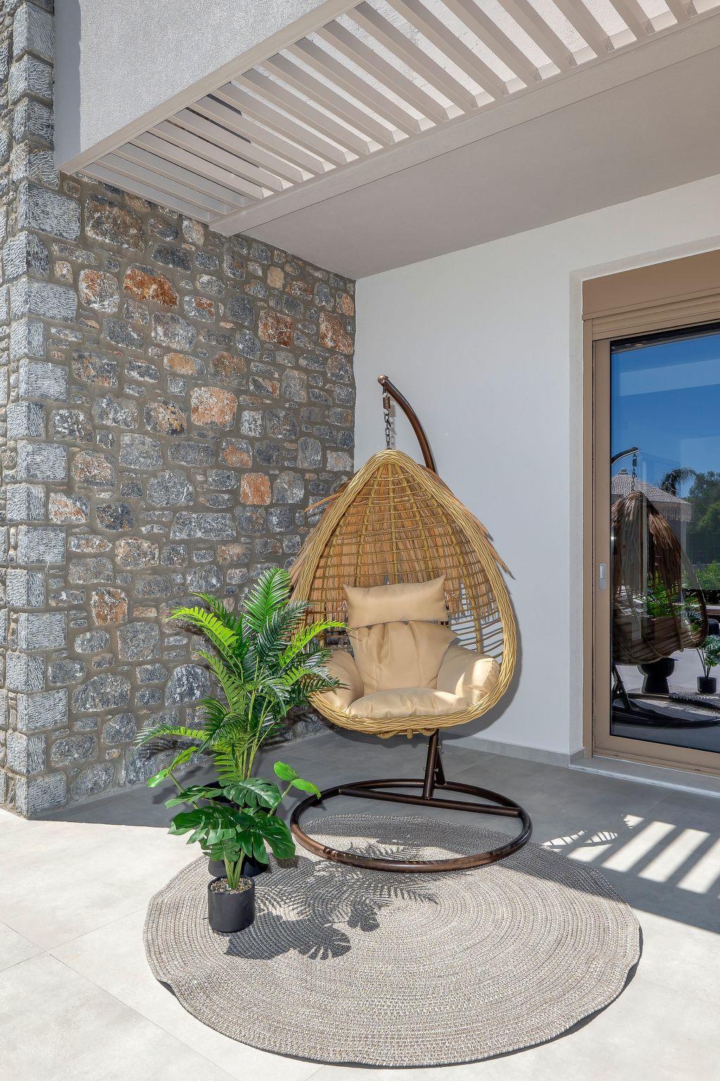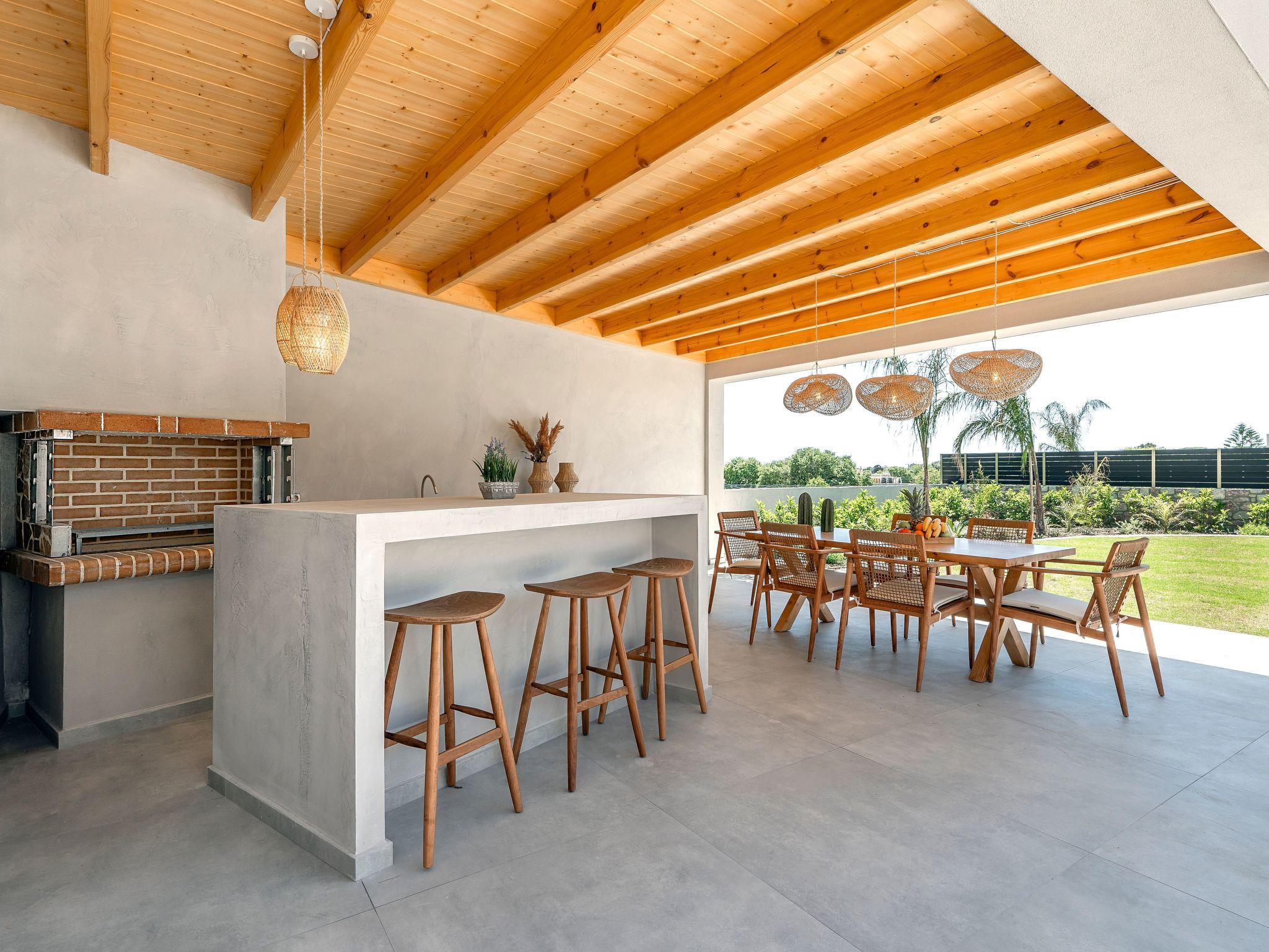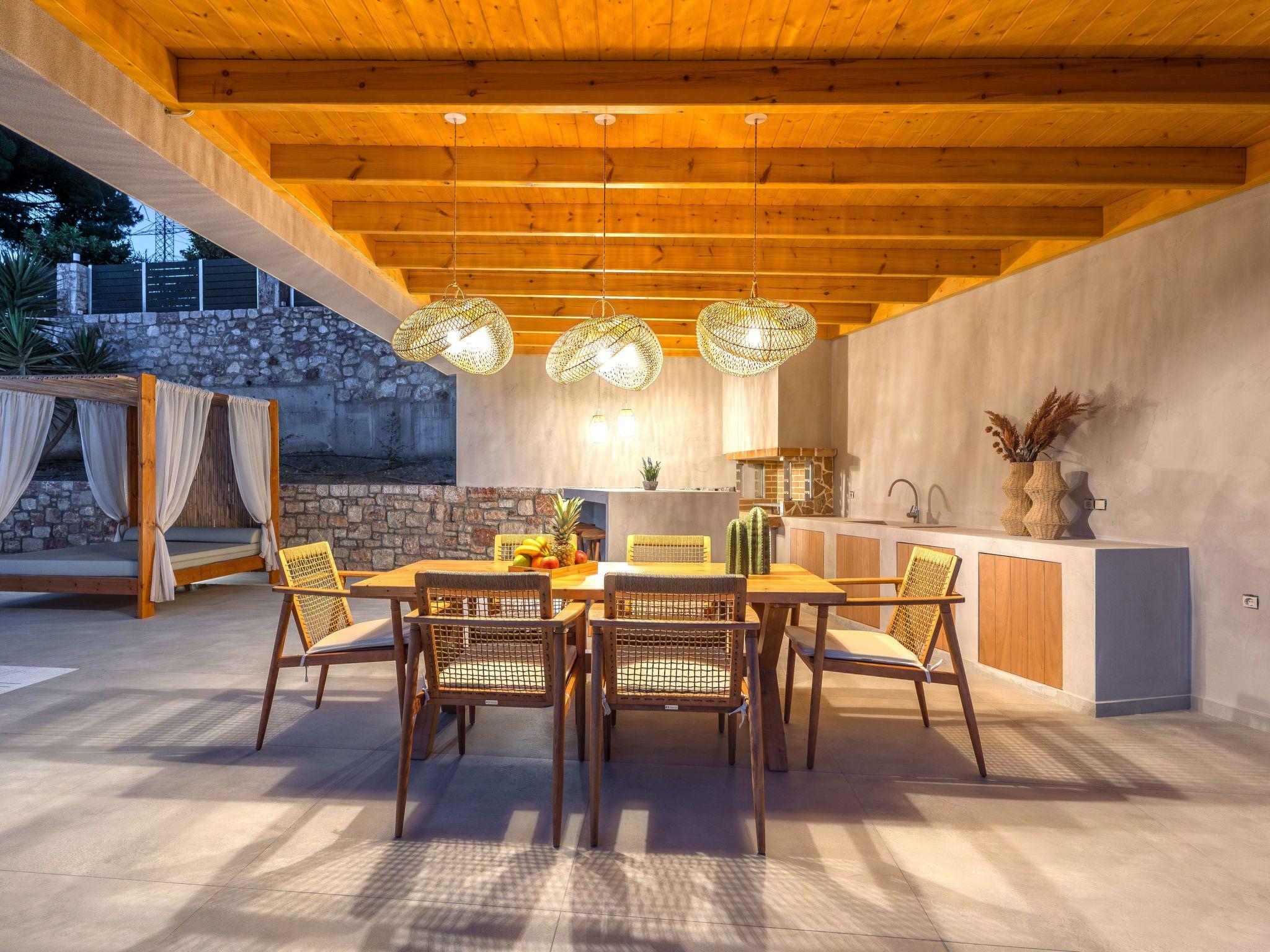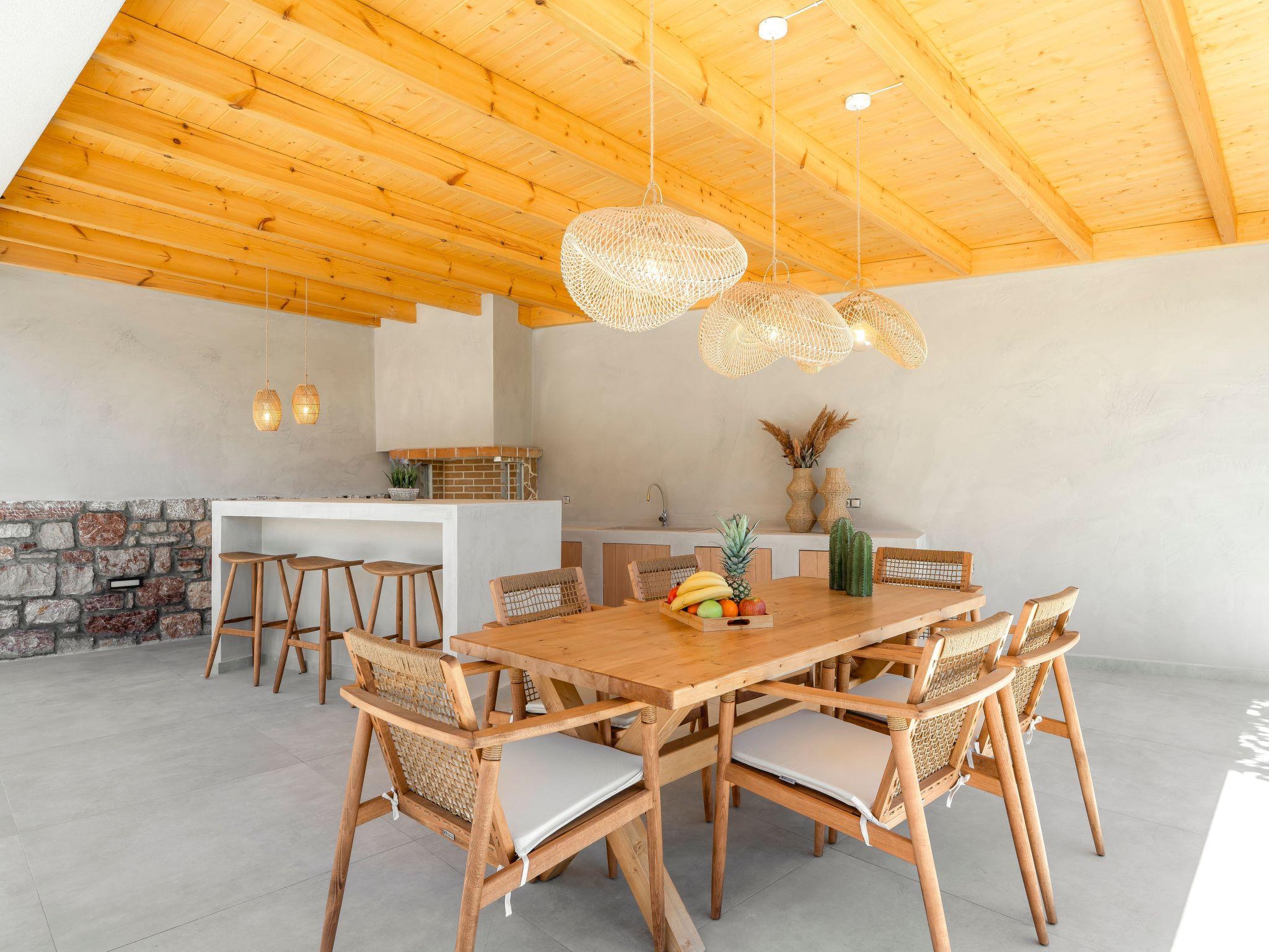 Step outside into your private oasis. The sparkling pool invites you to cool off during warm Rhodes afternoons, while the surrounding deck is perfect for lounging, sunbathing, or simply enjoying the serene ambiance. The lush garden provides a tranquil escape, ideal for a morning coffee or an evening glass of wine. A BBQ area and a charming outdoor dining space allow you to savor delicious meals under the Mediterranean sky.