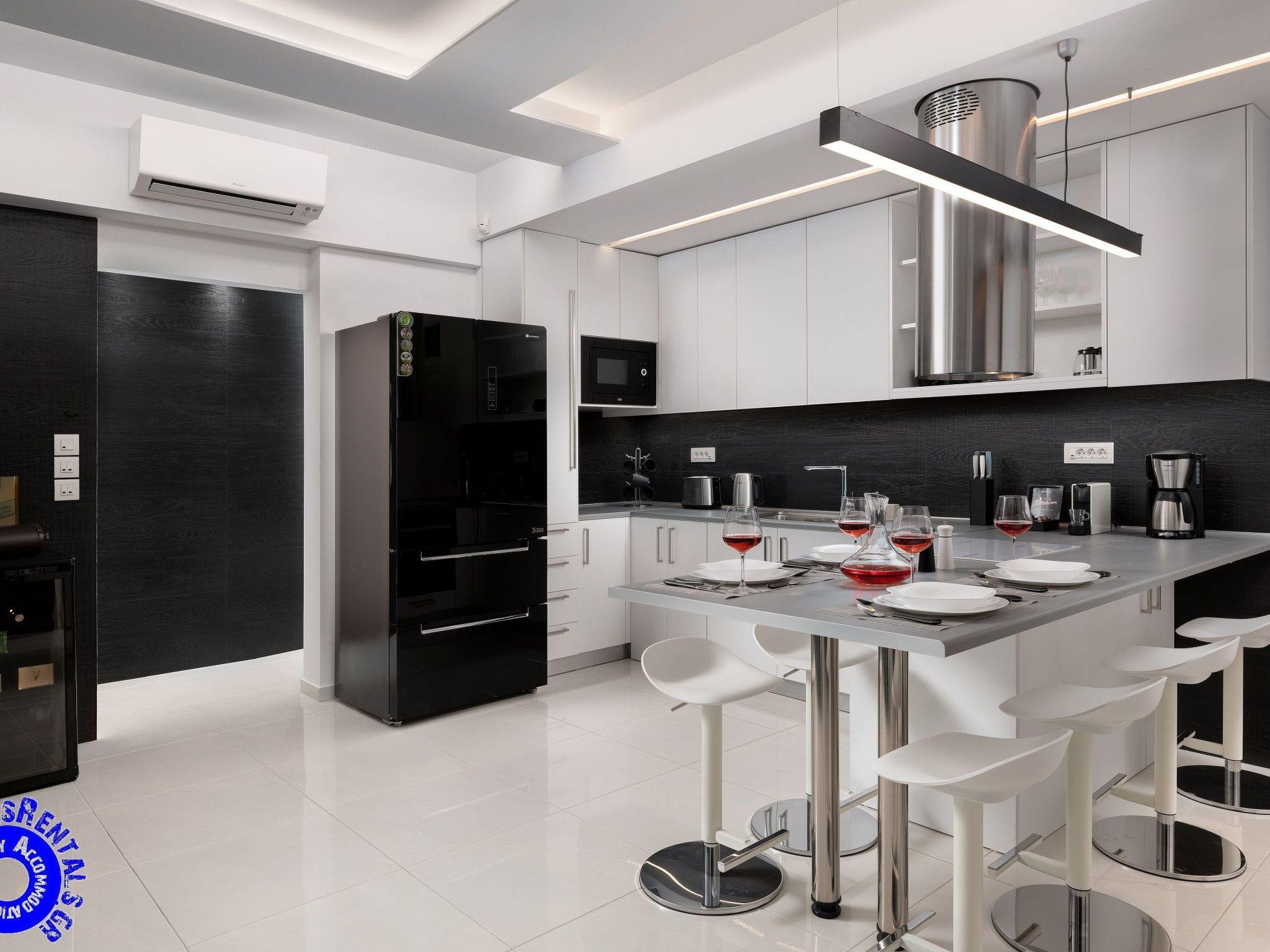Each one of our suites is fully equipped, including a seating area, a well-fitted kitchen with a dining area and bedrooms with private bathrooms. Moreover, you shall find all the necessities, such as a microwave, air condition, a 65’’ flat-screen TV with satellite channels as well as a kettle. a coffee machine, and many more.