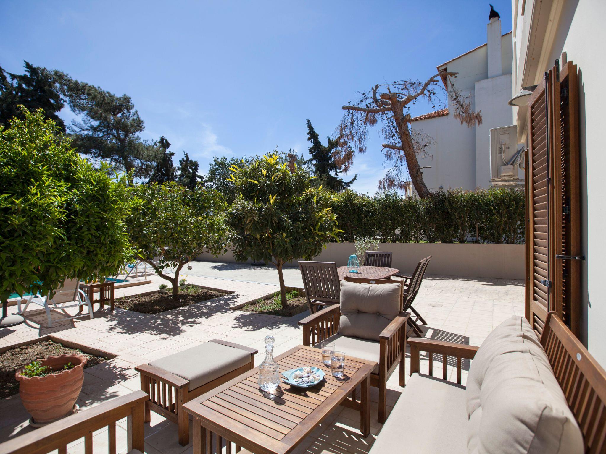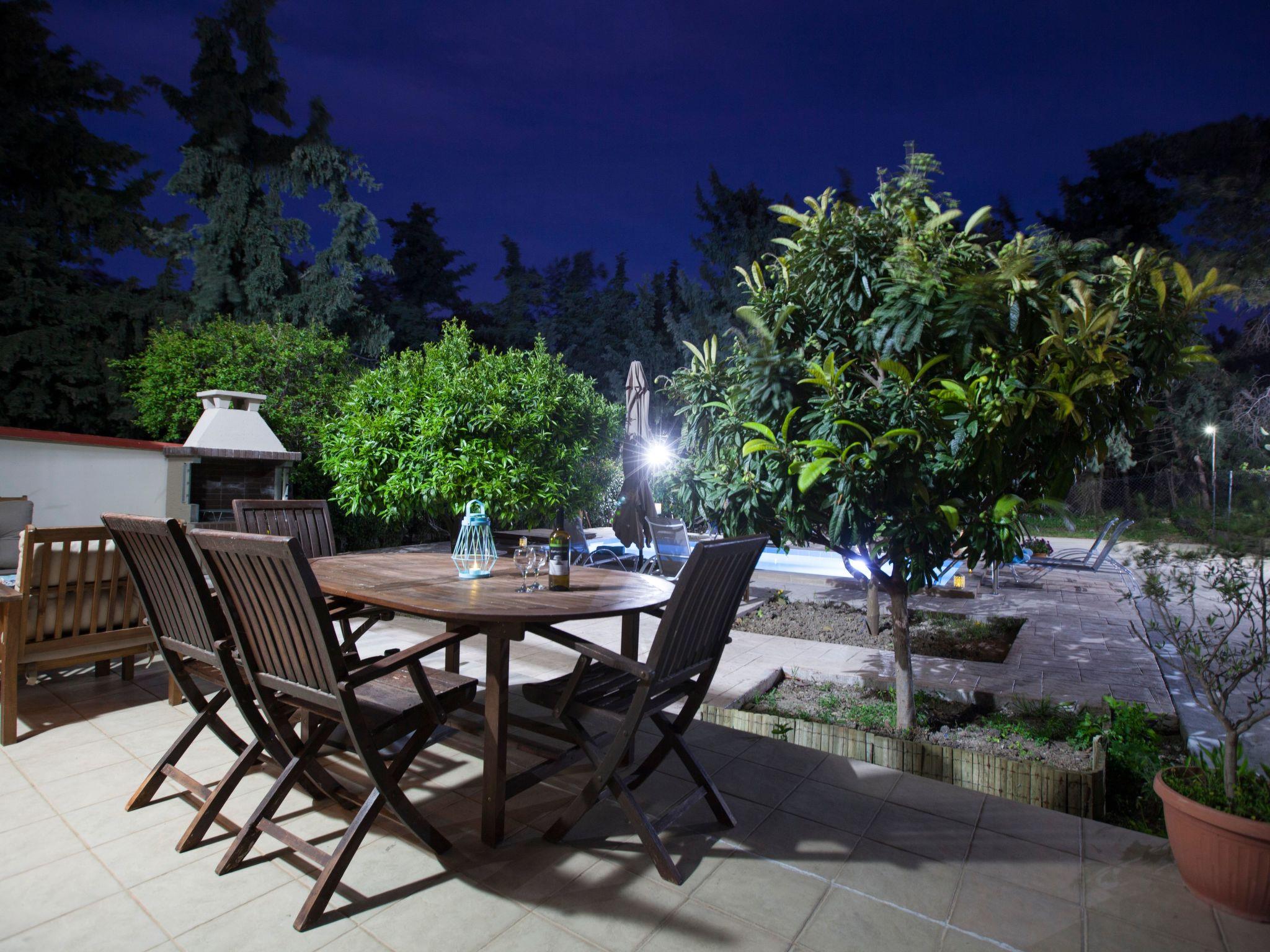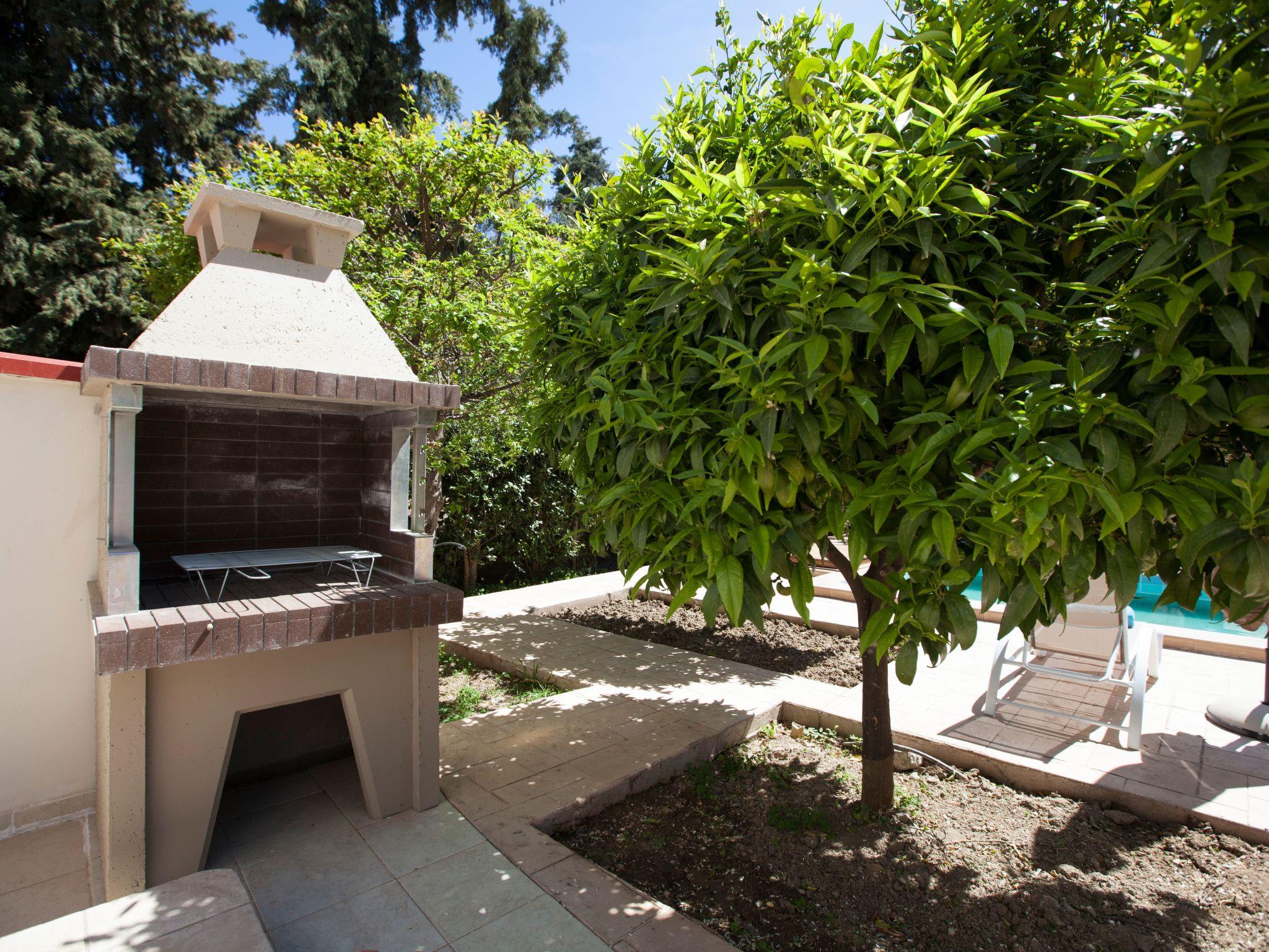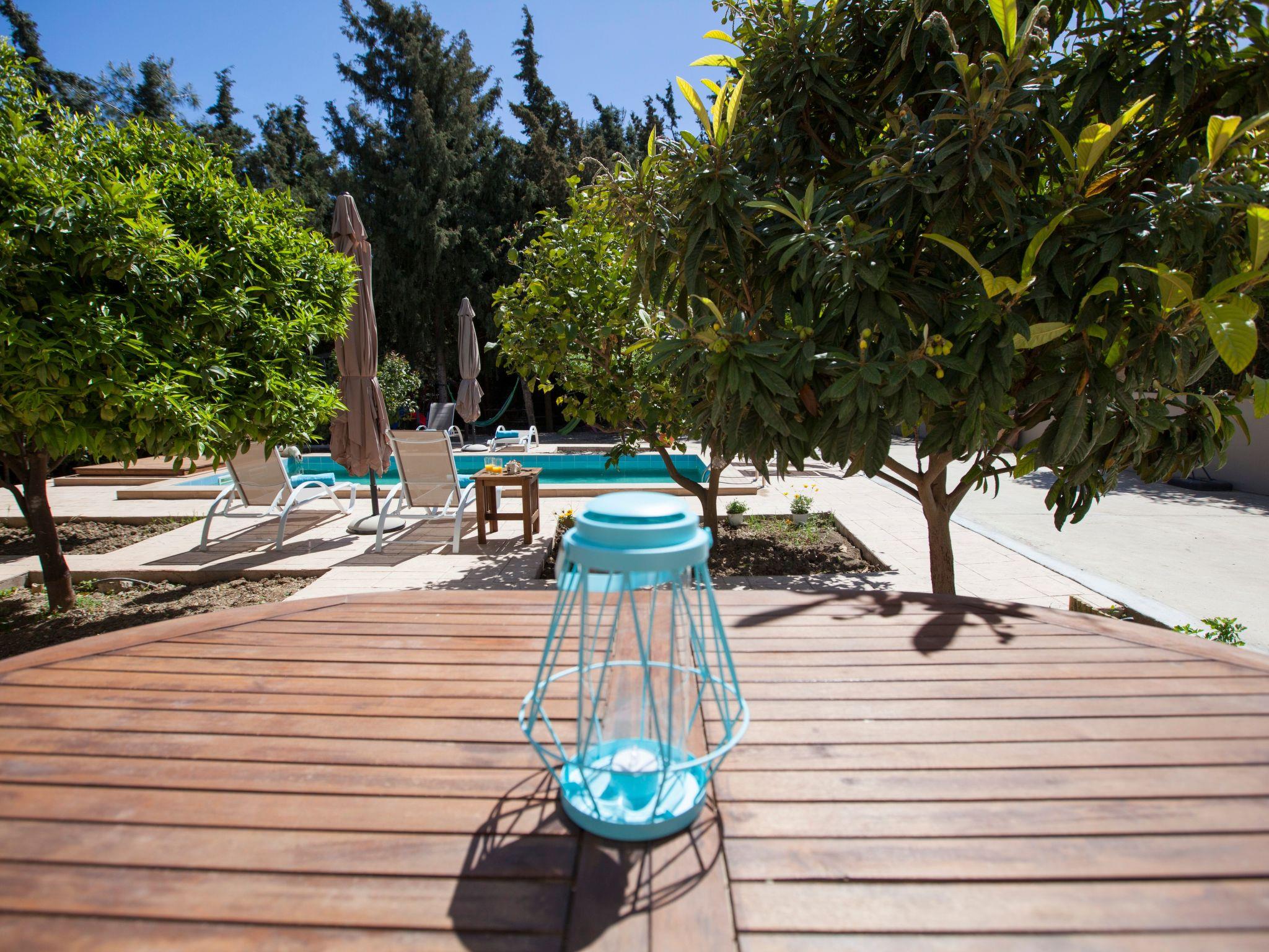 In a safe area, the villa is surrounded by a Mediterranean garden (citrus and pomegranate trees, herbs), which is extended to a little private forest with pine trees and cypresses.The villa is located in a safe and quite area, 500 m away from the main road of the island, which is a perfect distance to both avoid noise and have easy access too. In the neighbourhood, there is a grocery, cooking house and a large playground with a modern café snack-bar, where you can go on foot in about 5 minutes. Koskinou village, a UN Cultural Heritage protected village, with traditional tavernas is only 15 minutes walking. The closest large supermarkets are 5 minutes driving and Rhodes town is only a 10-minute drive away from the villa.
