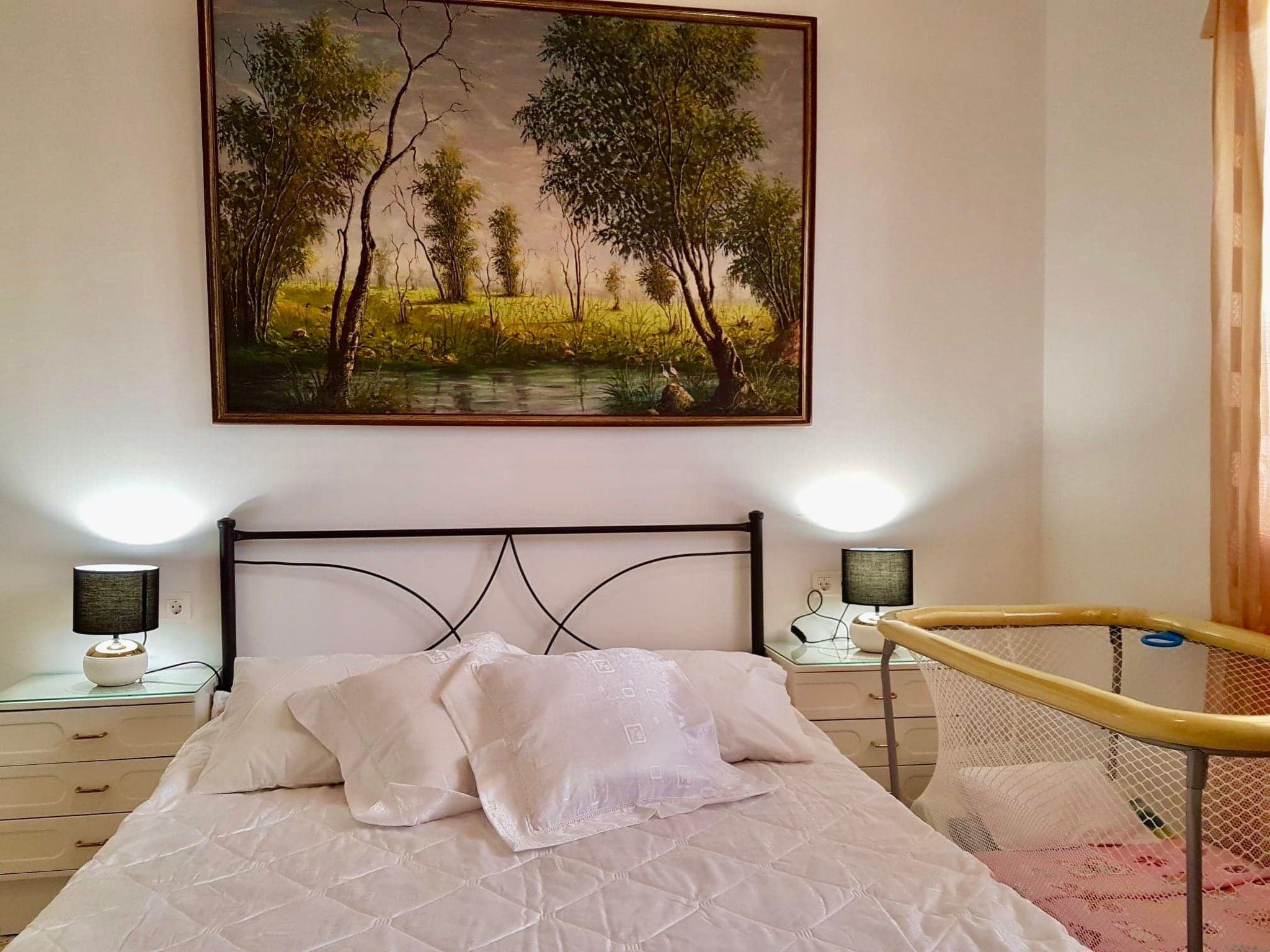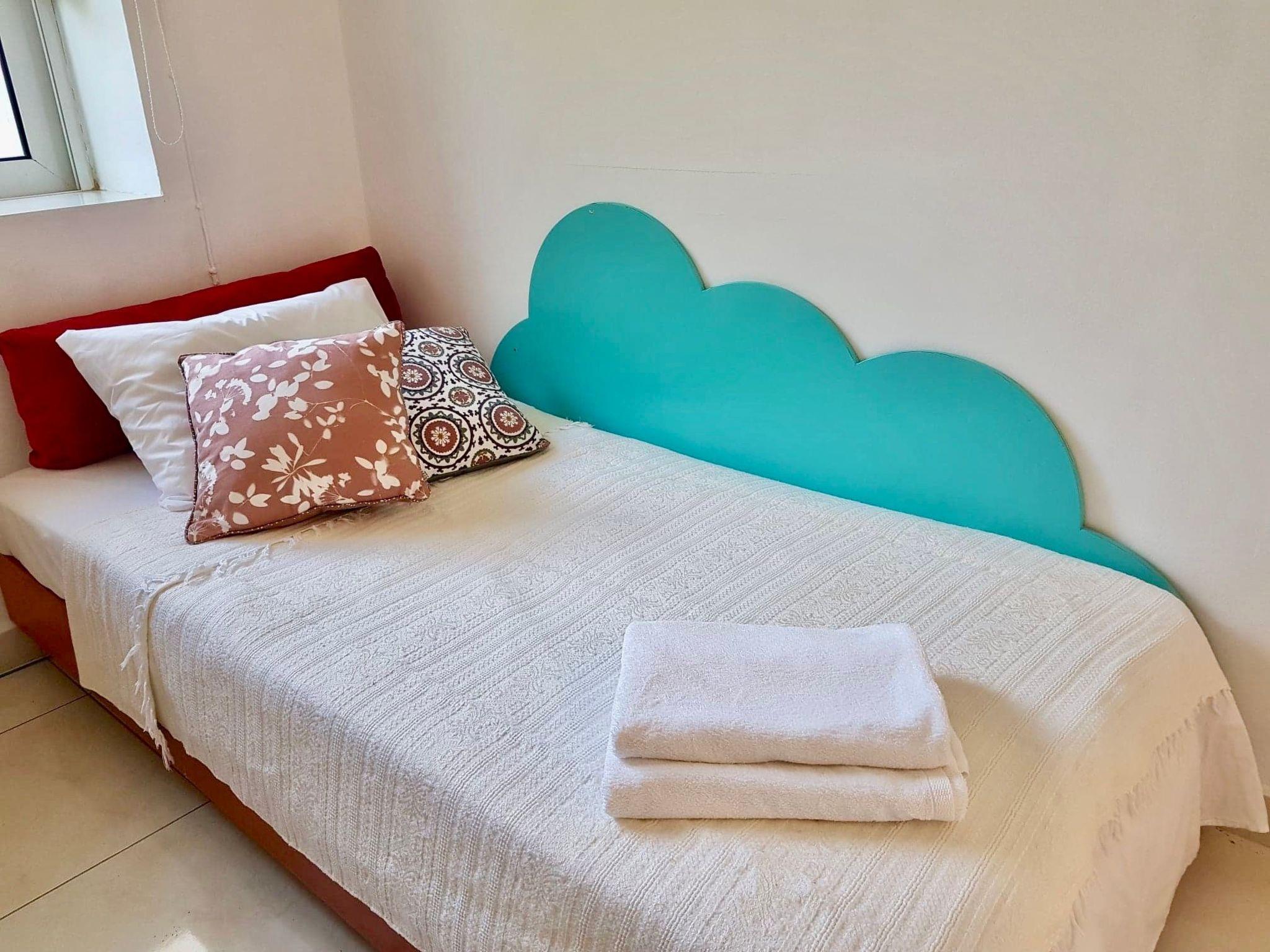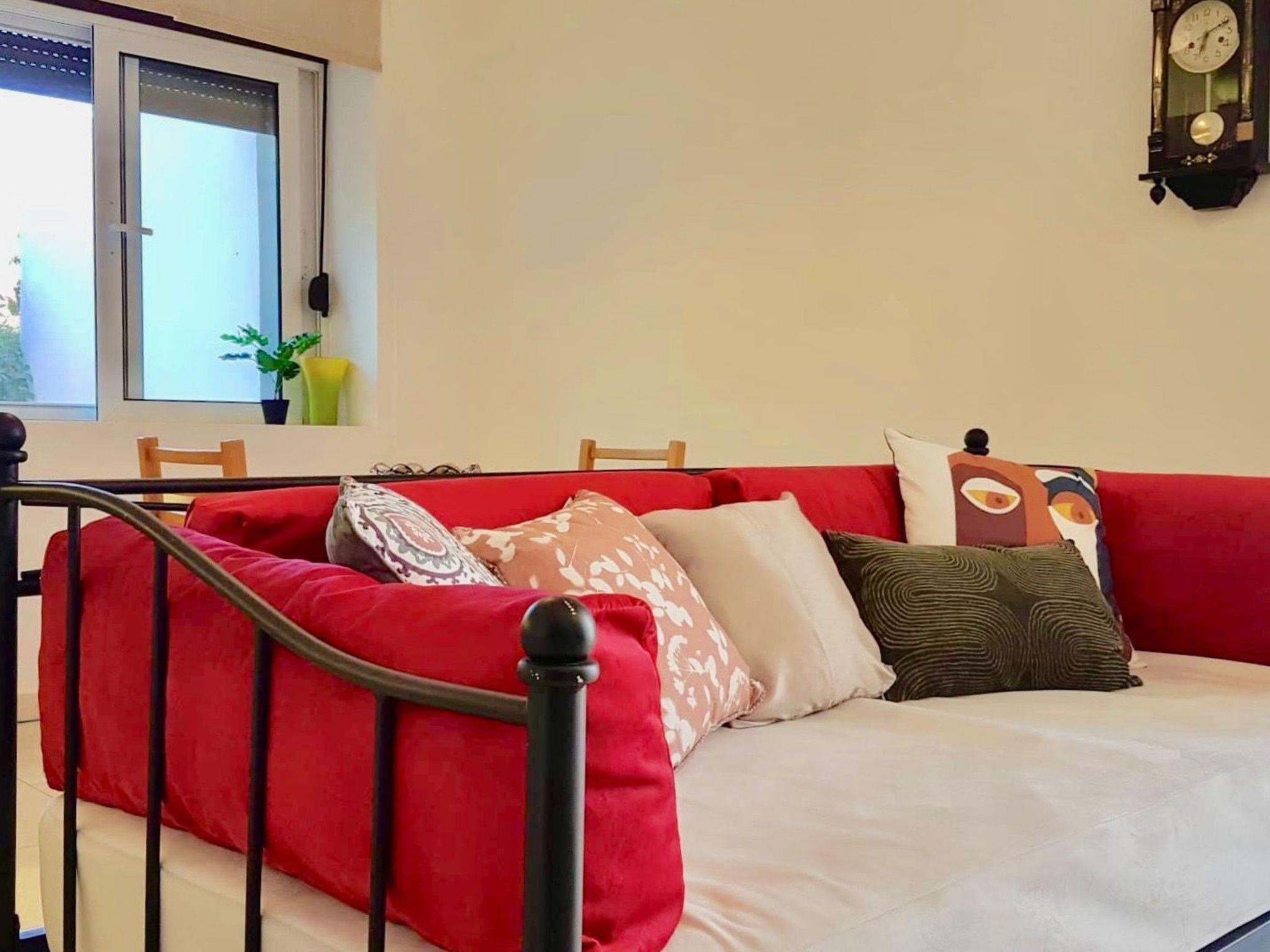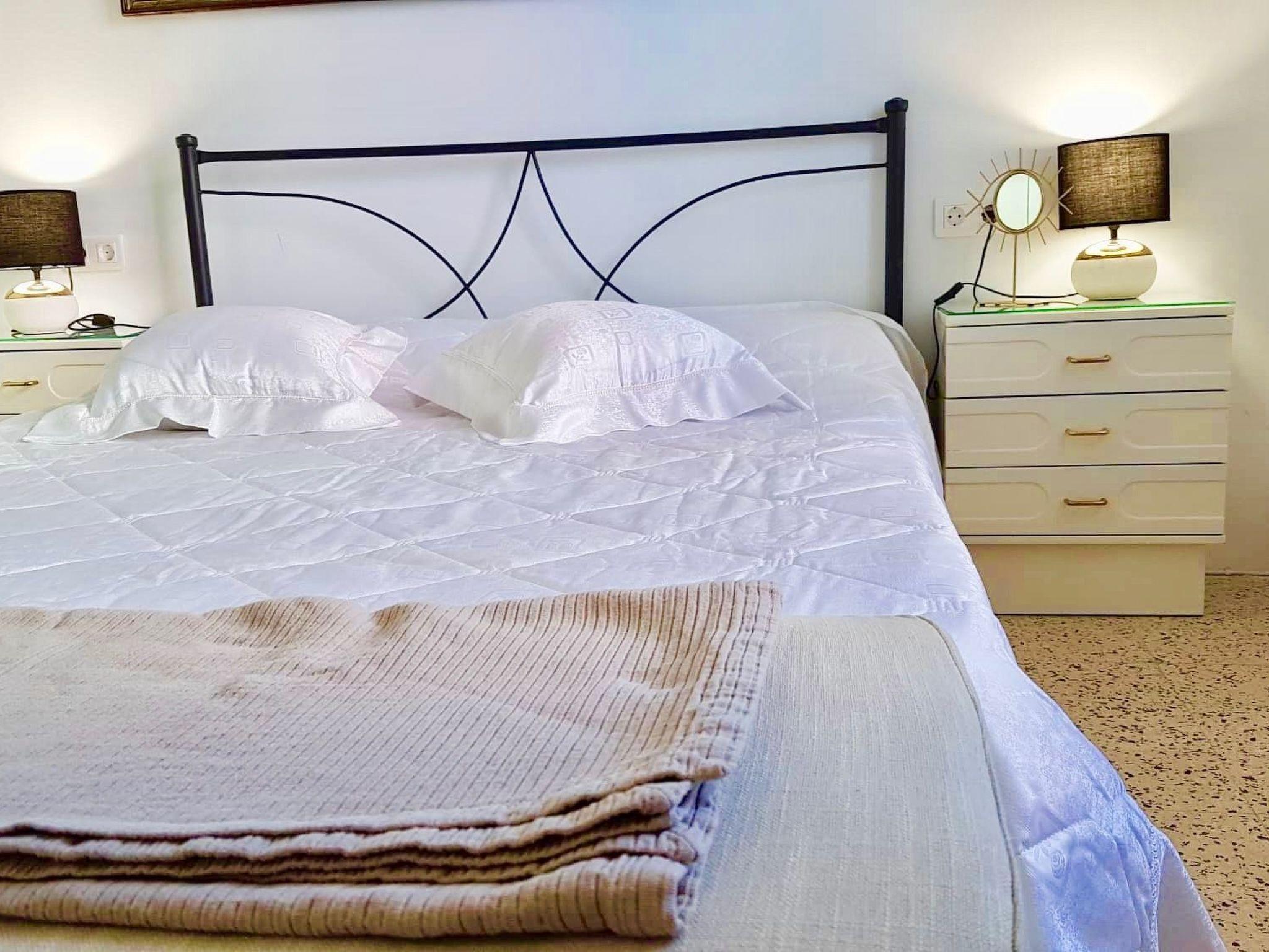 Inside, the house is thoughtfully equipped with all the essentials to ensure a comfortable stay. The open plan living room-kitchen area is spacious, benefiting from high ceilings that amplify the sense of space and freedom. The large bedroom is versatile, accommodating a single bed upon request, ensuring a restful night's sleep for all guests. The inclusion of air conditioning throughout the house provides a cool respite from the Mediterranean warmth, while practical amenities such as a washing machine, coffee machine, and electric kettle add to the convenience of your stay.