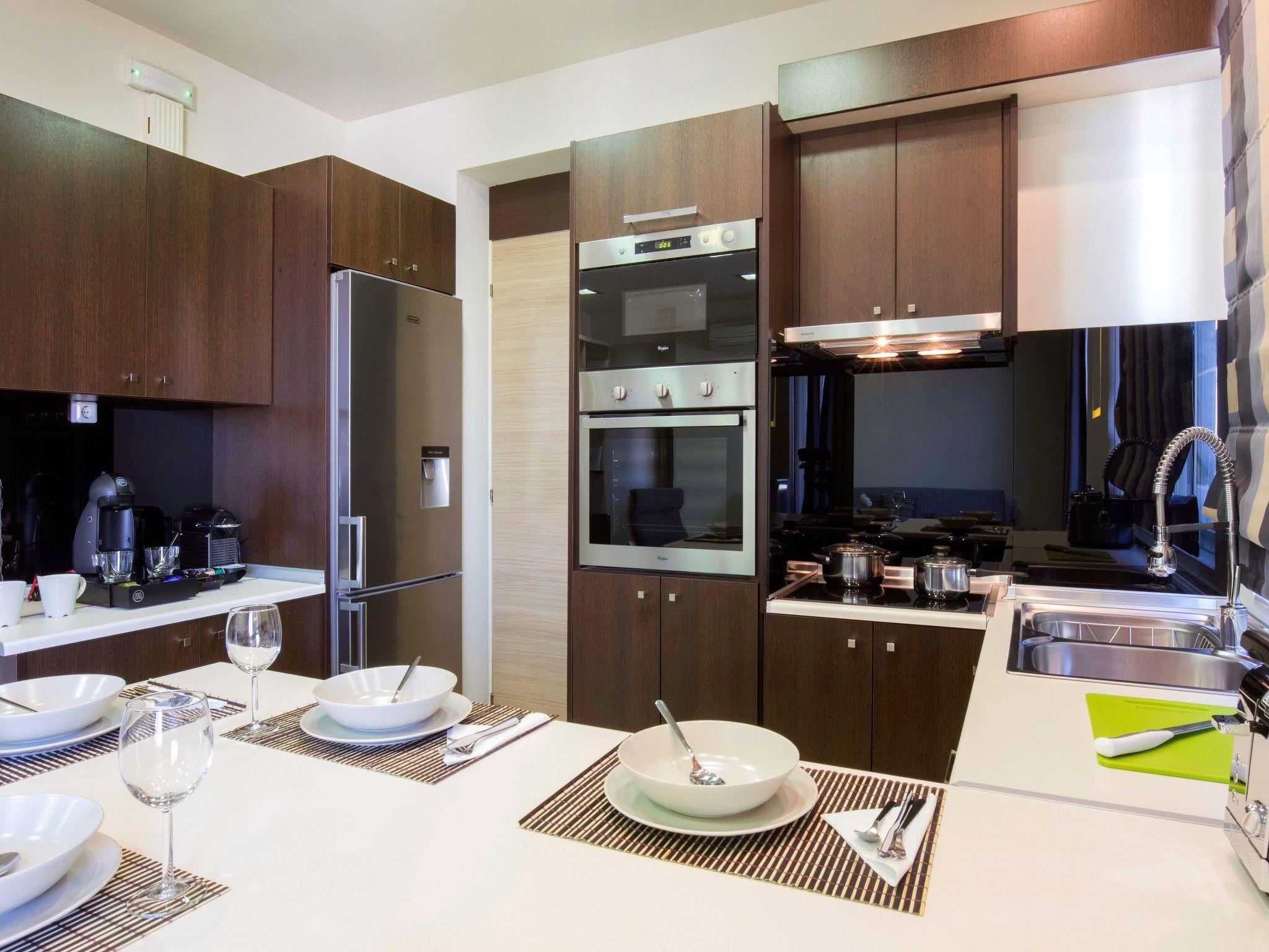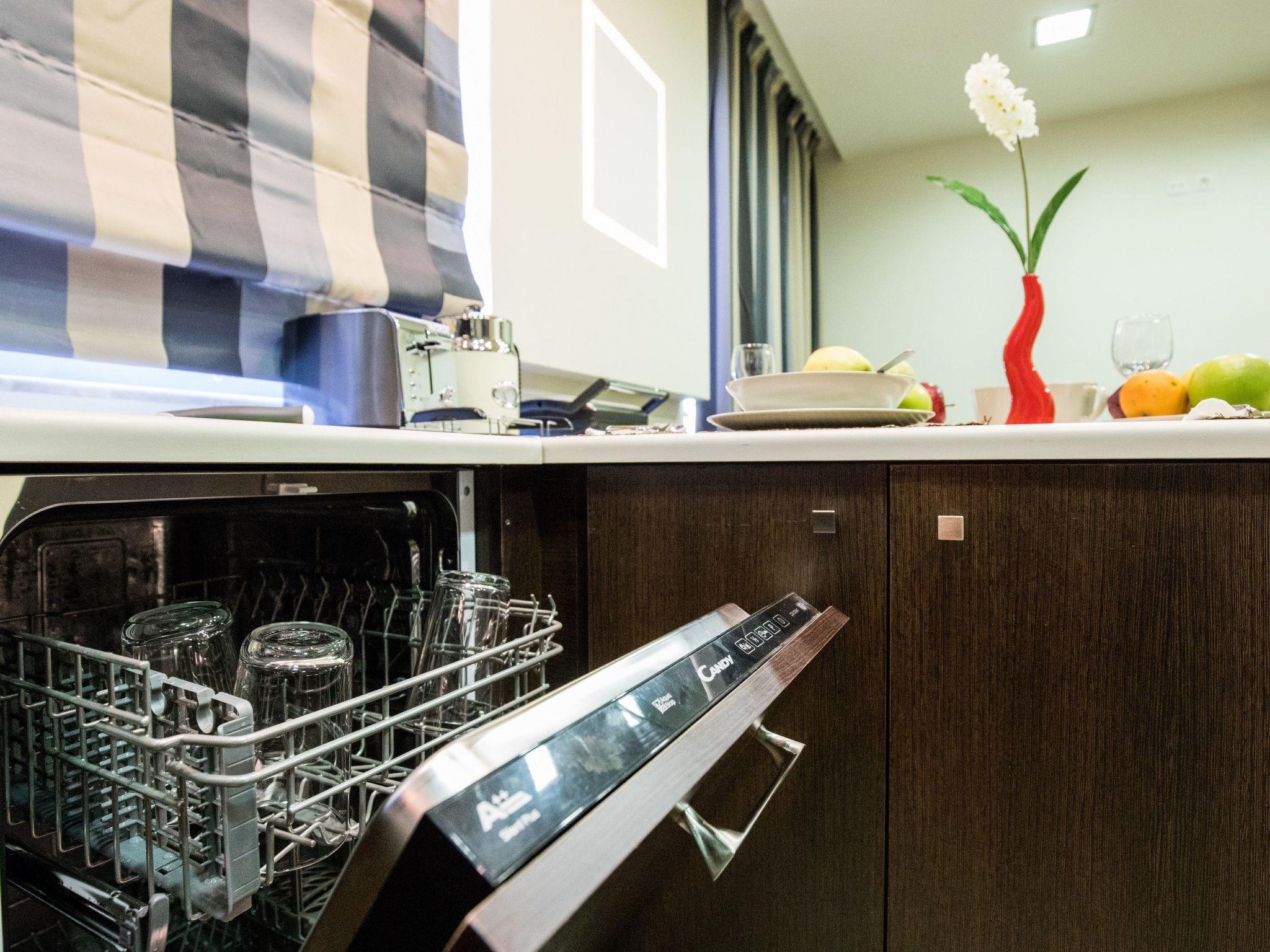 Inside, the apartment offers comfort and convenience at every turn. Both bedrooms are designed to ensure restful nights after days of exploration. A capsule coffee machine, dishwasher, and electric kettle in the kitchen cater to all your culinary needs, while the inclusion of a washing machine and clothes dryer for your sole use adds to the feeling of being in a home away from home. Air conditioning throughout the apartment ensures a cool and comfortable stay, regardless of the weather outside.
