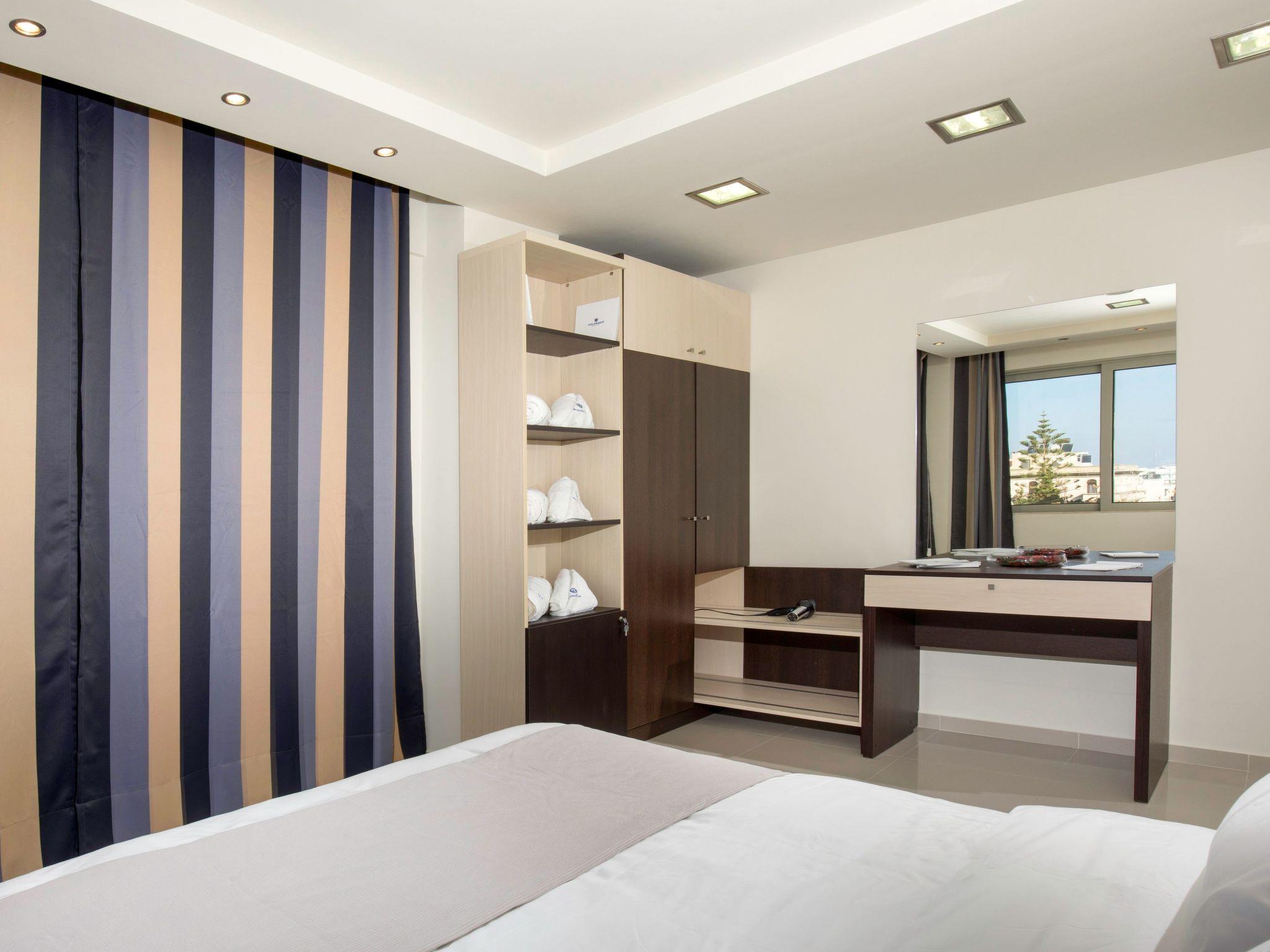 The balcony of this second-floor suite offers a secluded spot where guests can enjoy the warm, Mediterranean air. Although the view is not highlighted, this outdoor space is a delightful area for relaxation or enjoying meals al fresco, providing a personal oasis in the heart of the bustling town.