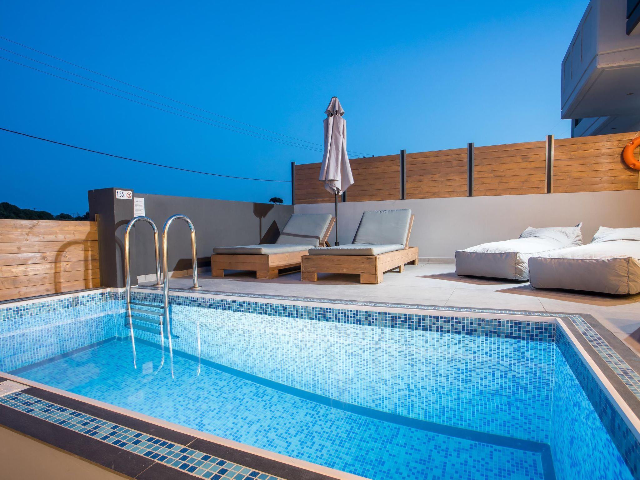 Step into ArmoniKon Pool Villa, where relaxation meets luxury for up to 8 guests. This haven boasts three fully air-conditioned bedrooms, two featuring cozy double beds and one with versatile singles that seamlessly convert into a double. Unwind in the spacious living room, equipped with a double sofa bed and Smart TV for entertainment. Enjoy yourself in the two bathrooms, each adorned with refreshing showers. Prepare delicious meals in the fully equipped kitchen, catering to any culinary desire. Step outside to discover your private paradise, complete with an inviting outdoor dining area and a BBQ for al fresco feasts. Indulge in ultimate relaxation with your very own heated hot tub, offering four seats for intimate gatherings. Dive into the shimmering waters of the private swimming pool, perfect for leisurely swims or soaking up the sun. Experience comfort and elegance at ArmoniKon Pool Villa, where every moment is a serene escape.