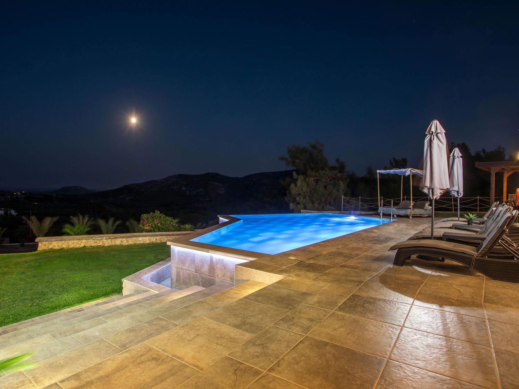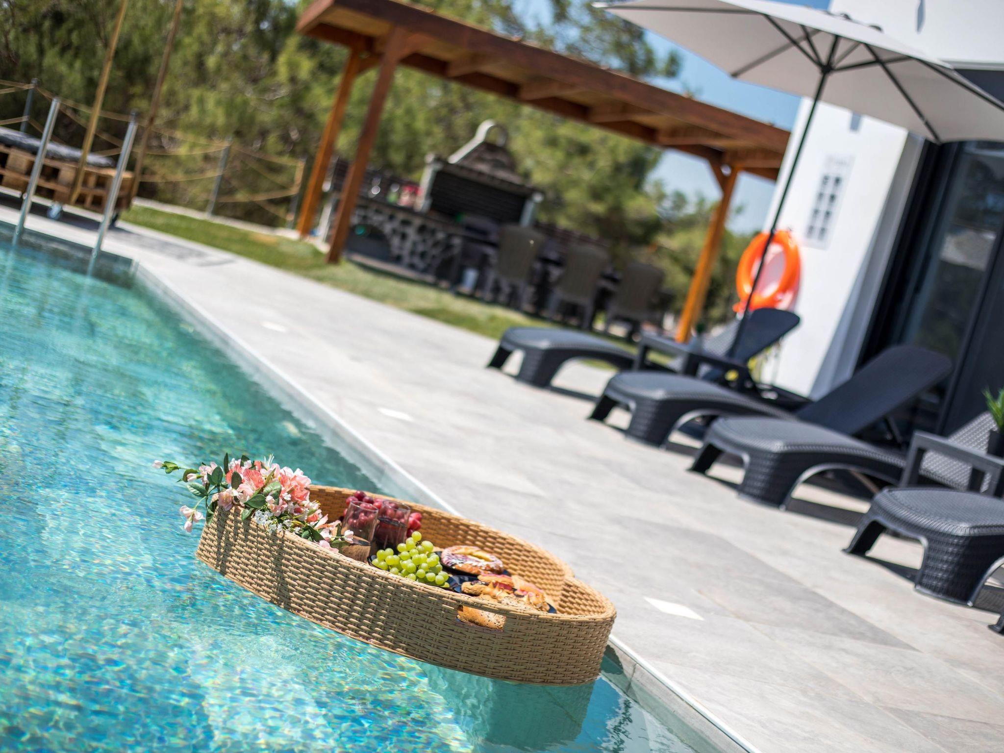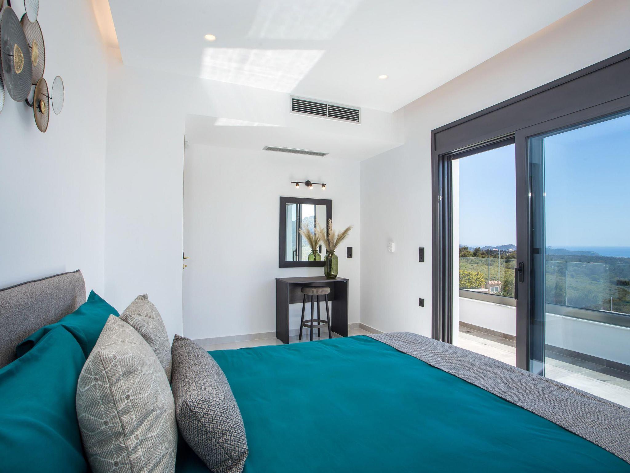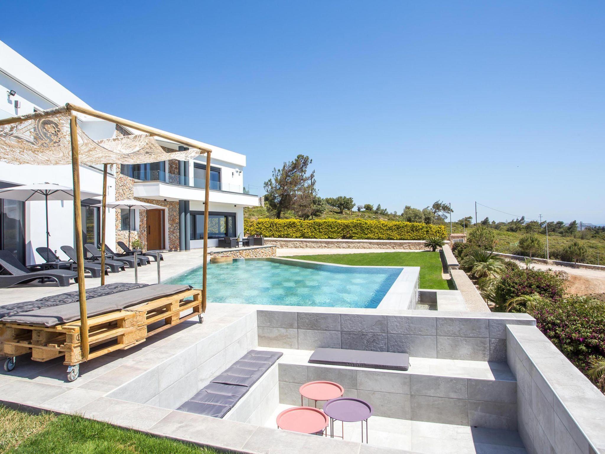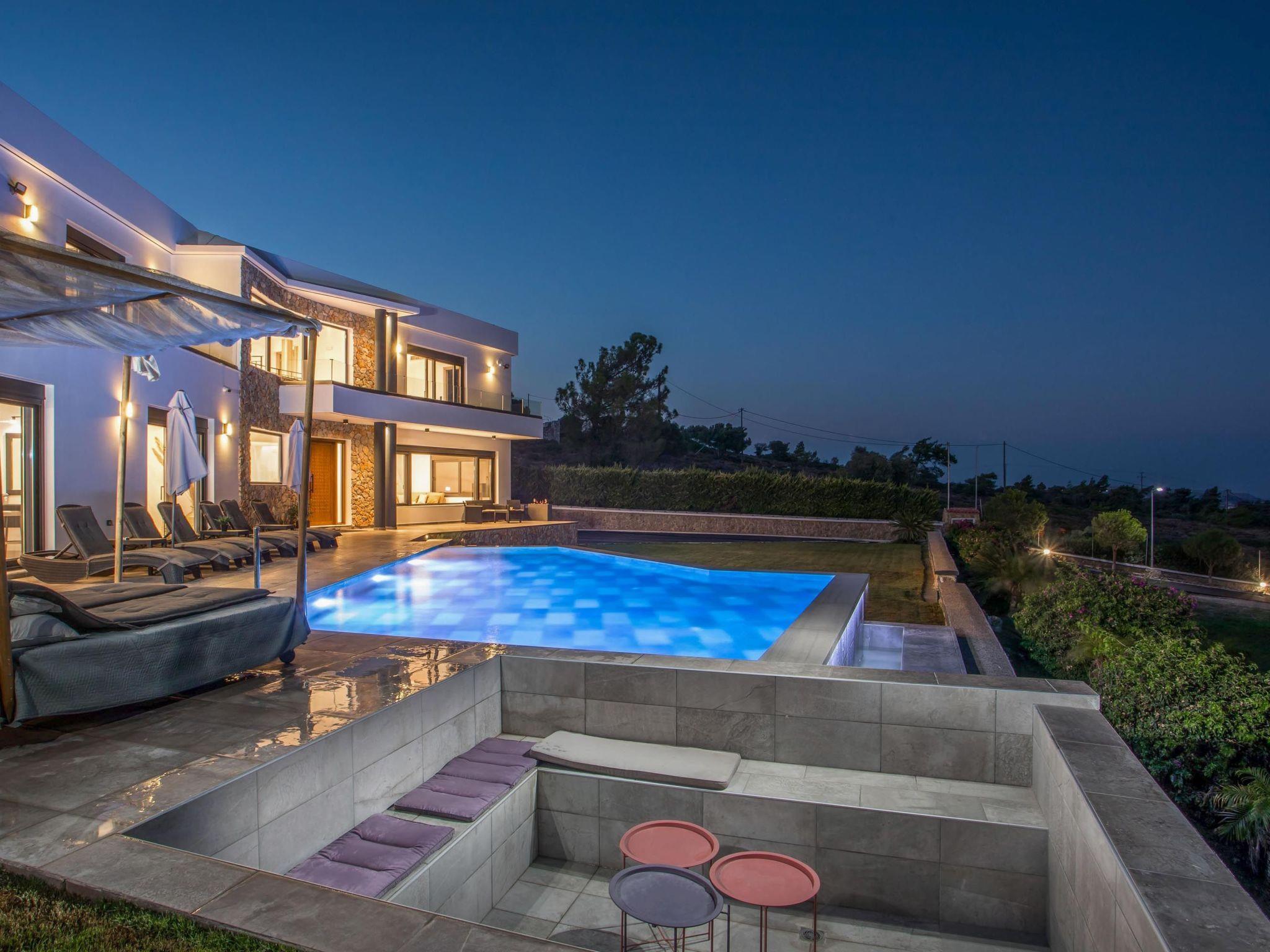 Villa Indira is a luxurious 4-bedroom villa designed to provide you with an unforgettable holiday experience. All bedrooms are fully air-conditioned and furnished with spacious double beds. They are carefully decorated in a contemporary style with artistic touches to ensure both comfort and aesthetics. One of the bedrooms features an ensuite bathroom with a relaxing bathtub, while two additional bathrooms offer stylish showers. The villa boasts two beautiful, fully equipped kitchens for all your culinary needs, complemented by comfortable seating areas. Additionally, you will find two unique living areas adorned in warm colors, creating a tranquil ambiance. Both living areas are equipped with smart TVs for your entertainment. For added convenience, Villa Indira offers camp beds that can be placed wherever you wish, providing flexibility for sleeping arrangements for up to four extra guests. Outdoors, the villa features a private swimming pool surrounded by sunbeds, inviting you to soak up the sun in complete serenity. On the balcony, there is a heated jacuzzi where you can unwind while enjoying the breathtaking view of the sea. The peaceful surroundings, coupled with the beautifully landscaped garden, create an enchanting atmosphere. For fun and relaxation, the villa offers an outdoor table tennis setup, ensuring enjoyable moments with your loved ones. There’s also a BBQ facility with a seating area, perfect for gatherings and alfresco dining. Free Wi-Fi is available throughout the property, keeping you connected as you unwind. Villa Indira is the perfect retreat to escape your daily routine and create lasting memories on the beautiful island of Rhodes!