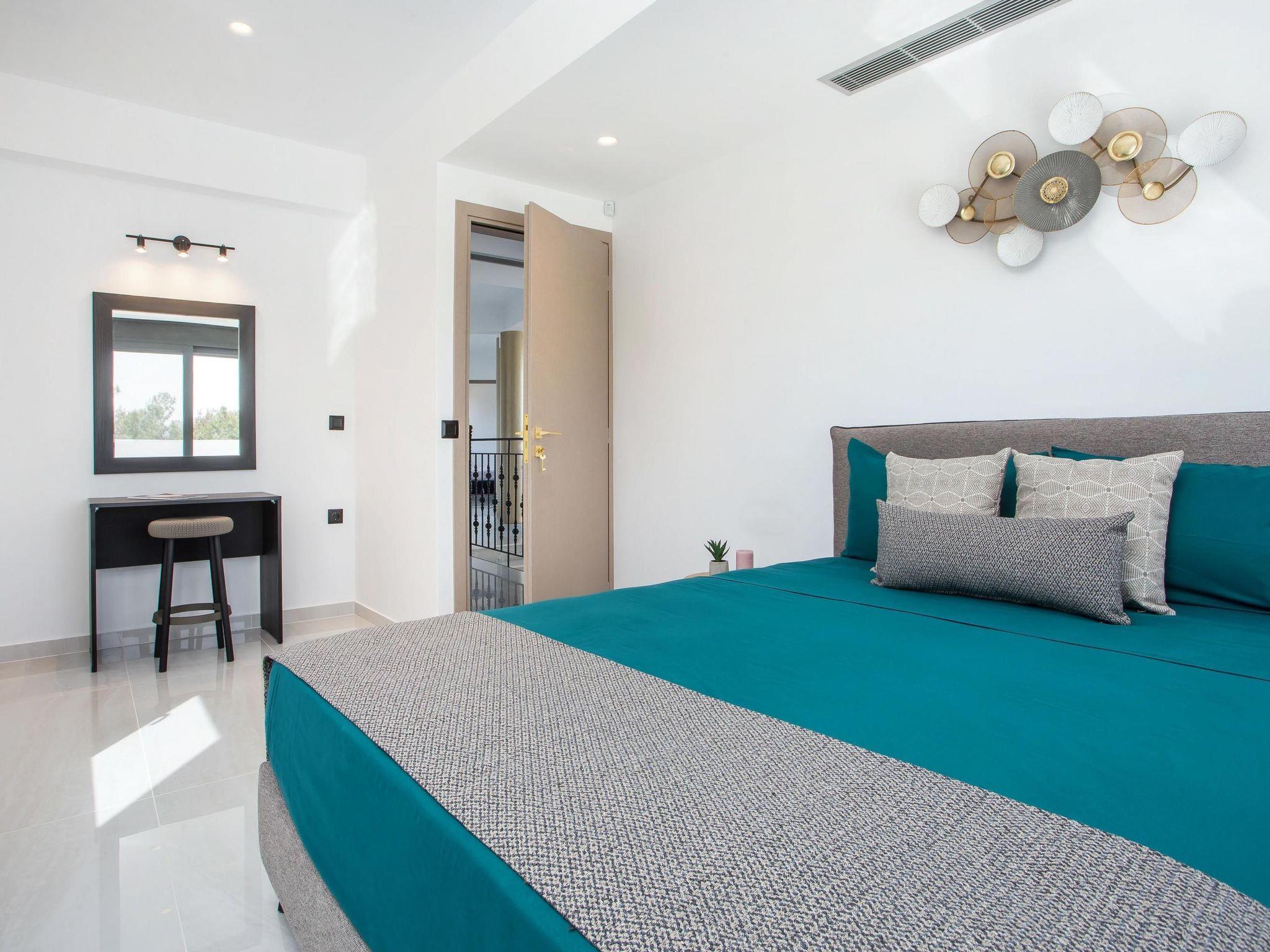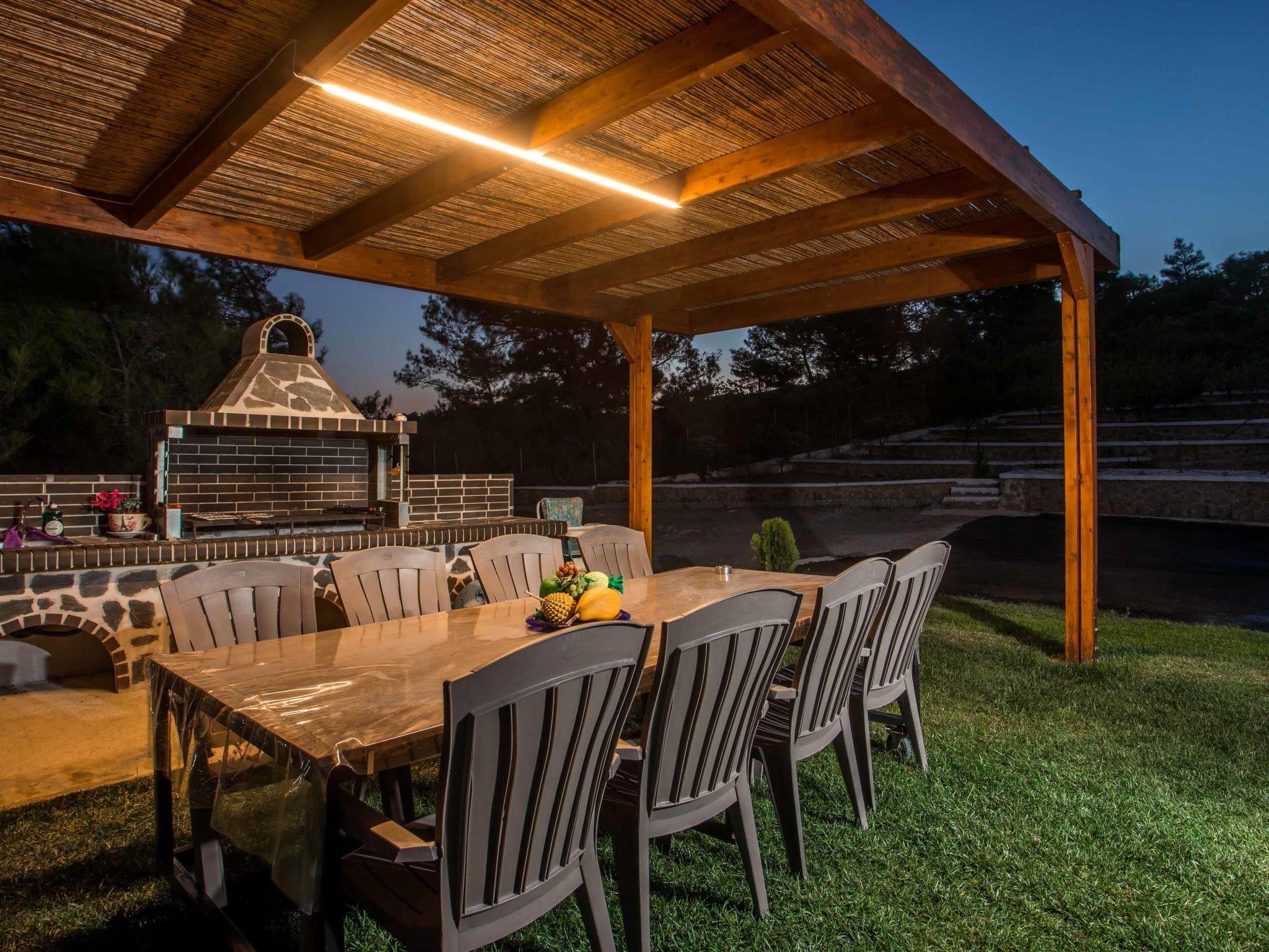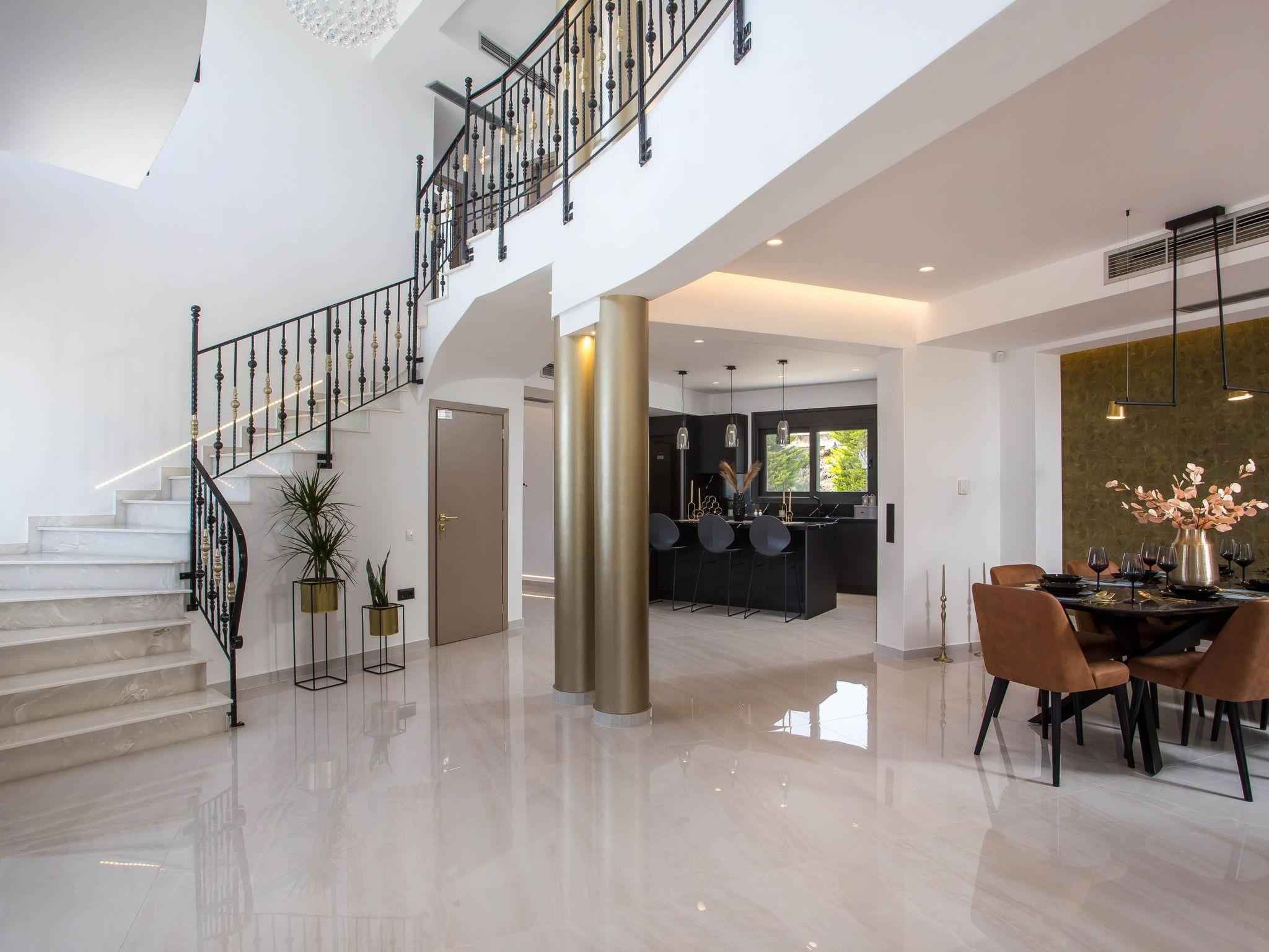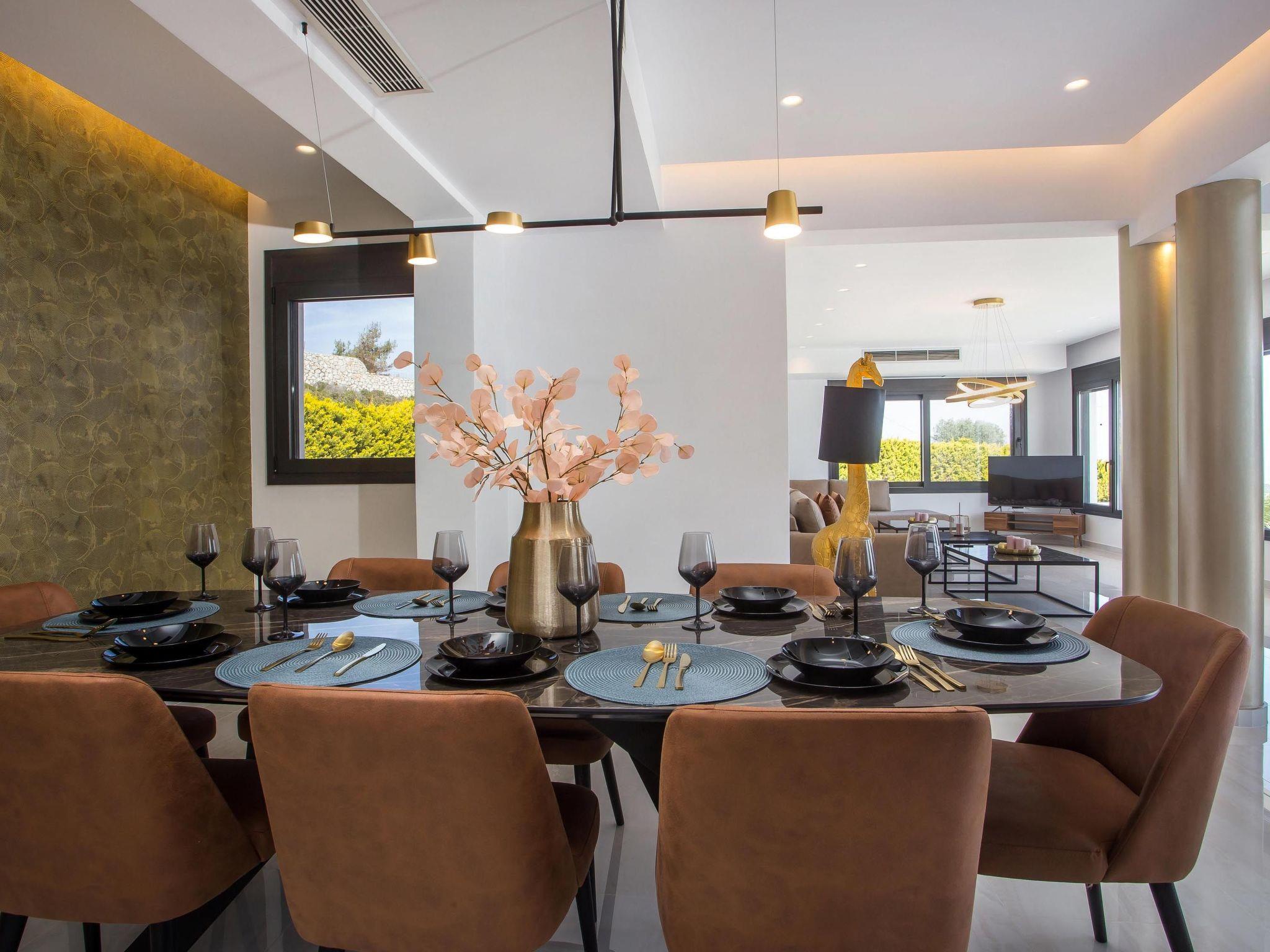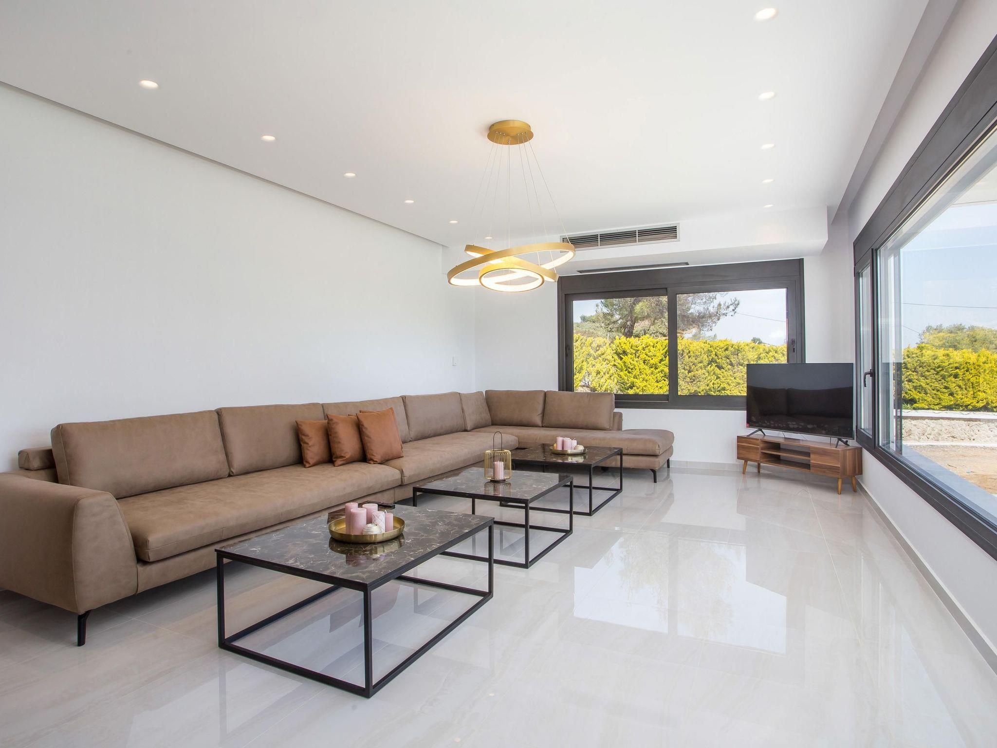 Villa Indira is a luxurious 4-bedroom villa designed to provide you with an unforgettable holiday experience. All bedrooms are fully air-conditioned and furnished with spacious double beds. They are carefully decorated in a contemporary style with artistic touches to ensure both comfort and aesthetics. One of the bedrooms features an ensuite bathroom with a relaxing bathtub, while two additional bathrooms offer stylish showers. The villa boasts two beautiful, fully equipped kitchens for all your culinary needs, complemented by comfortable seating areas. Additionally, you will find two unique living areas adorned in warm colors, creating a tranquil ambiance. Both living areas are equipped with smart TVs for your entertainment. For added convenience, Villa Indira offers camp beds that can be placed wherever you wish, providing flexibility for sleeping arrangements for up to four extra guests. Outdoors, the villa features a private swimming pool surrounded by sunbeds, inviting you to soak up the sun in complete serenity. On the balcony, there is a heated jacuzzi where you can unwind while enjoying the breathtaking view of the sea. The peaceful surroundings, coupled with the beautifully landscaped garden, create an enchanting atmosphere. For fun and relaxation, the villa offers an outdoor table tennis setup, ensuring enjoyable moments with your loved ones. There’s also a BBQ facility with a seating area, perfect for gatherings and alfresco dining. Free Wi-Fi is available throughout the property, keeping you connected as you unwind. Villa Indira is the perfect retreat to escape your daily routine and create lasting memories on the beautiful island of Rhodes!