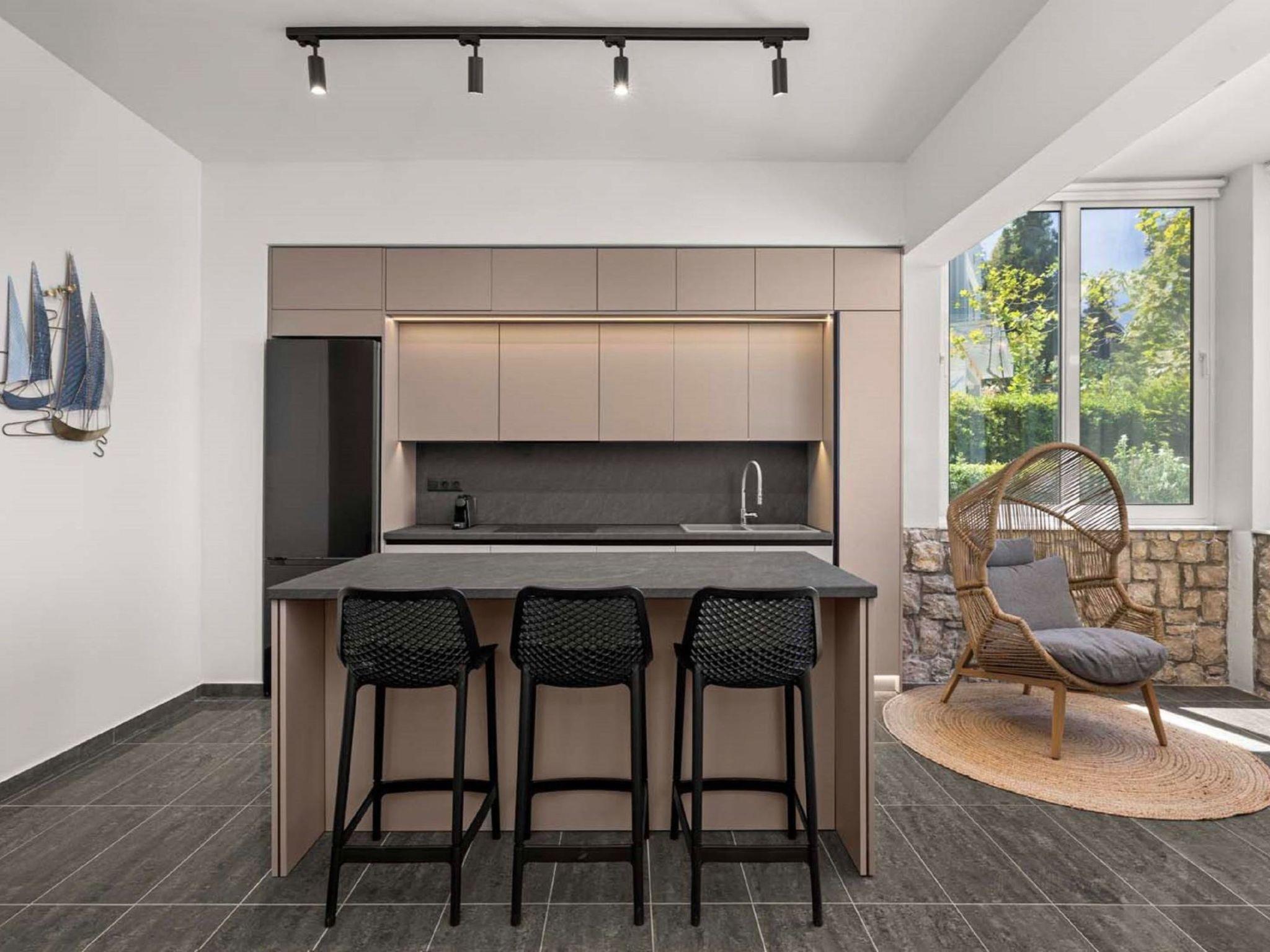 The second floor hosts three beautifully decorated double bedrooms, a bright office area that opens to a private terrace, two bathrooms with showers and one bathroom with a relaxing bathtub, perfect for unwinding.