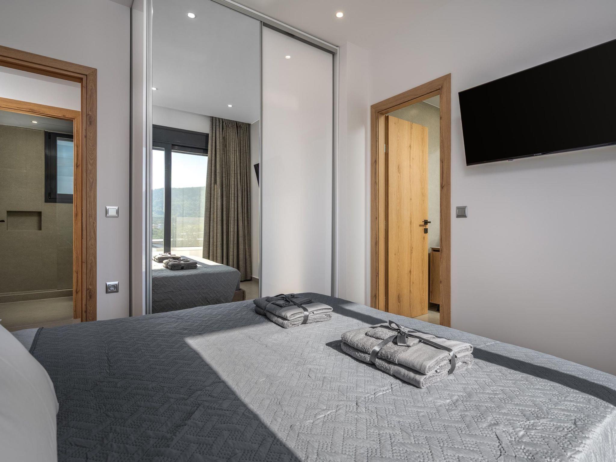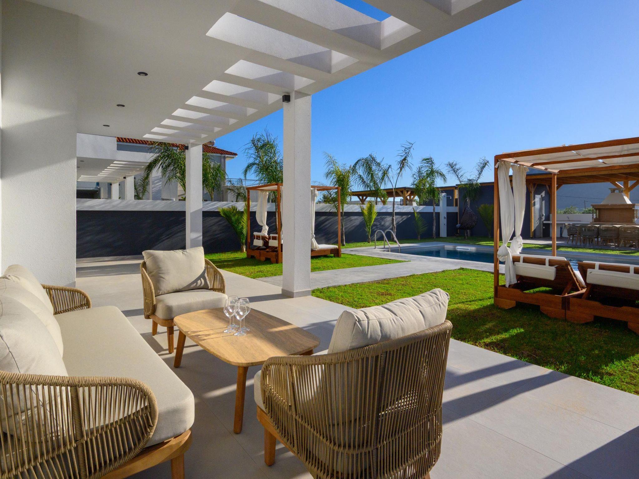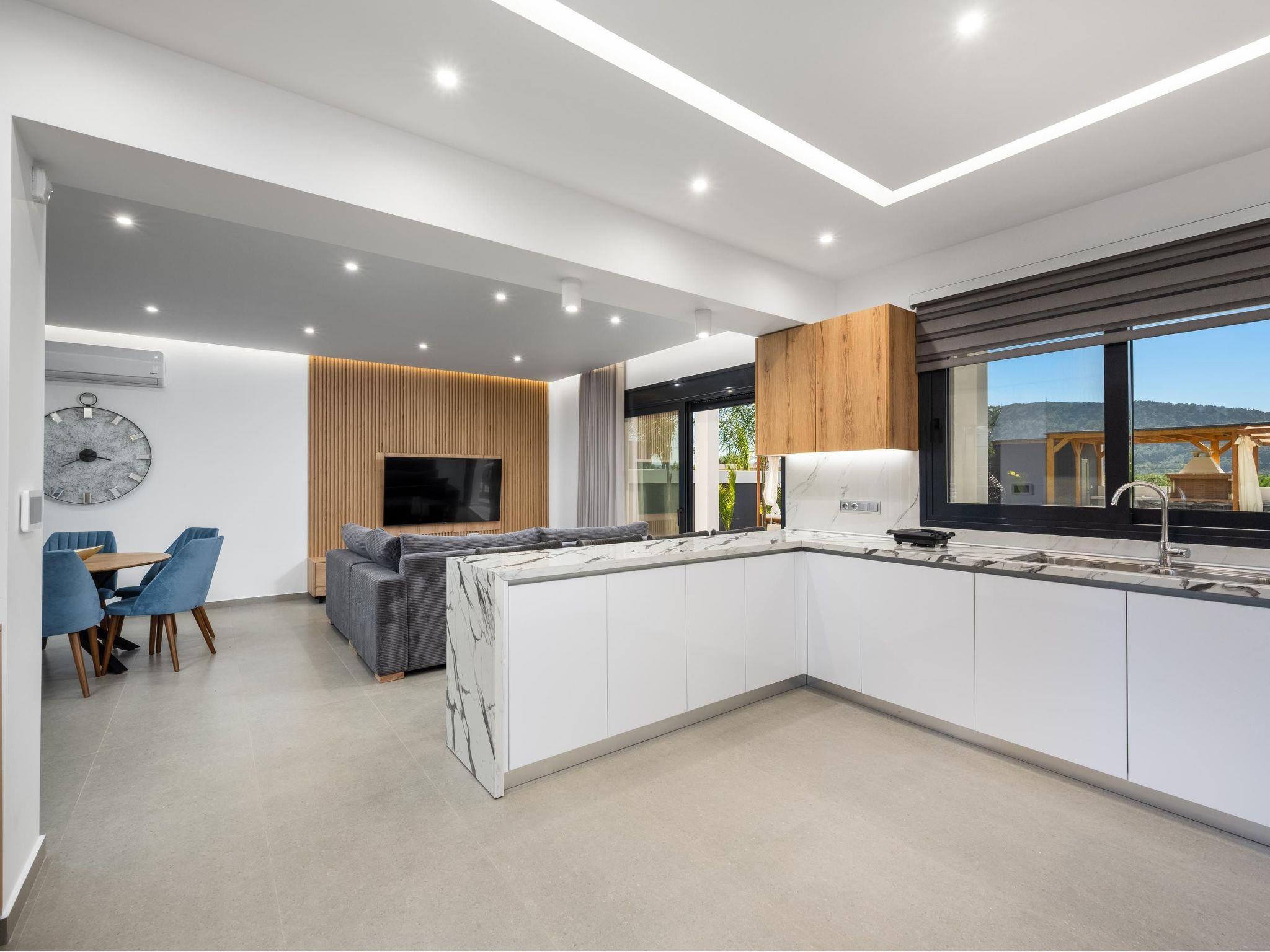 Villa Elesia is a beautifully appointed property designed for comfort and convenience, offering a perfect stay for up to six guests. The villa features three stylish bedrooms, all located on the first floor—two with double beds and one with two single beds—making it ideal for families or friends. The master bedroom includes a private ensuite bathroom with a shower, while guests also have access to an additional shared bathroom with a shower and a separate WC. The fully equipped kitchen allows for easy meal preparation, with everything needed for a home-cooked experience. Outdoors, guests can unwind by the private pool, relax under the shaded pergola, or enjoy alfresco dining in the furnished outdoor area. A built-in BBQ and two gazebos offer the perfect setting for summer gatherings. Private parking is available on-site, adding to the villa's convenience. Villa Elesia offers a harmonious blend of indoor comfort and outdoor leisure in Kremasti.