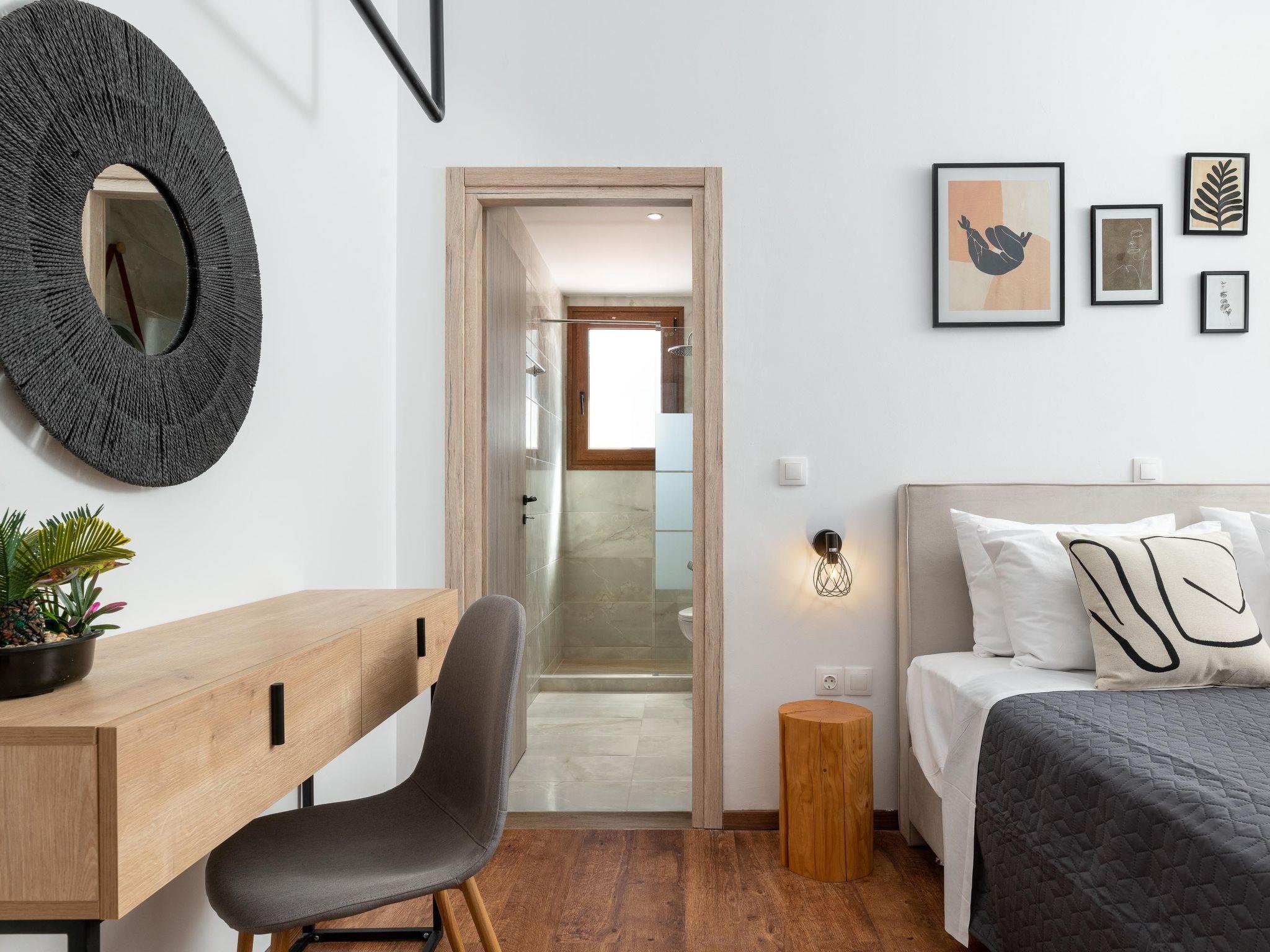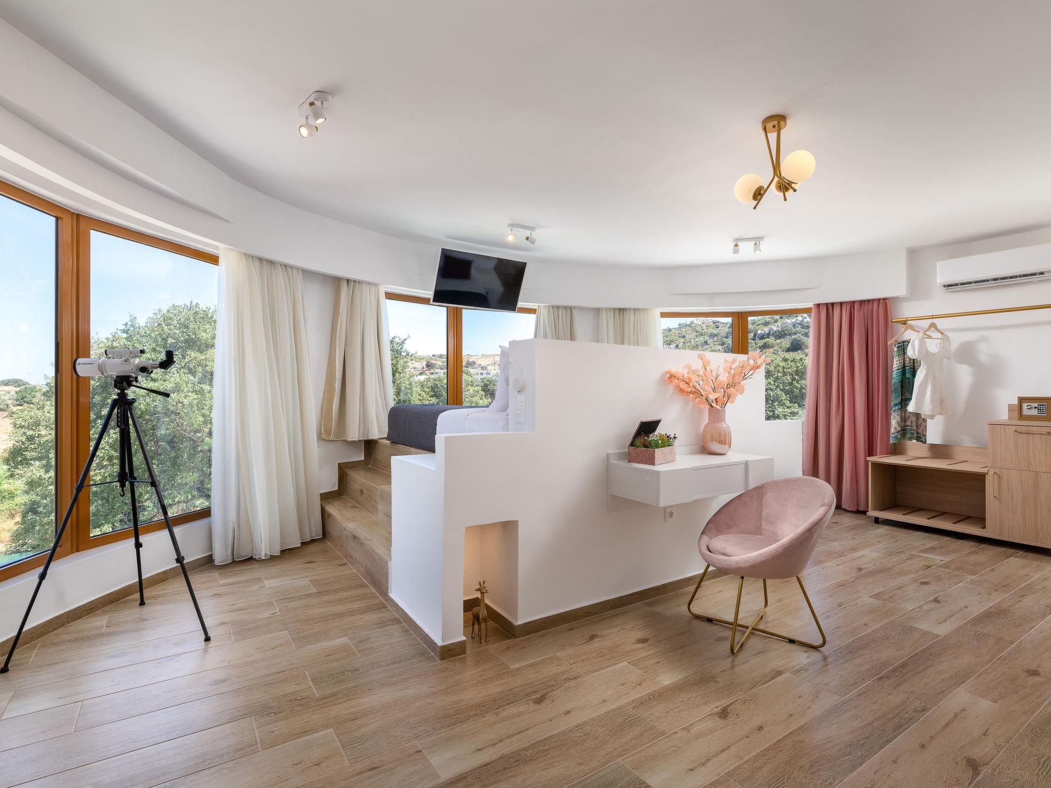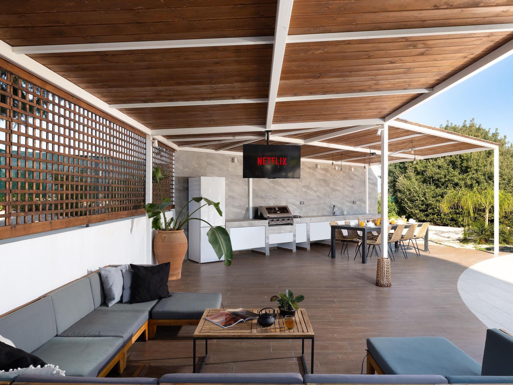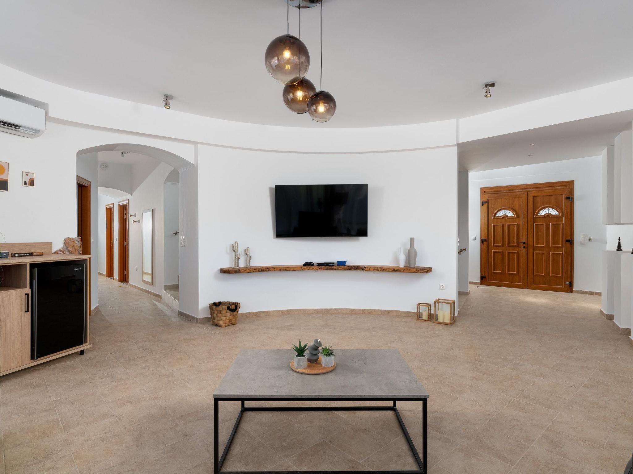 This luxury villa features large interior spaces with an elegant design that creates a welcoming atmosphere, as well as exceptional outdoor spaces with great gardening and amenities. On the ground floor, there’s an airconditioned bedroom with a double bed and an ensuite bathroom with a shower. Also, it has a smart Tv and a mini-fridge. On the first floor, there are four airconditioned bedrooms—half of them with double beds, and half of them with twin beds. Three of the first-floor bedrooms have ensuite bathrooms with a shower. Also, there’s a sharing bathroom with a shower and a wc. On the second floor, there’s the spacious master bedroom, it offers a built-in bed and an incredible design. Also, there’s a smart Tv and a mini-fridge. This bedroom has a private entrance to a dreamy furnished terrace. Hamilton Villa has two spacious living rooms; each is set on a different floor. On the ground floor, there’s an open plan fully equipped kitchen, suitable for any meal preparation, accompanied by the living area and a wc. Also, there’s a gym area and a library. On the first floor, there’s the second living room that offers tea and coffee facilities and a game console for extra fun. The incredible interior aesthetic will immediately give you peace. Also, there’s free Wi-Fi access throughout the property. Outdoors, the villa is equally impressive as indoors. It offers large gardens surrounding the magnificent pool area and the heated jacuzzi that are equipped with parasols and floating sun beds, creating the perfect setting for a relaxed time under the golden rays of the Greek sun. The villa offers an outdoor fully equipped kitchen with an incredible BBQ installation and furnished areas in the garden, where guests can enjoy a truly unique outdoor gathering. Also, there’s a table tennis for endless fun.